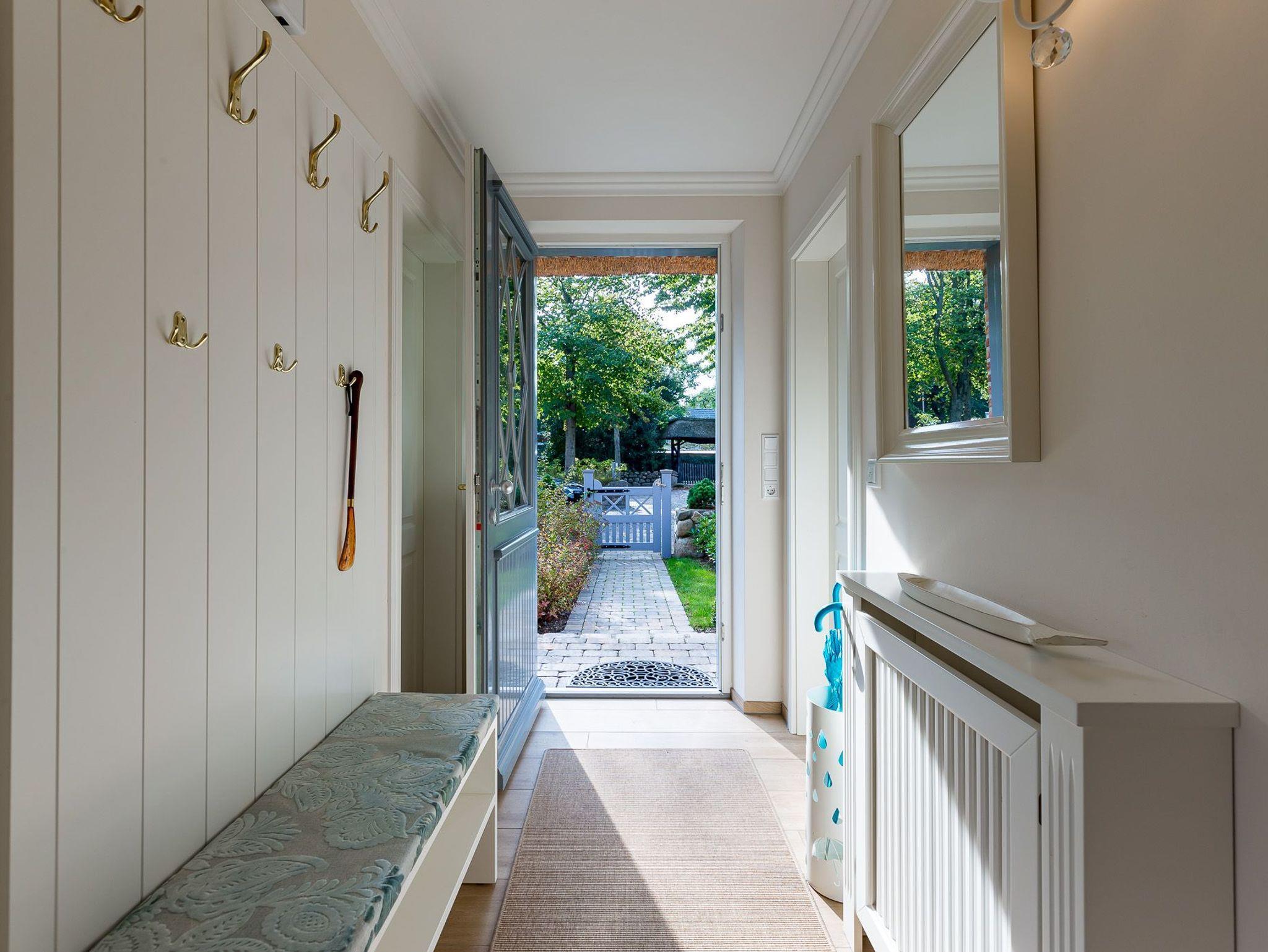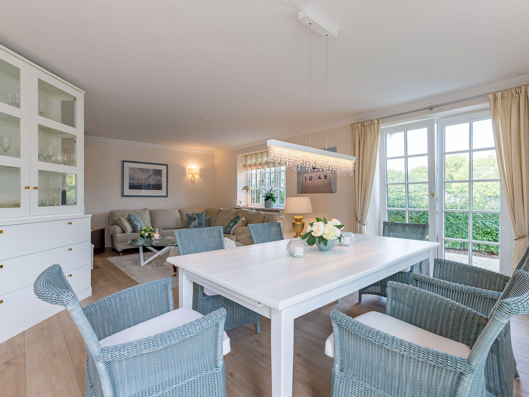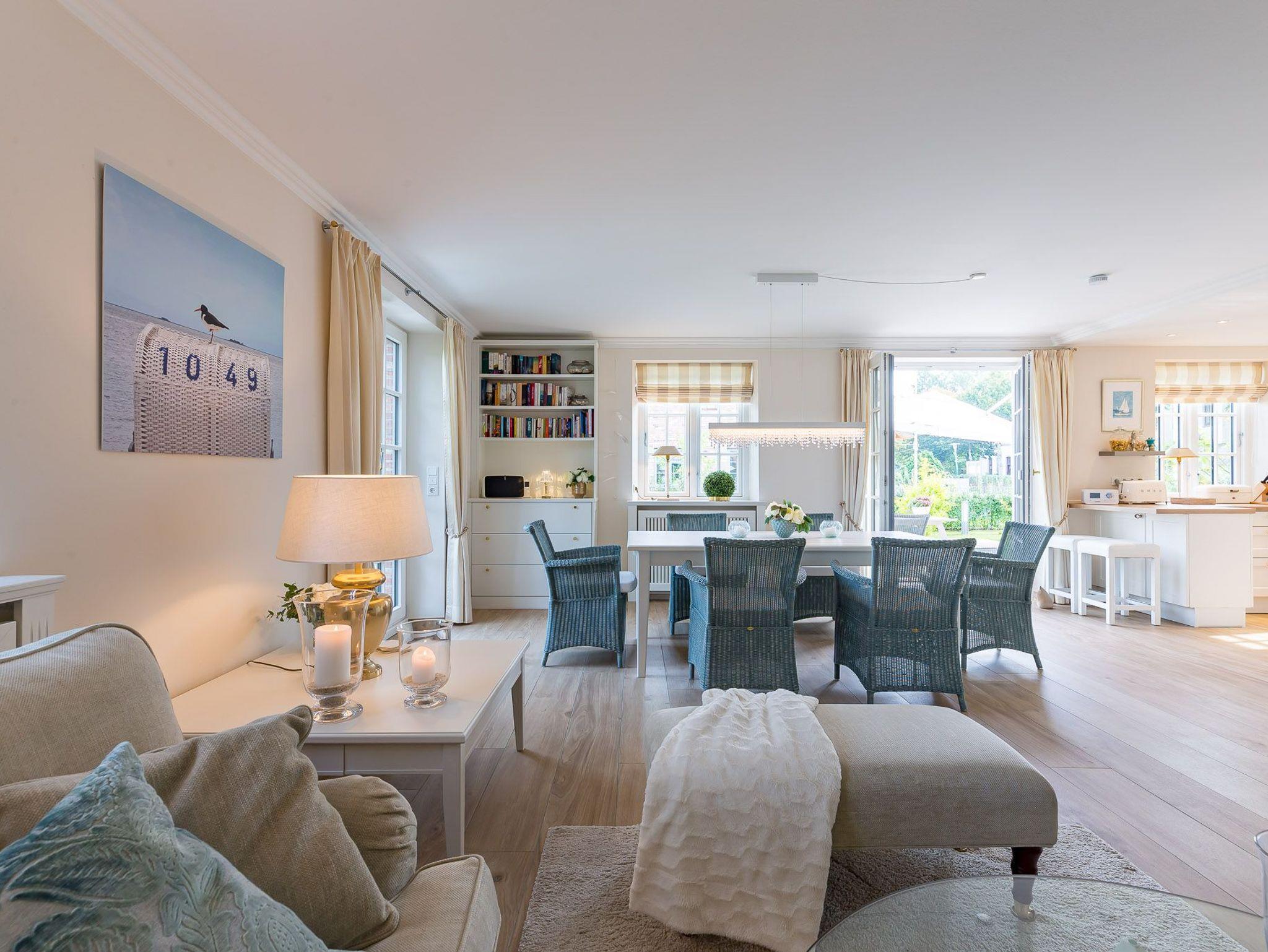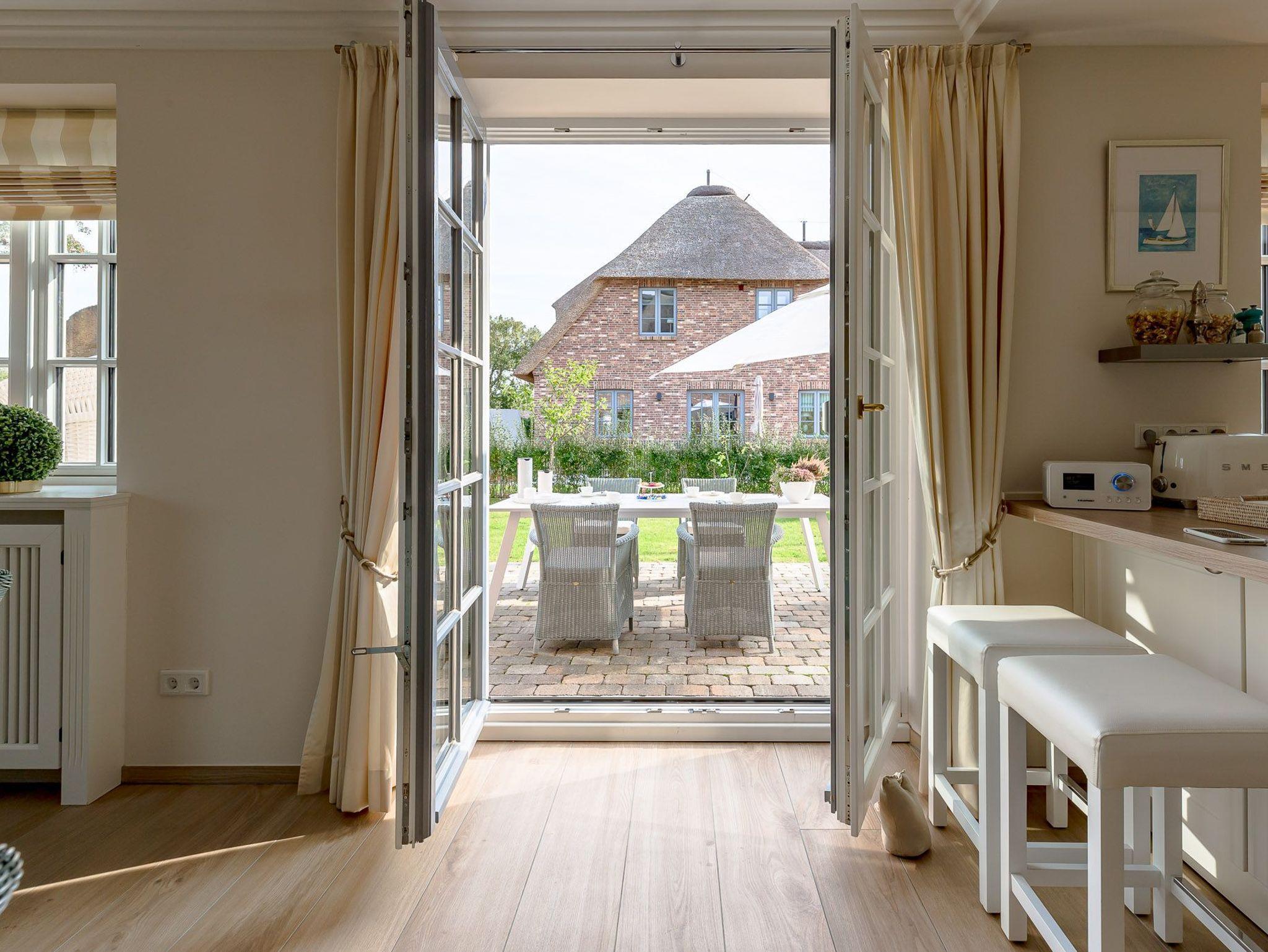 Dieses Friesenhaus lädt mit seiner schönen Architektur, Sprossenfenstern, Reetdach und seiner umlaufenden Terrasse, die ganztägig Sonnenplätze bietet, zum Entspannen und Erholen ein. Schöne Fliesen, hochwertige Holzeinbauten, eine helle, gemütliche Einrichtung, TV und Sonos Soundanlage in allen Wohn- und Schlafräumen, sowie ein großes Bad mit Tageslichtsauna runden den Eindruck ab. Das Doppelhaus liegt zentral im Ortskern von Nieblum, dem wohl schönsten Dorf auf Föhr, mit seinen Kapitänshäusern, Linden- und Ulmenalleen, Geschäften, Cafes und Restaurants. In wenigen Minuten sind Sie mit dem Fahrrad am Nieblumer Strand.