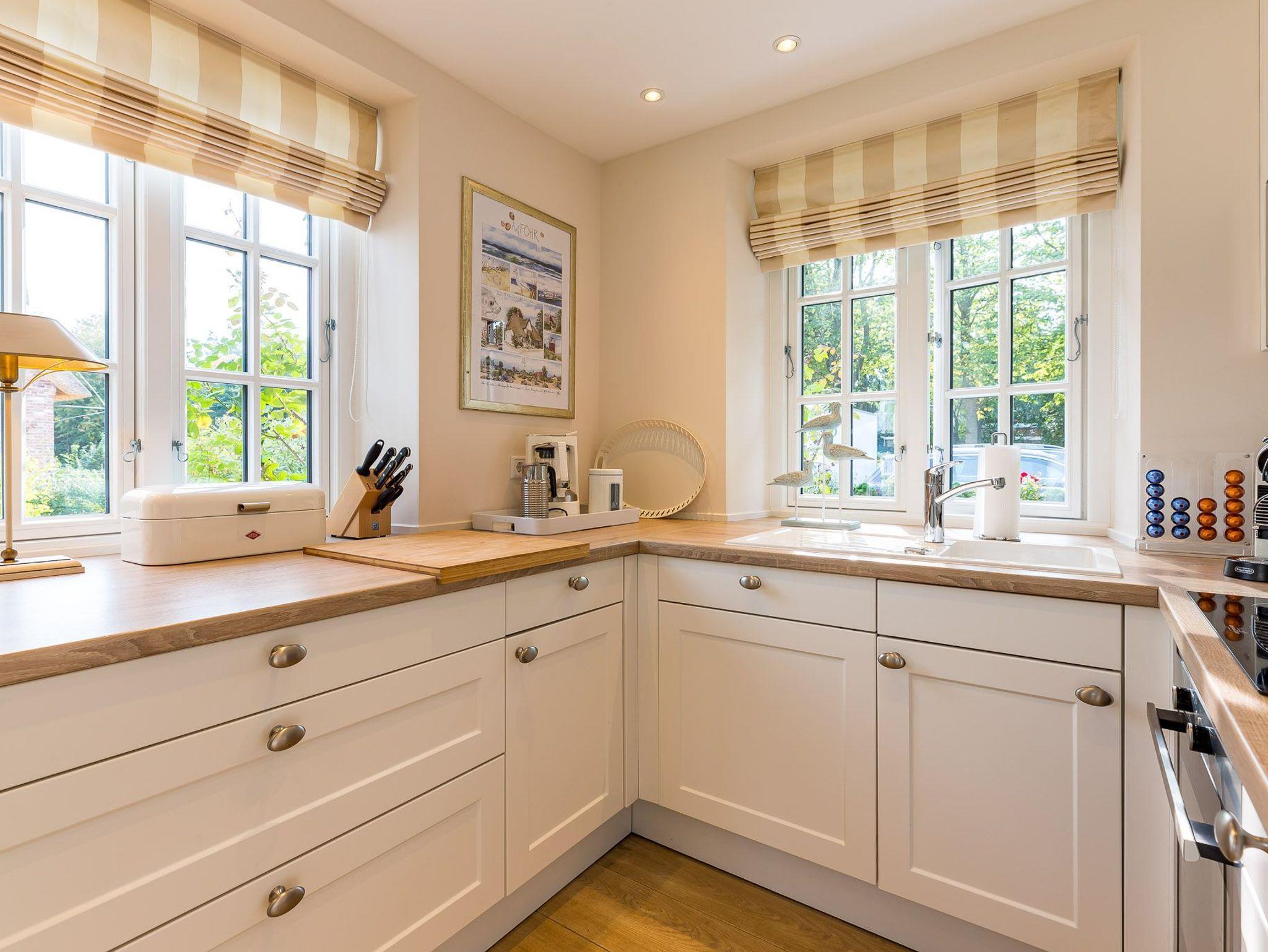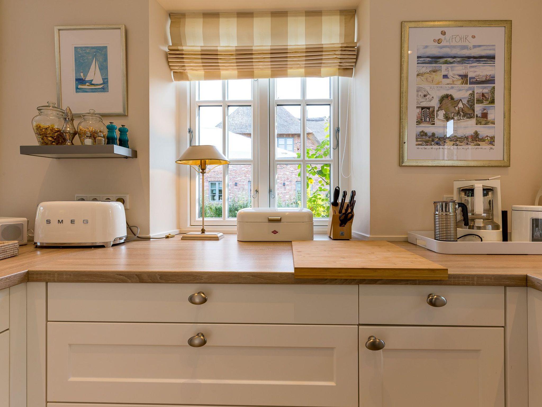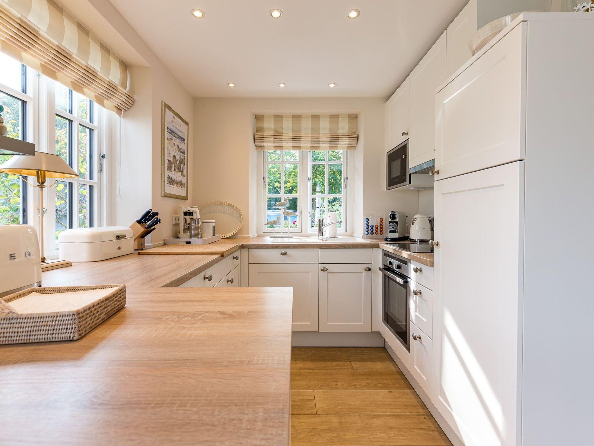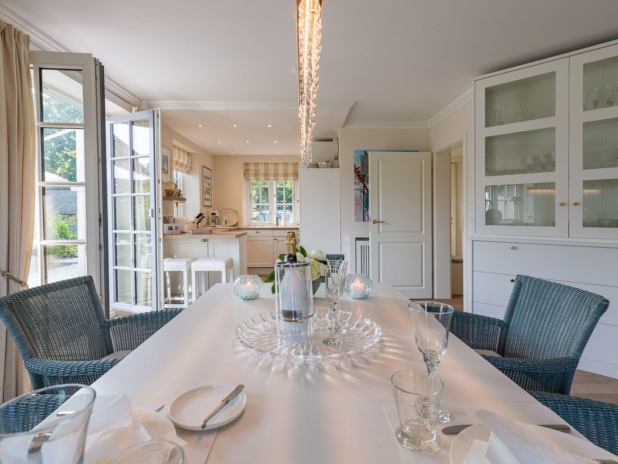 Dieses Friesenhaus lädt mit seiner schönen Architektur, Sprossenfenstern, Reetdach und seiner umlaufenden Terrasse, die ganztägig Sonnenplätze bietet, zum Entspannen und Erholen ein. Schöne Fliesen, hochwertige Holzeinbauten, eine helle, gemütliche Einrichtung, TV und Sonos Soundanlage in allen Wohn- und Schlafräumen, sowie ein großes Bad mit Tageslichtsauna runden den Eindruck ab. Das Doppelhaus liegt zentral im Ortskern von Nieblum, dem wohl schönsten Dorf auf Föhr, mit seinen Kapitänshäusern, Linden- und Ulmenalleen, Geschäften, Cafes und Restaurants. In wenigen Minuten sind Sie mit dem Fahrrad am Nieblumer Strand.