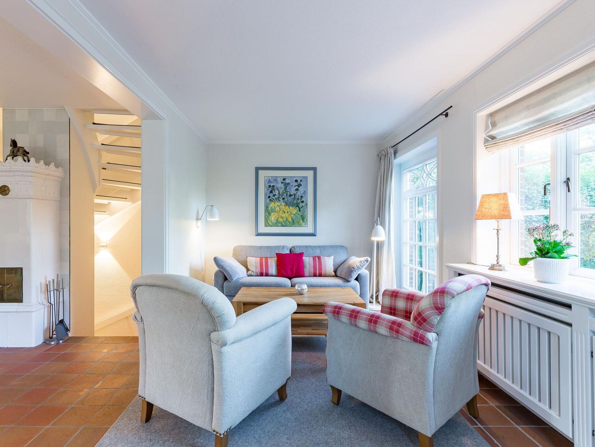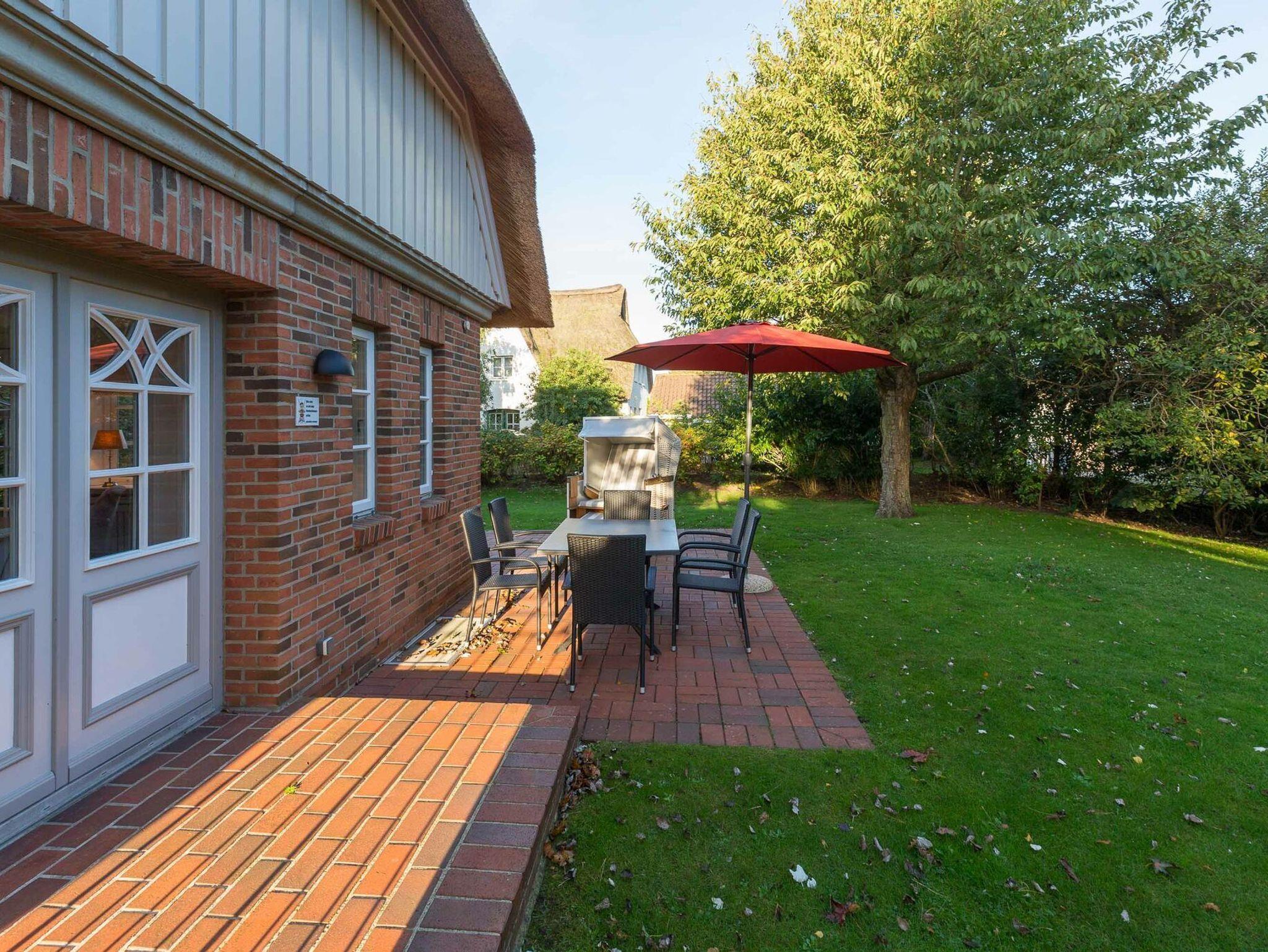 Haus Josias A in Nieblum bietet ruhige Lage, Sauna, Kachelofen und einen großen Garten für erholsame Tage.