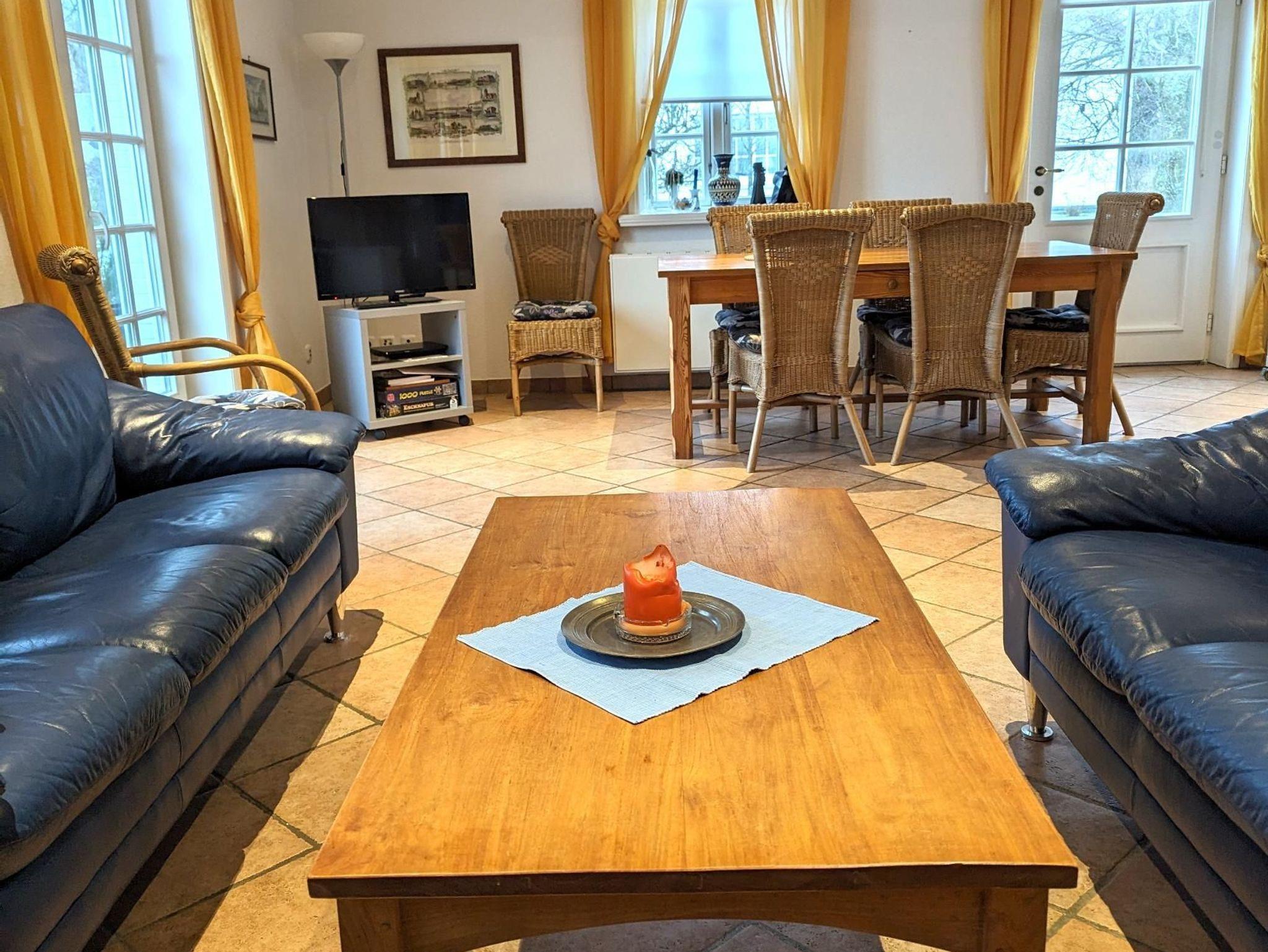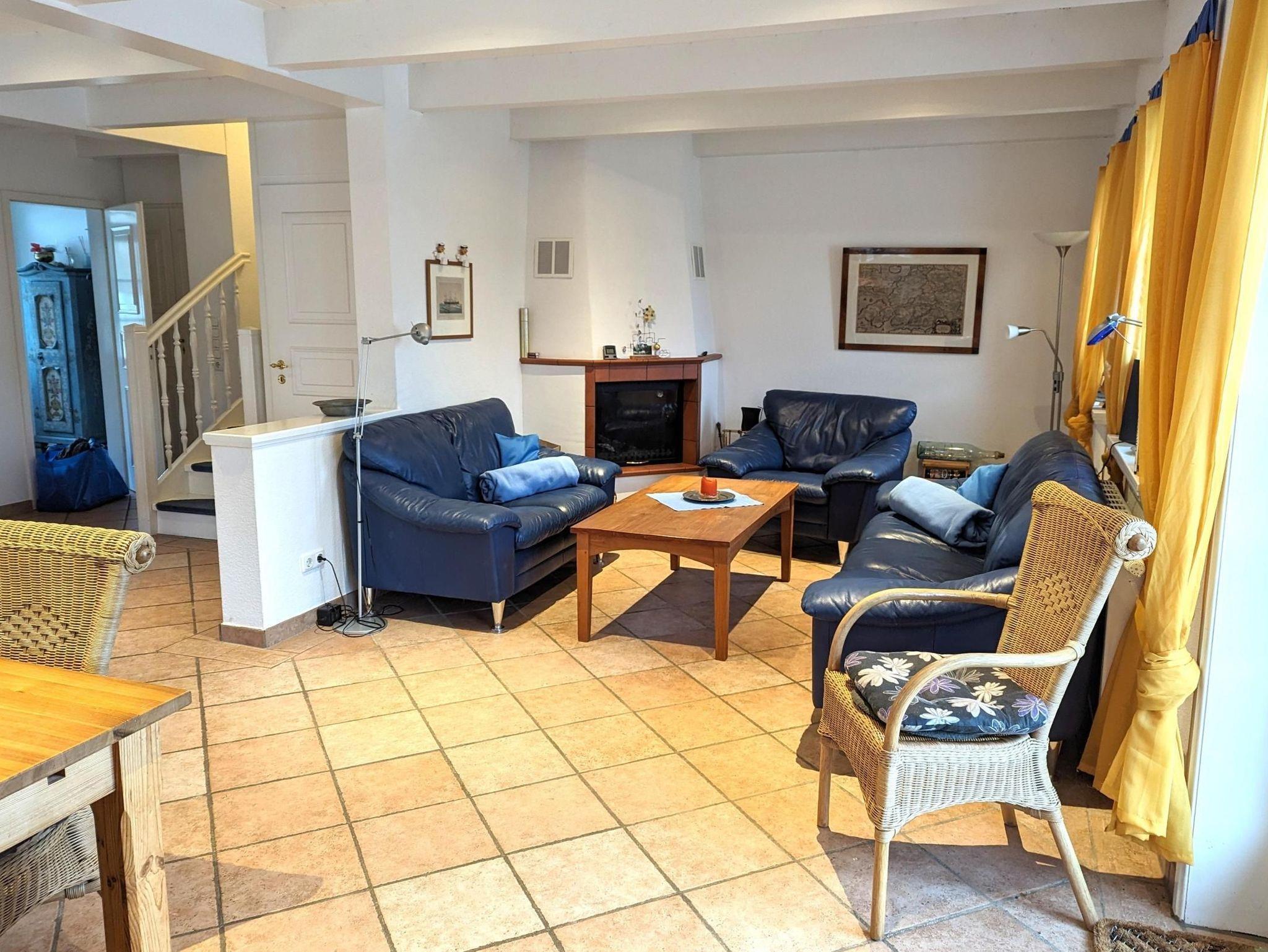 Das gemütliche Haus besteht aus einem Wohnzimmer mit Kamin und direktem Zugang zum Garten mit Strandkorb,die Küche ist sehr gut ausgestattete mit Mikrowelle, Geschirrspüler und allem was man benötigt, im Erdgeschoss gehen sie auf warme Terracottafliesen