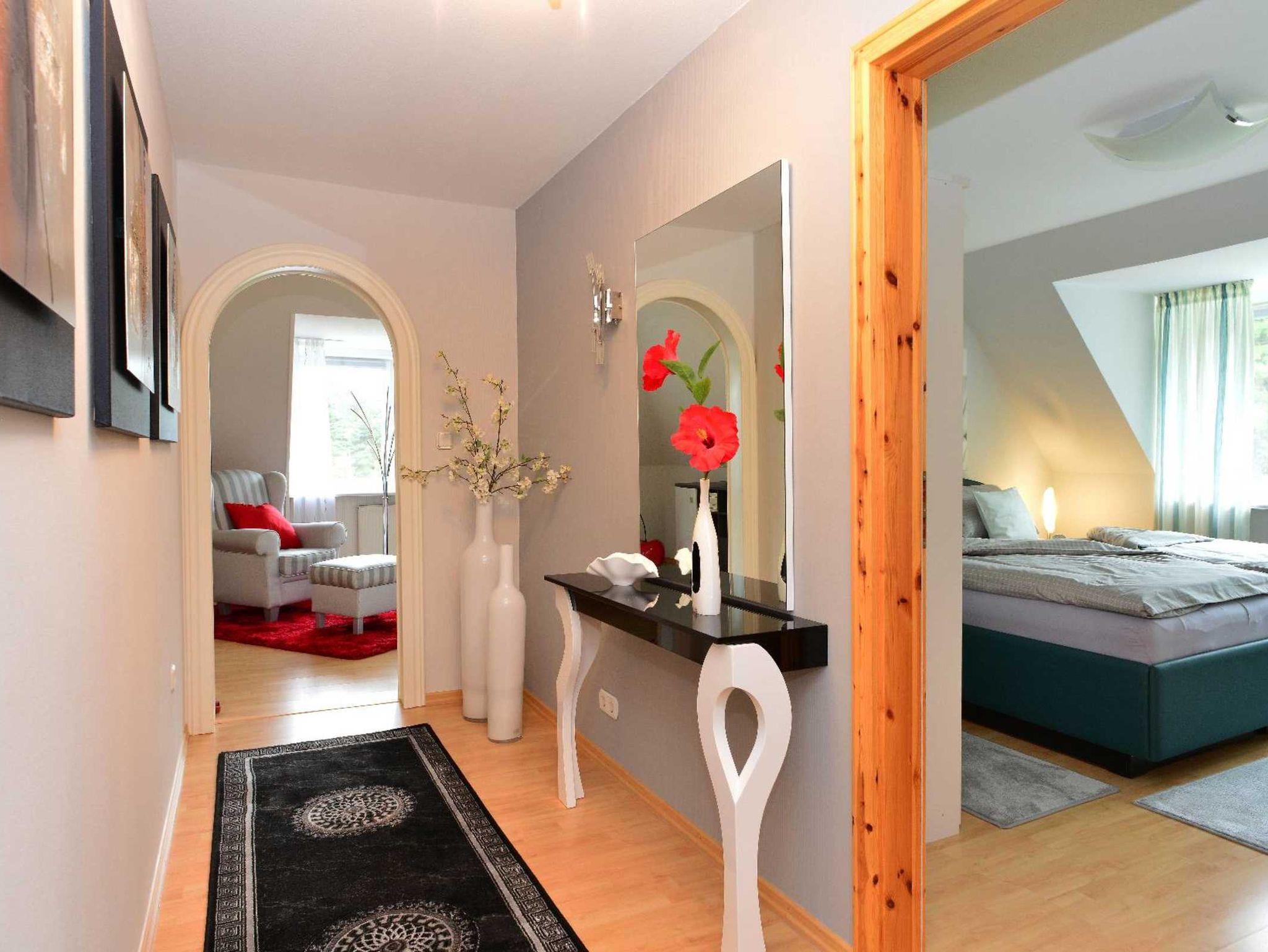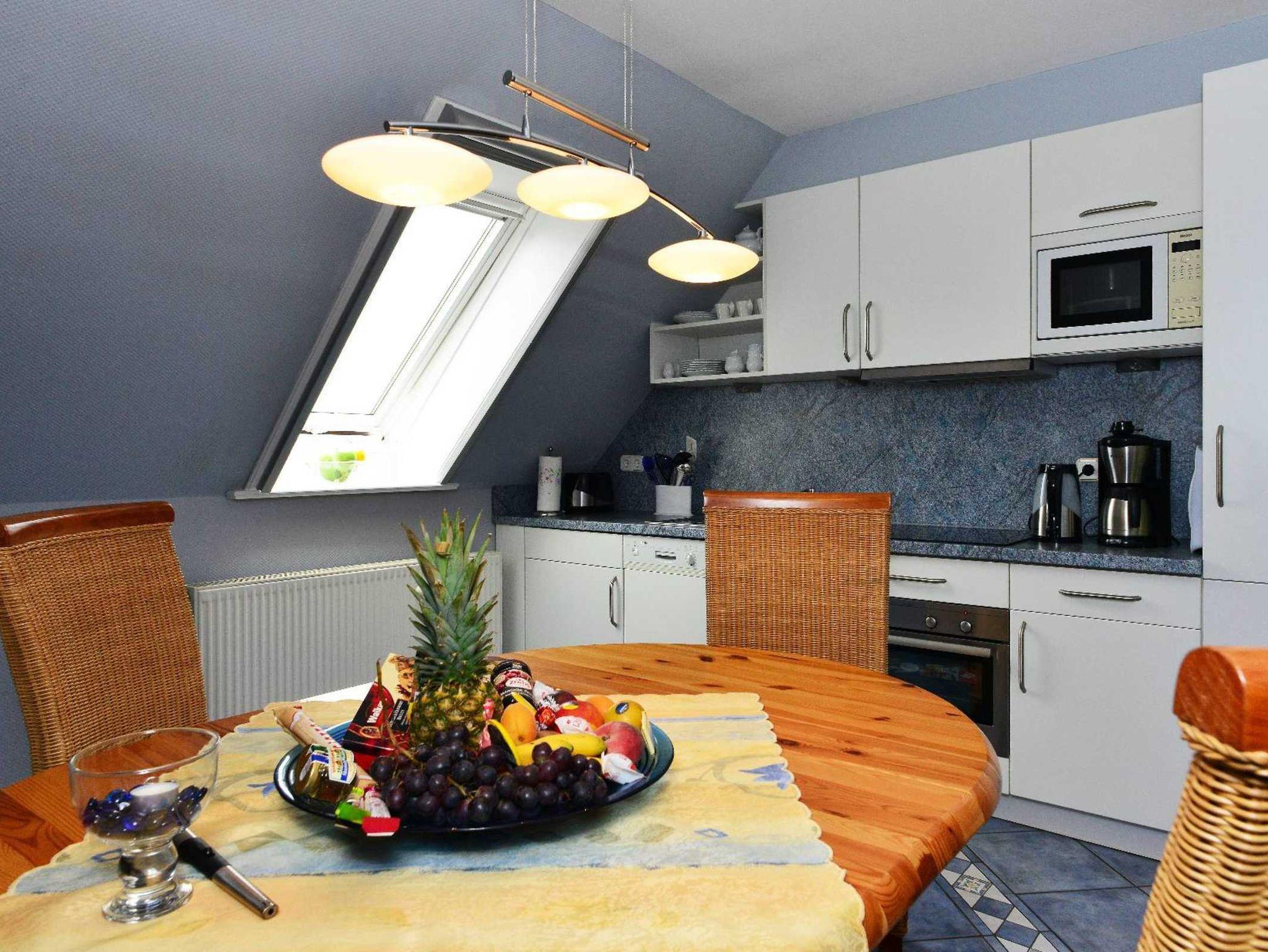 Das großzügig eingerichtete Wohnzimmer lädt zum Verweilen ein. Ein komplett ausgestattete Küche mit Backofen, Mikrowelle und Geschirrspüler ist vorhanden. Im Schlafzimmer befindet sich ein seniorengerechtes Doppelbett. WC und Dusche sind vorhanden.Eine seperate Terrasse mit Gartenmöbel und Strandkorb steht den Gästen zur Verfügung. Parkplätze am Haus sind vorhanden.