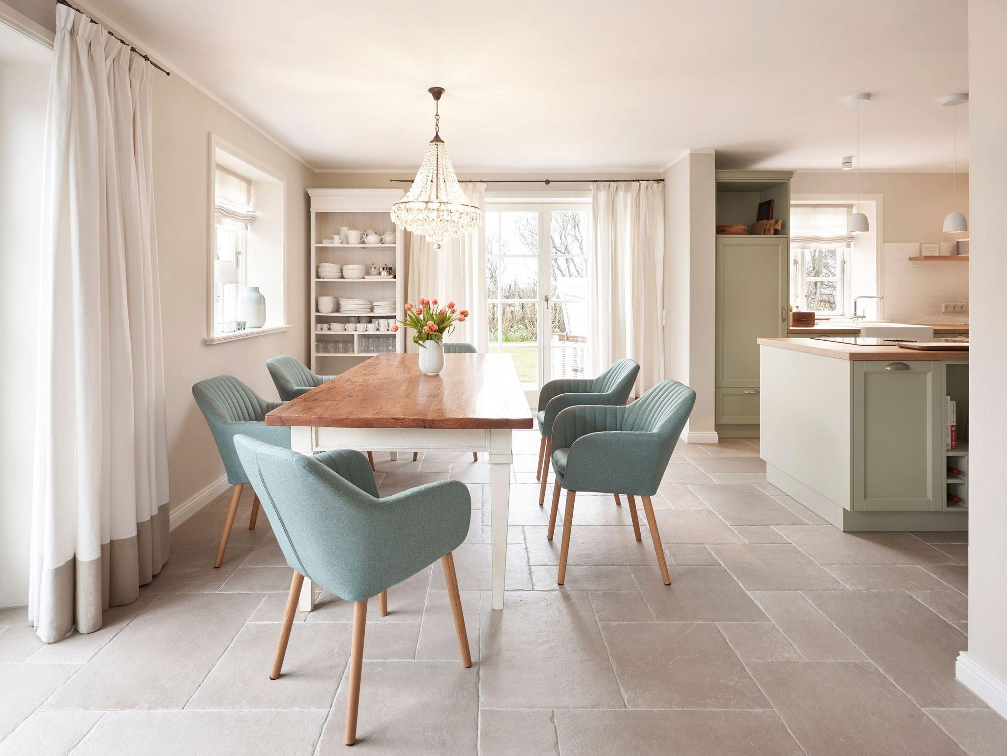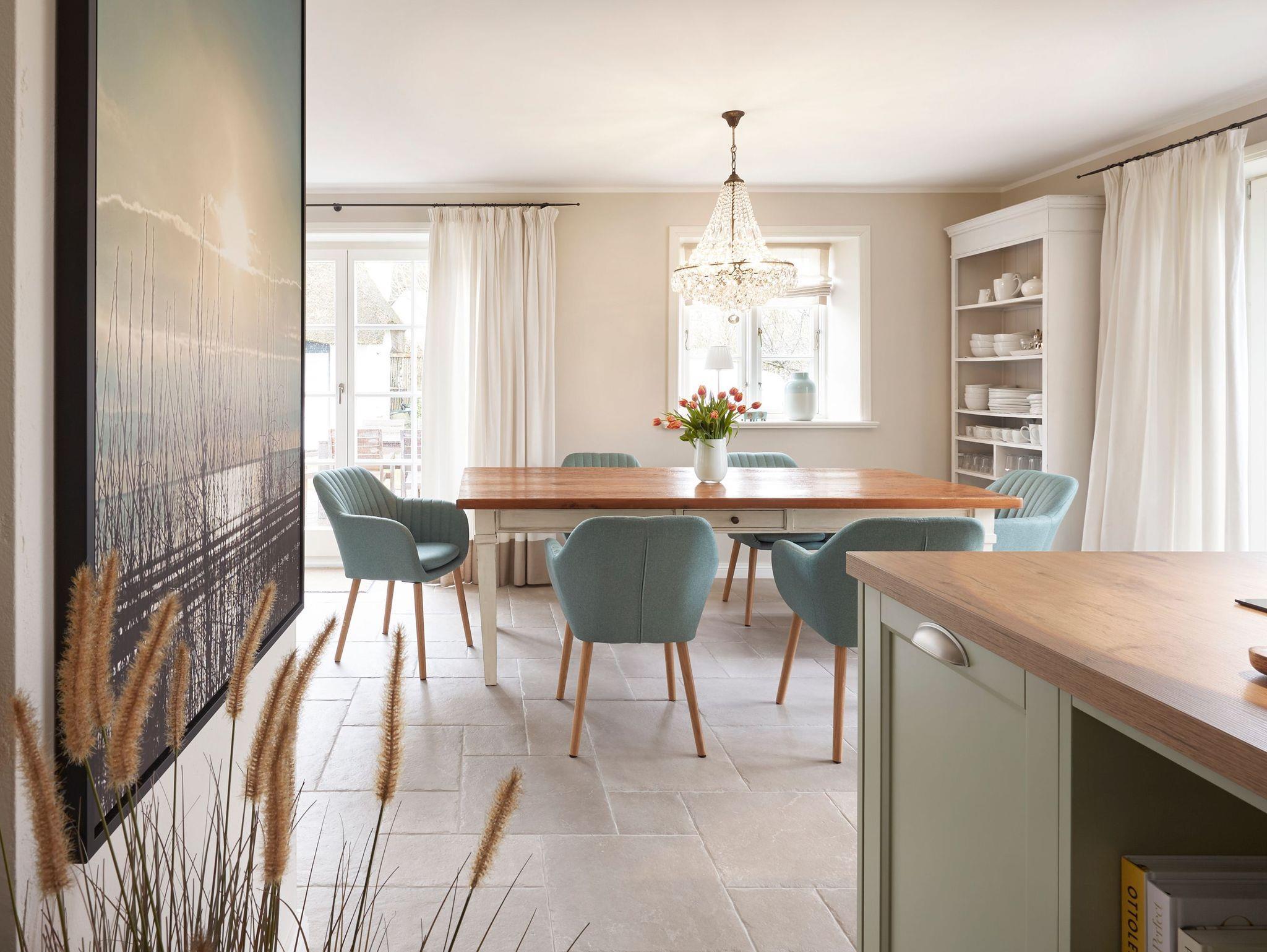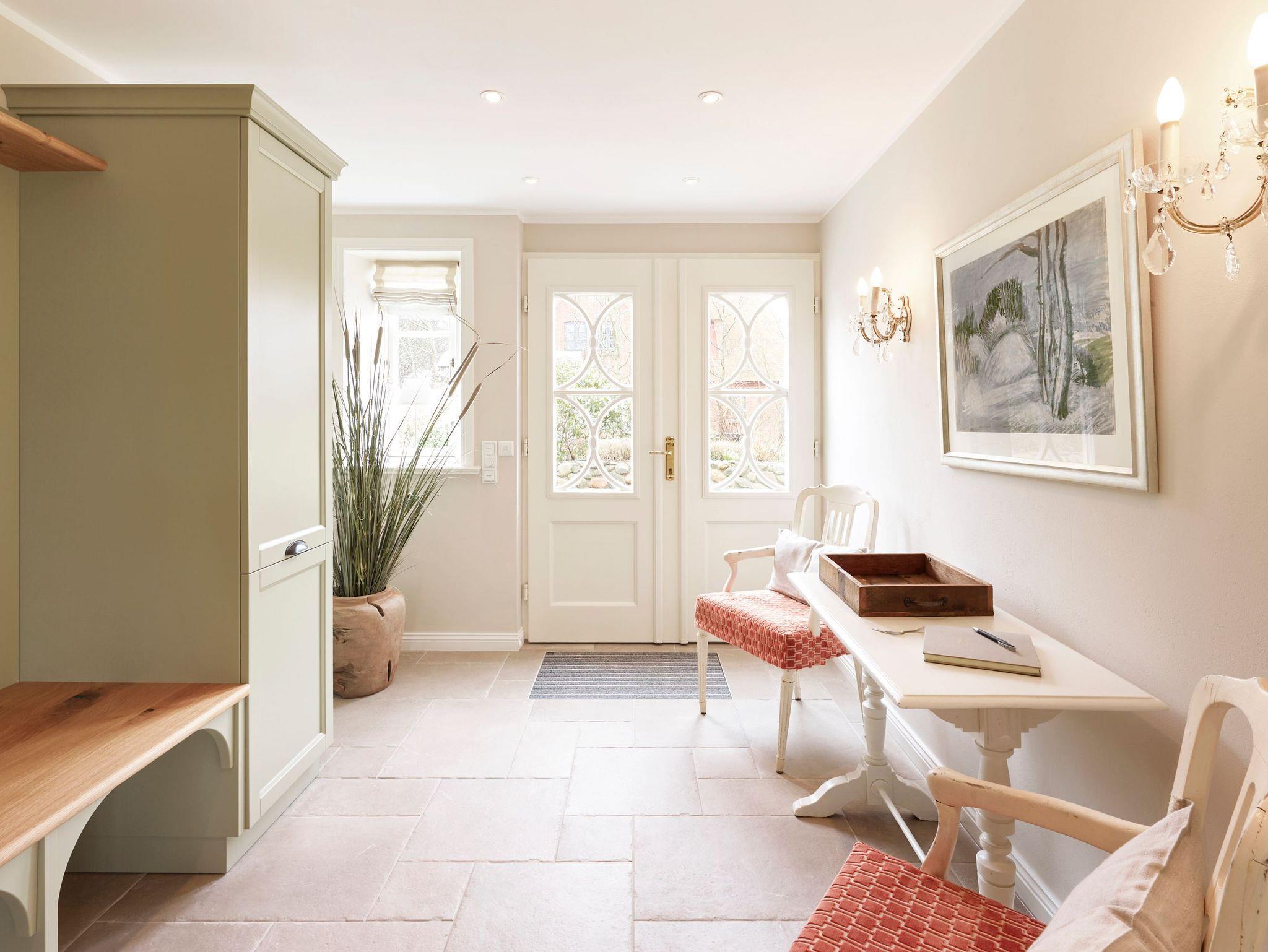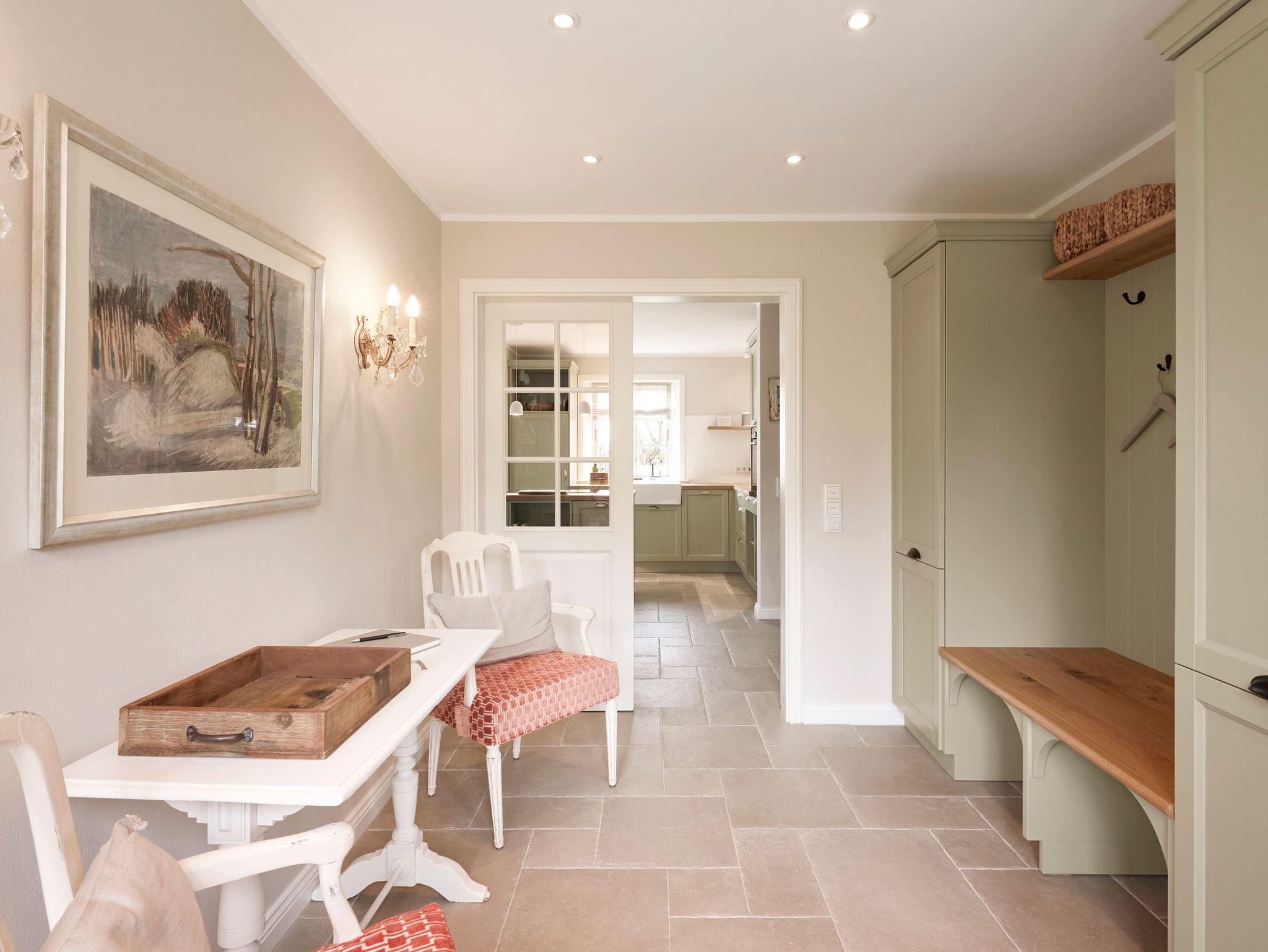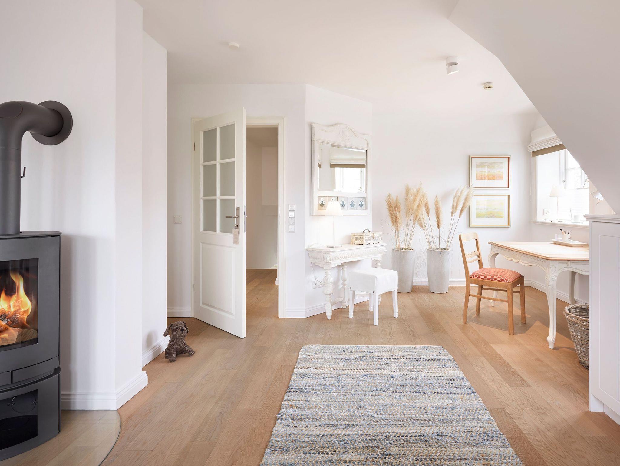 Auch im Haus ist an alles gedacht, was den Aufenthalt angenehm und zu einem besonderen Erlebnis macht. Die stilvolle Einrichtung des lichtdurchfluteten Landhauses in harmonischer Farbgestaltung verbindet Tradition, Moderne und Gemütlichkeit und verbreitet gleichzeitig Ruhe und Exklusivität. Ein Highlight ist sicherlich die technisch perfekt ausgestattete , offene Küche mit grossem Küchenblock, der zu entspannter Geselligkeit einlädt. Das Wohn-und Esszimmer mit einem edlen, englischen Limestone Boden mit Fussbodenheizung gibt dem Landhaus seinen besonderen Charakter. Für gemütliche Stunden in der kalten Jahreszeit wärmt Sie ein historischer Kachelofen im Wohnzimmer. Eins von drei Schlafzimmern befindet sich im Erdgeschoss , zwei weitere im Obergeschoss. Das Haus verfügt insgesamt über drei hochwertige Bäder mit modernen Duschen sowie eine kleine, aber feine Sauna. Der große Spitzboden kann als Relax- oder Kinderspielzone genutzt werden oder bietet zwei kleinen Personen eine bequeme, zusätzliche Schlaflösung. Das Haus hat in allen Bereichen eine sehr wertige Ausstattung und bietet beste Voraussetzungen für einen entspannten Urlaub.