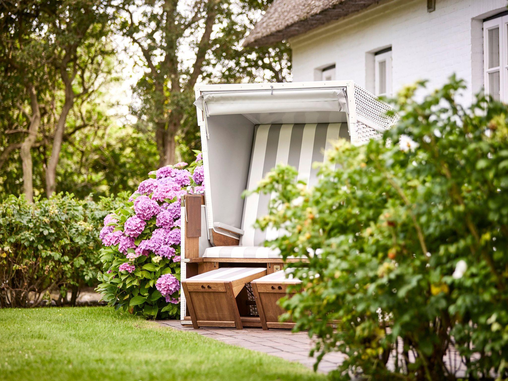 Über eine kleine private Stichstraße erreichen Sie dieses wunderschöne Reetdachhaus im idyllischen Inseldorf Nieblum, das auf einem ca. 1.500 m2 großen, weitläufigen und sonnigen Grundstück steht. Das Haus bietet einen grossen, eingewachsenen Garten mit umlaufender Frühstücks-und Sonnenterrasse. Zum Entspannen stehen dort auch zwei Strandkörbe. Der wundervoll angelegte Garten dieser ehemals historischen Anlage bietet durch Friesenwälle und eine Sonnenkuhle maximale Privatsphäre. Eine stimmungsvolle abendliche Illumination komplettiert dieses außergewöhnliche Ambiente. Ausserdem haben Sie zwei PKW-Parkplätze direkt auf dem Grundstück.