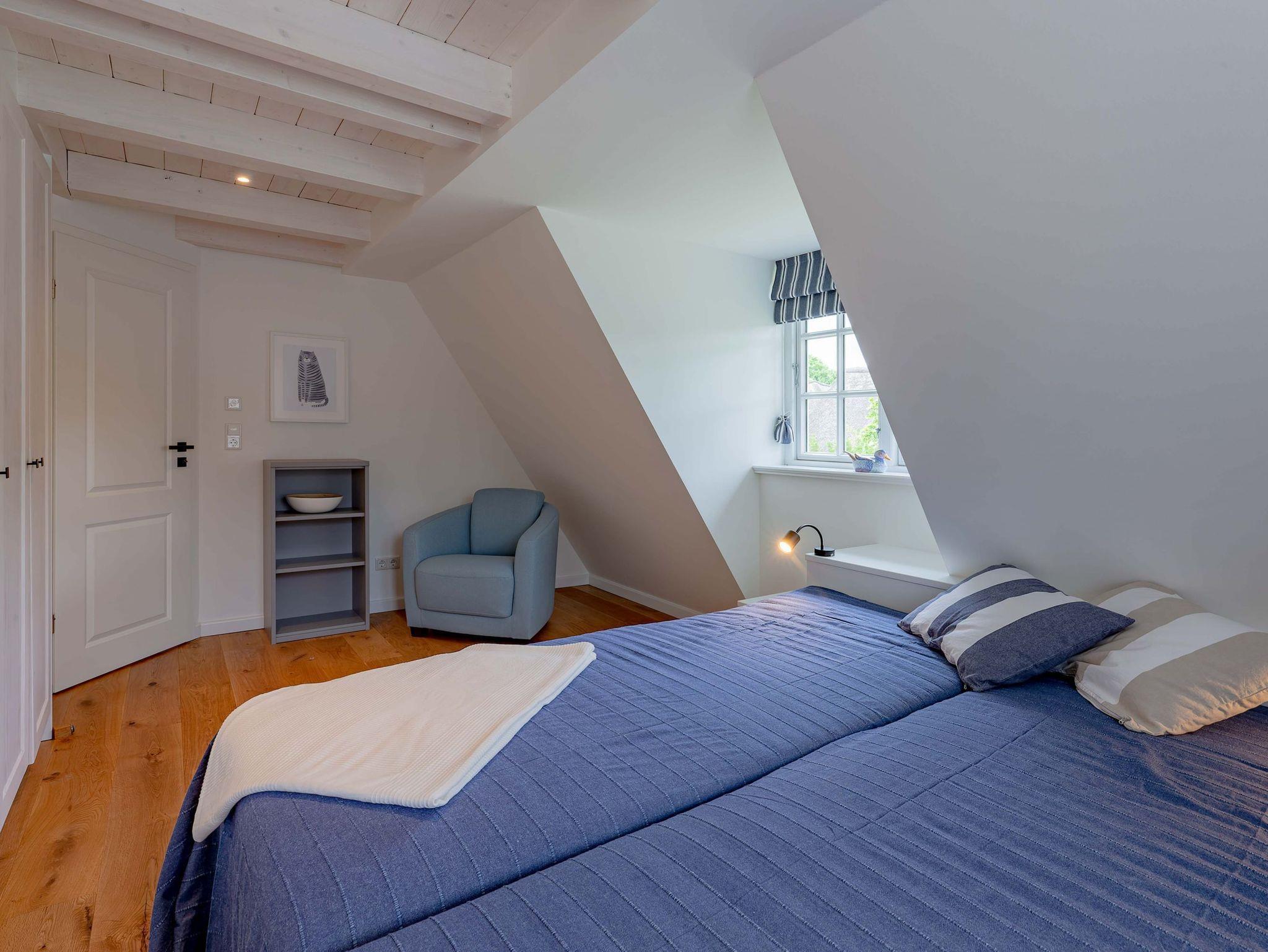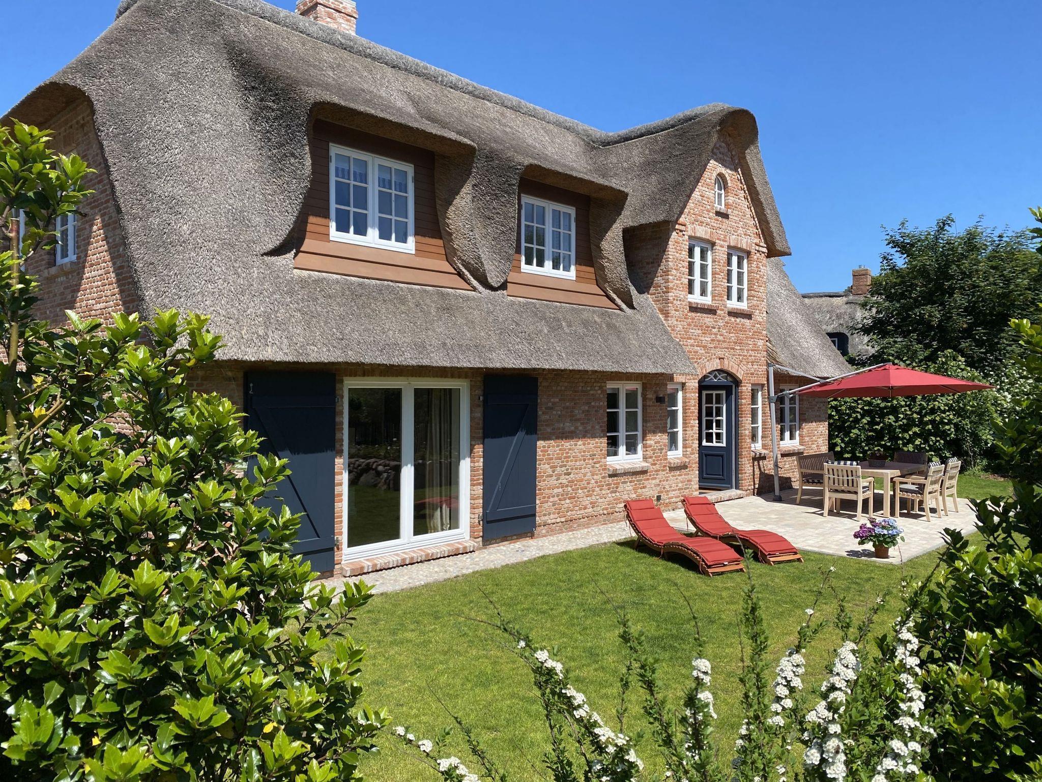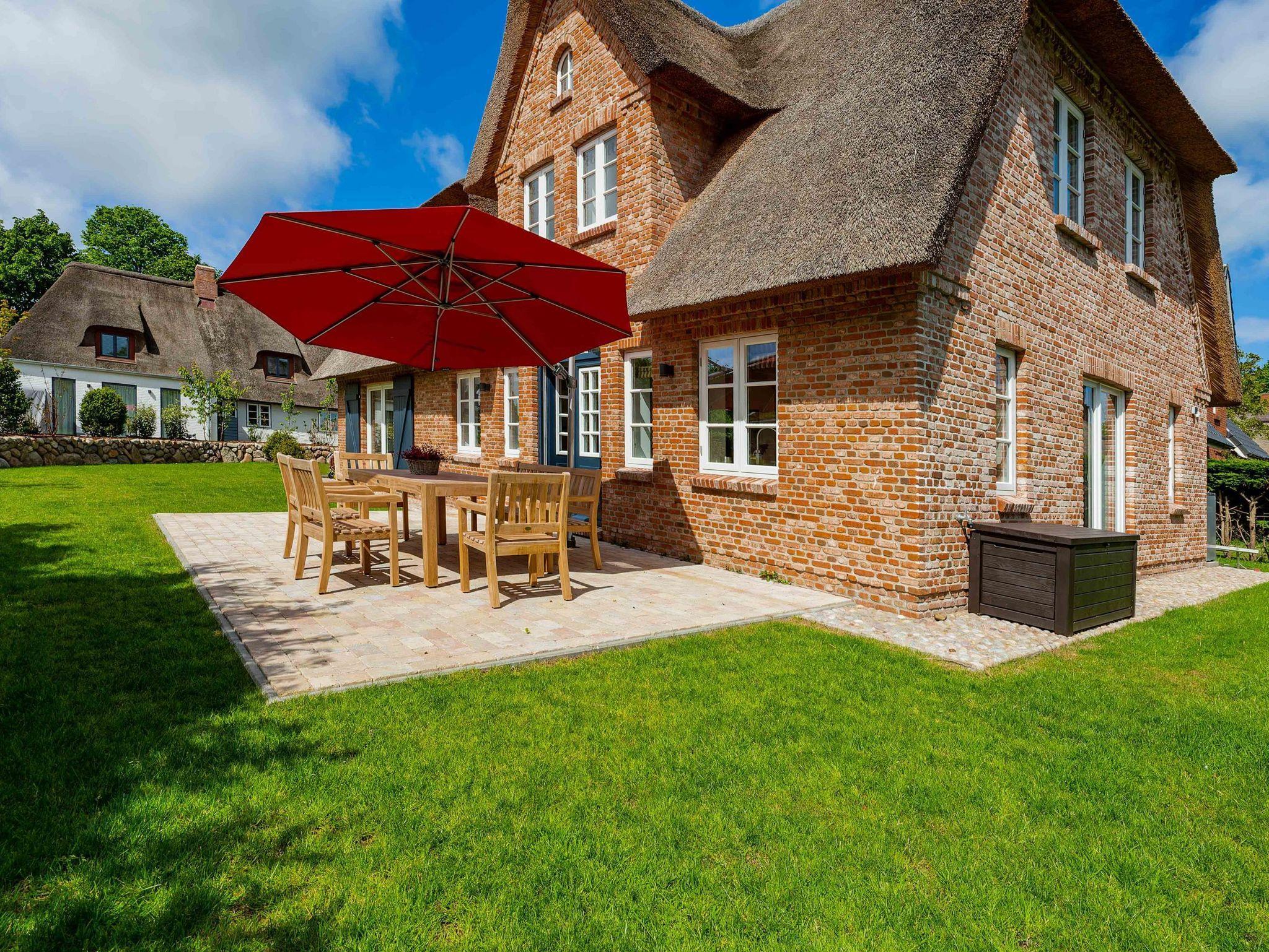 Verbringen Sie Ihren Urlaub im schönen Friesendorf Nieblum auf Föhr. Durch die Lage des neu errichteten Einzelhauses in zweiter Reihe hinter einem traditionellen, denkmalgeschützten Kapitänshaus ist das Objekt sehr ruhig, aber dennoch zentral gelegen. Alles ist mit nur wenigen Schritten zu erreichen. Das Reethaus glänzt mit einer Terrasse und schönem Garten. Im Erdgeschoss erwarten Sie eine große Küche mit Kochinsel, ein gemütlicher Ess- und Wohnbereich mit Gaskamin und ein separates Arbeitszimmer. Im Obergeschoss befinden sich Schlafräume und Bäder, im Dachgeschoss die Sauna mit Ruhezone. Alles ist bereit für Erholung pur.