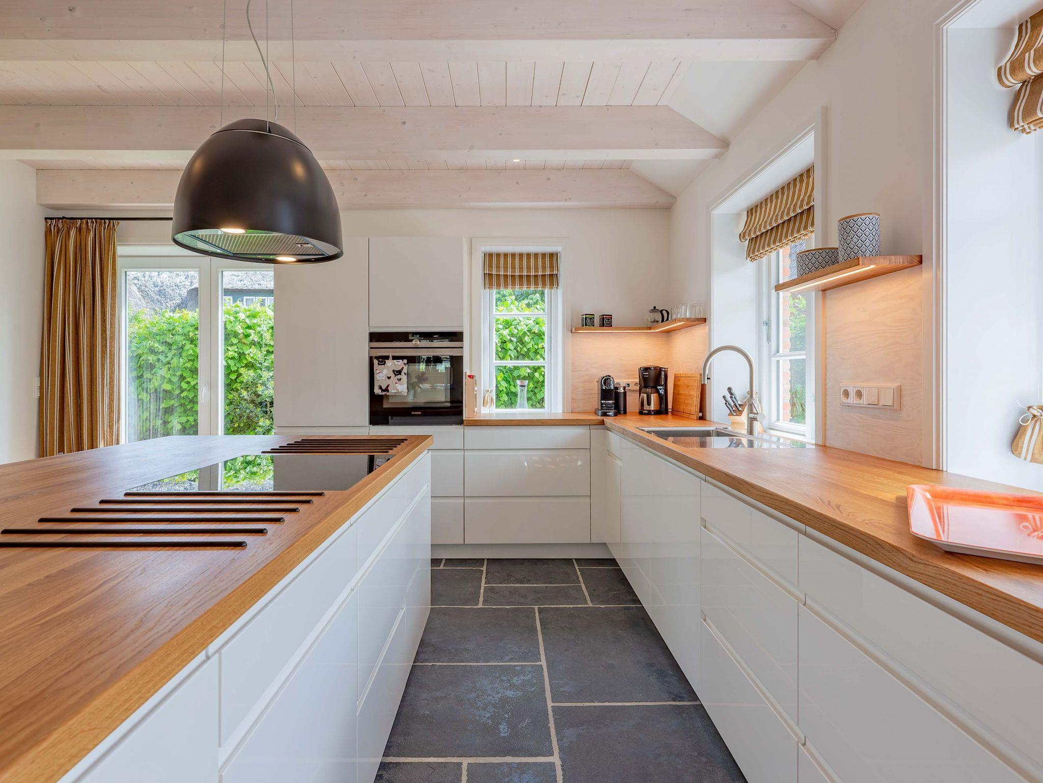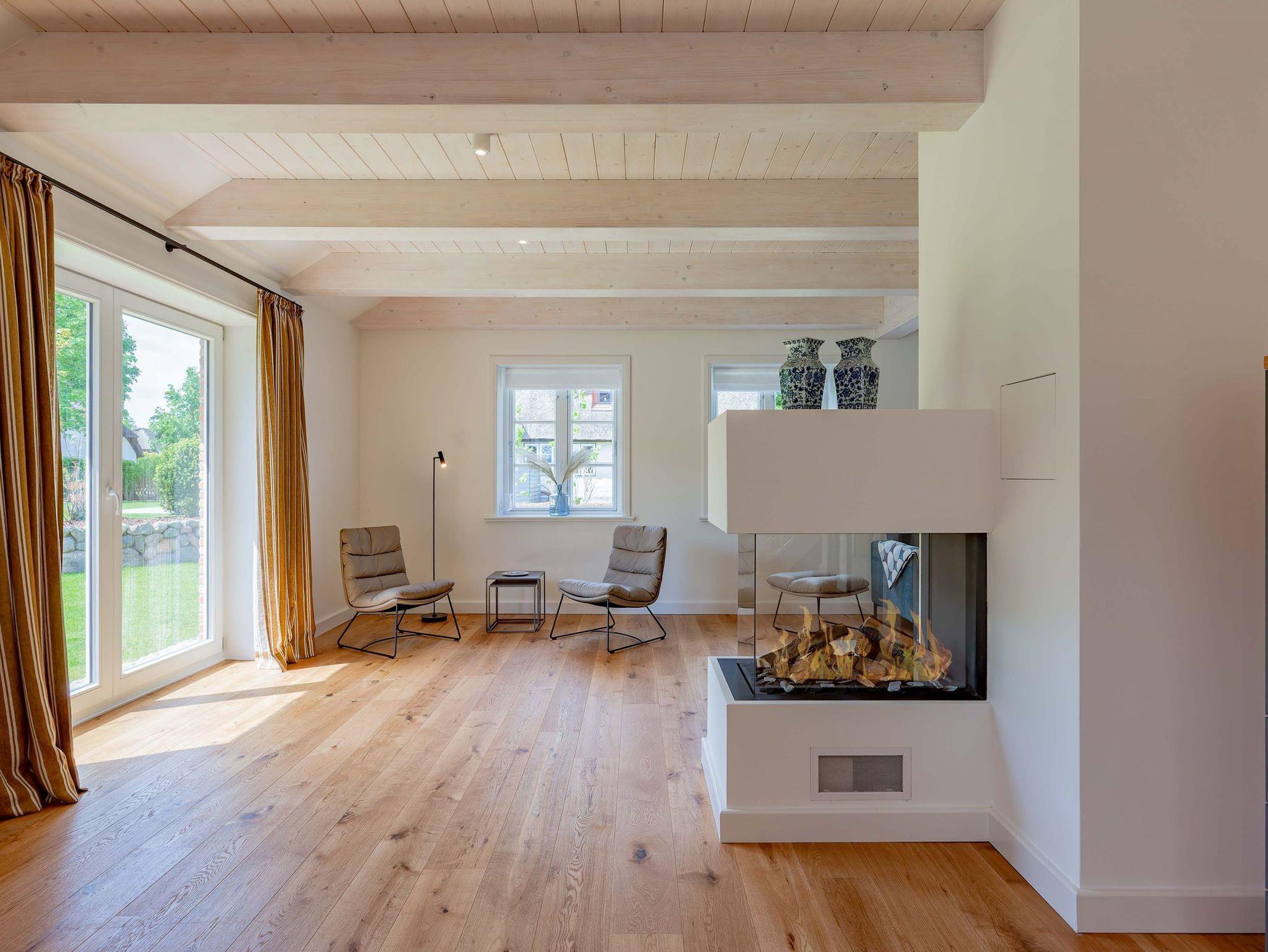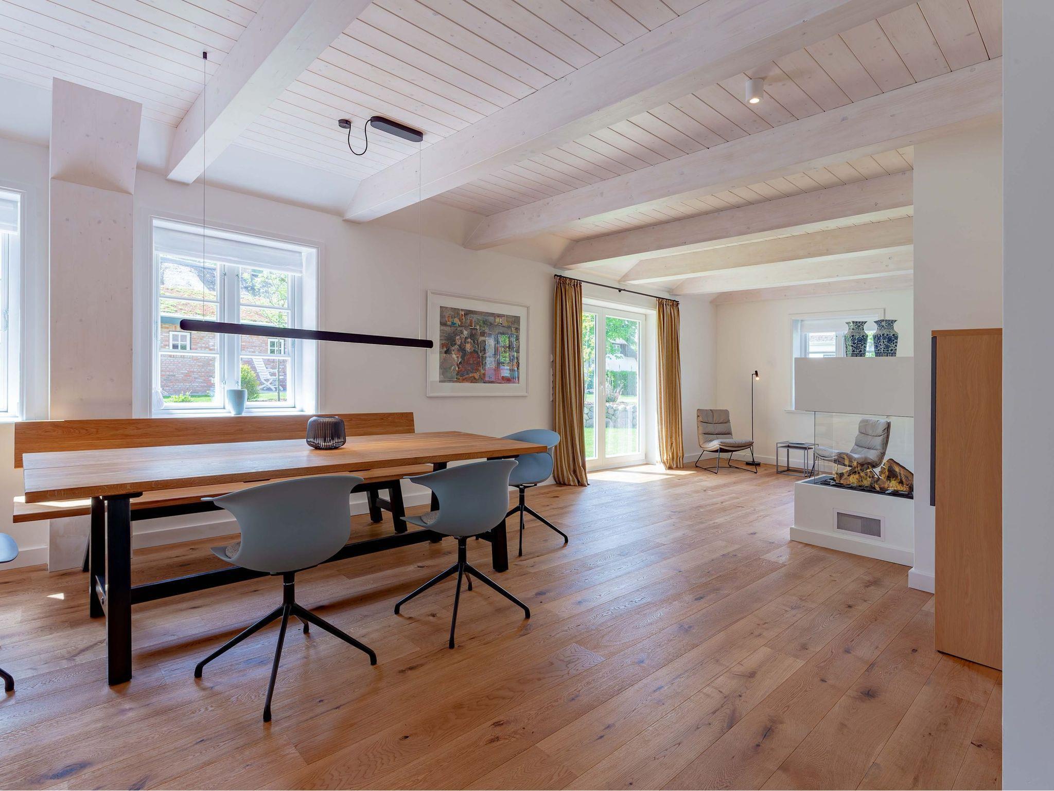 Verbringen Sie Ihren Urlaub im schönen Friesendorf Nieblum auf Föhr. Durch die Lage des neu errichteten Einzelhauses in zweiter Reihe hinter einem traditionellen, denkmalgeschützten Kapitänshaus ist das Objekt sehr ruhig, aber dennoch zentral gelegen. Alles ist mit nur wenigen Schritten zu erreichen. Das Reethaus glänzt mit einer Terrasse und schönem Garten. Im Erdgeschoss erwarten Sie eine große Küche mit Kochinsel, ein gemütlicher Ess- und Wohnbereich mit Gaskamin und ein separates Arbeitszimmer. Im Obergeschoss befinden sich Schlafräume und Bäder, im Dachgeschoss die Sauna mit Ruhezone. Alles ist bereit für Erholung pur.