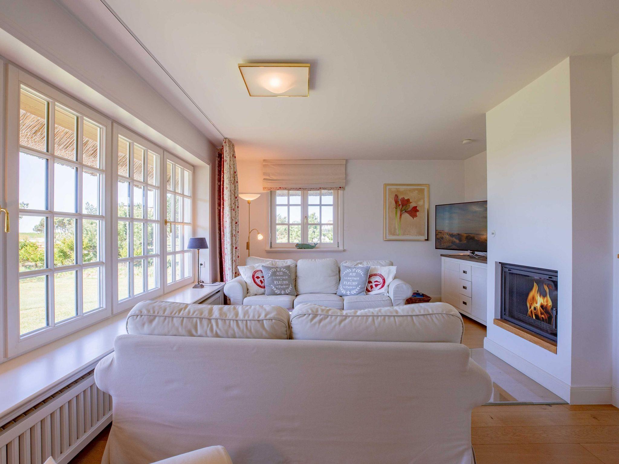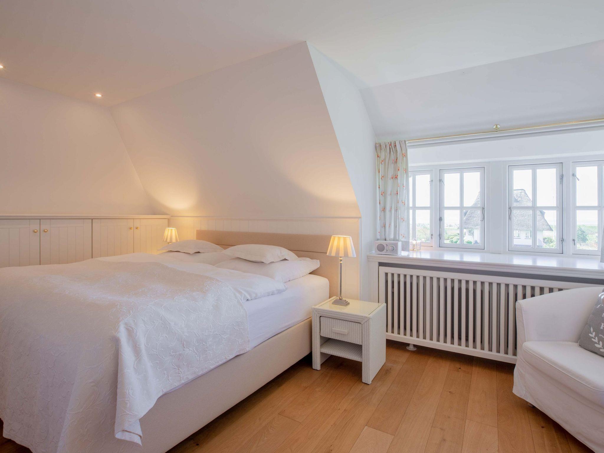 Herzlich Willkommen in unserem Haus am Wasser. Das Einzelhaus steht in absoluter Spitzenlage zwischen Nieblum und Wyk, in unmittelbarer Nähe zum Meer und nur wenige Schritte vom schönsten Golfplatz Schleswig Holsteins entfernt. Der exklusive Ortsteil Greveling besteht aus wenigen Einzelhäusern unter Reet, die fast alle auf eigenen kleinen Warften in exponierter Lage direkt an der Nordsee liegen. Hier wohnen Sie einzigartig auf Föhr. Genießen Sie den hohen Komfort und die Großzügigkeit der lichtdurchfluteten Räume in Ihrem Reethaus. Die geschmackvolle Einrichtung begeistert und der herrliche, zur Nordsee liegende Garten mit großer Terrasse und freiem Meerblick verleitet zum Träumen.