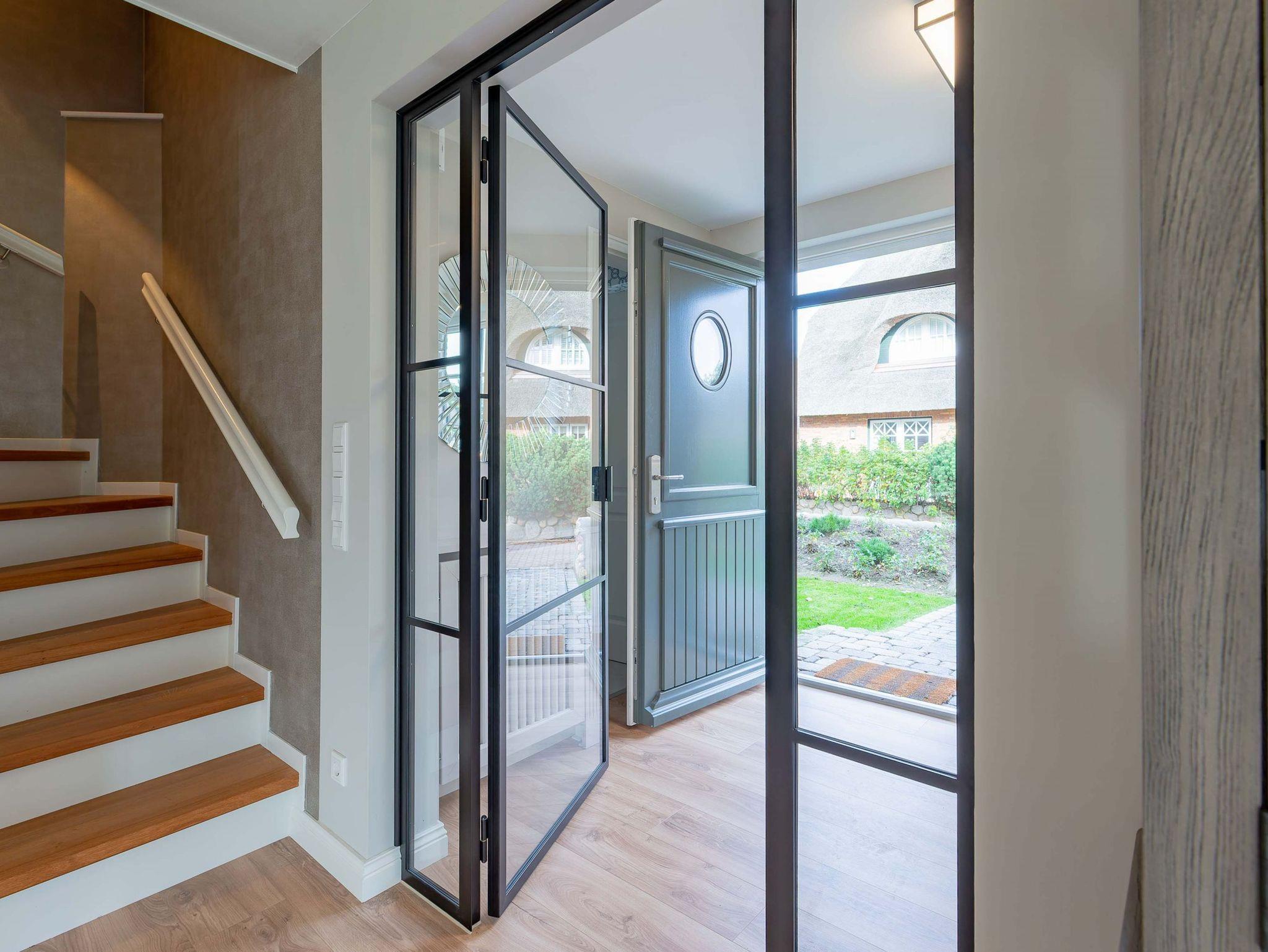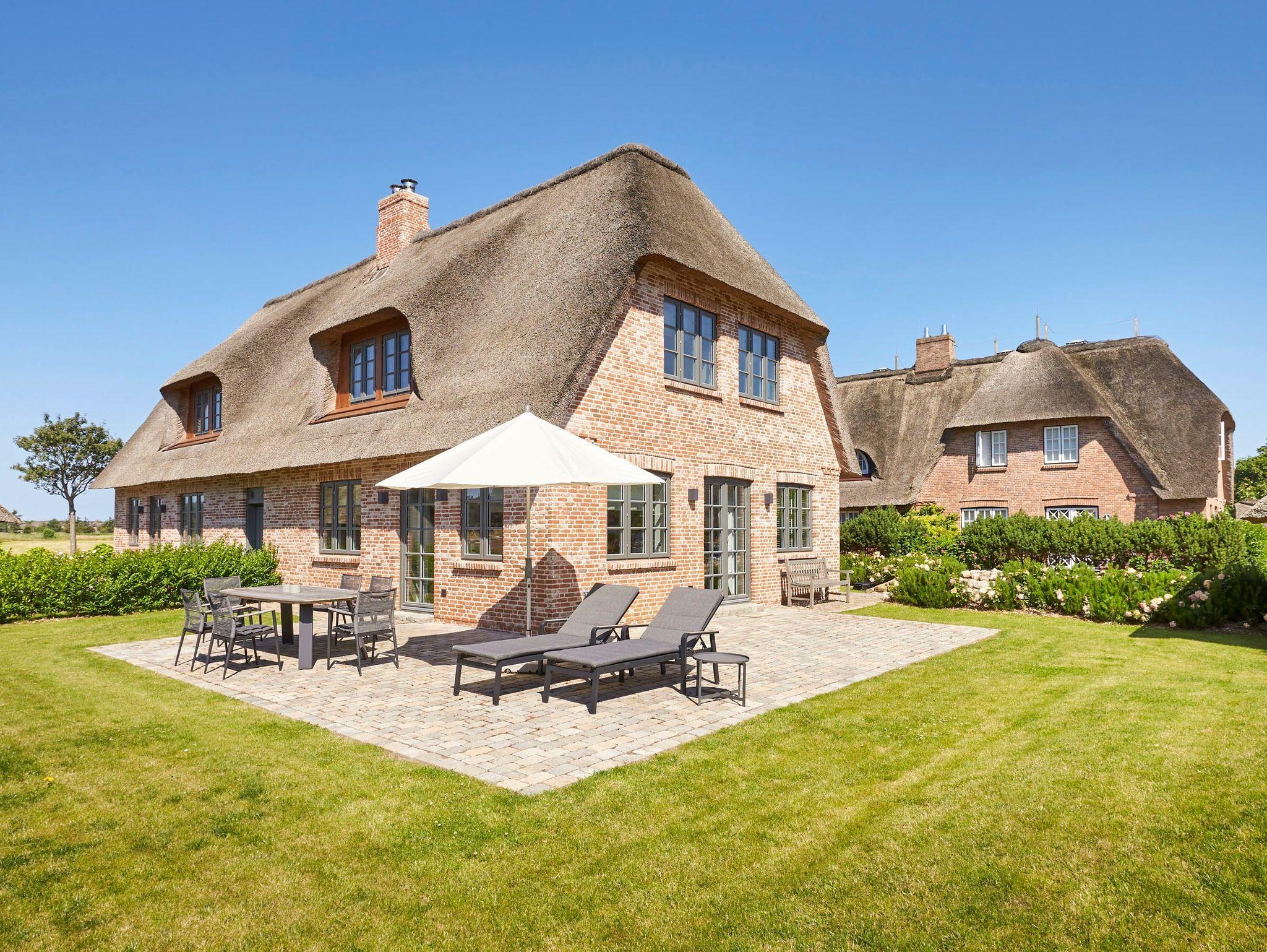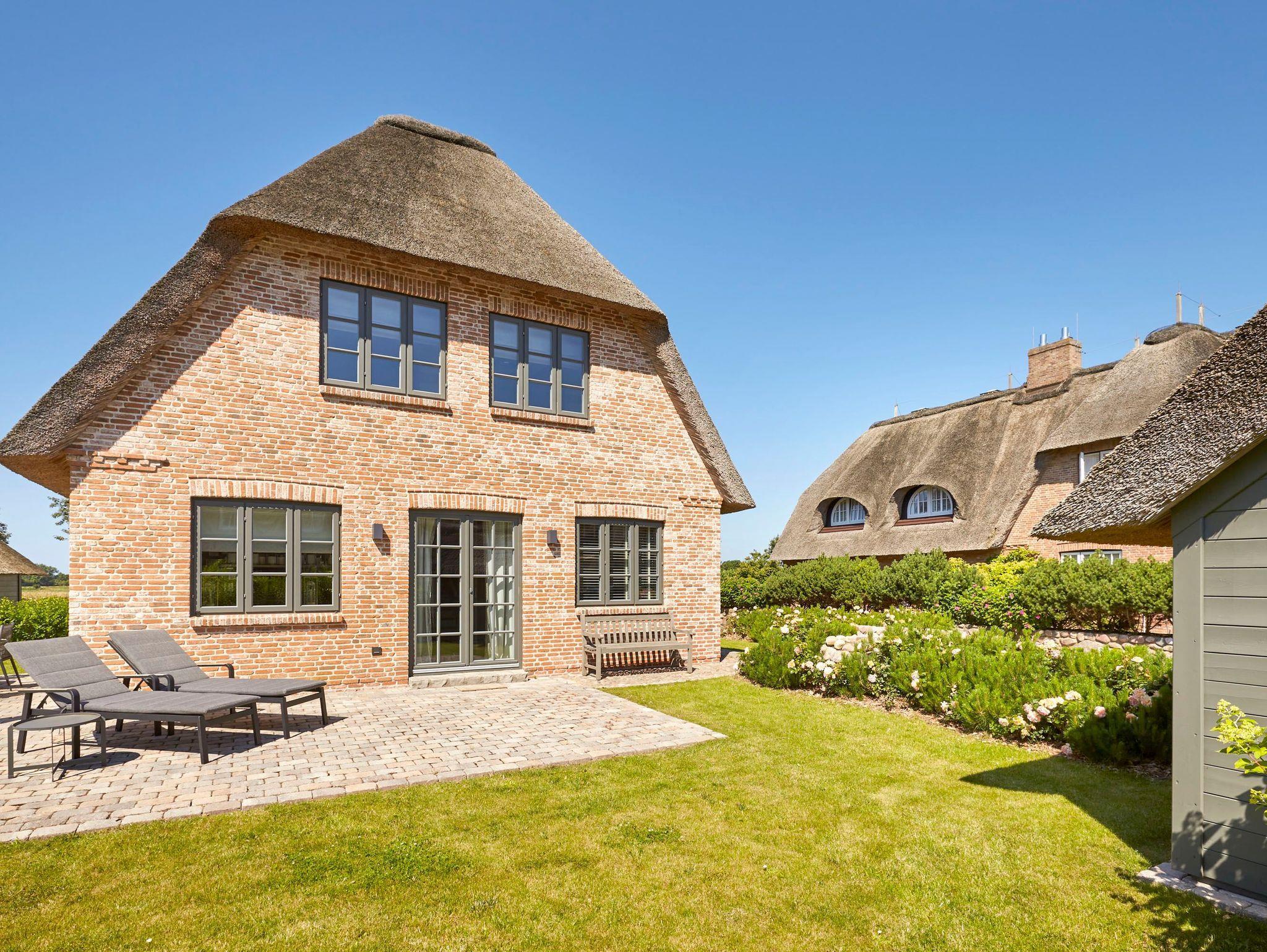 Moderne Haushälfte unter Reet in Nieblum mit Sauna, Kamin und Nähe zum Strand für erholsame Urlaubstage.