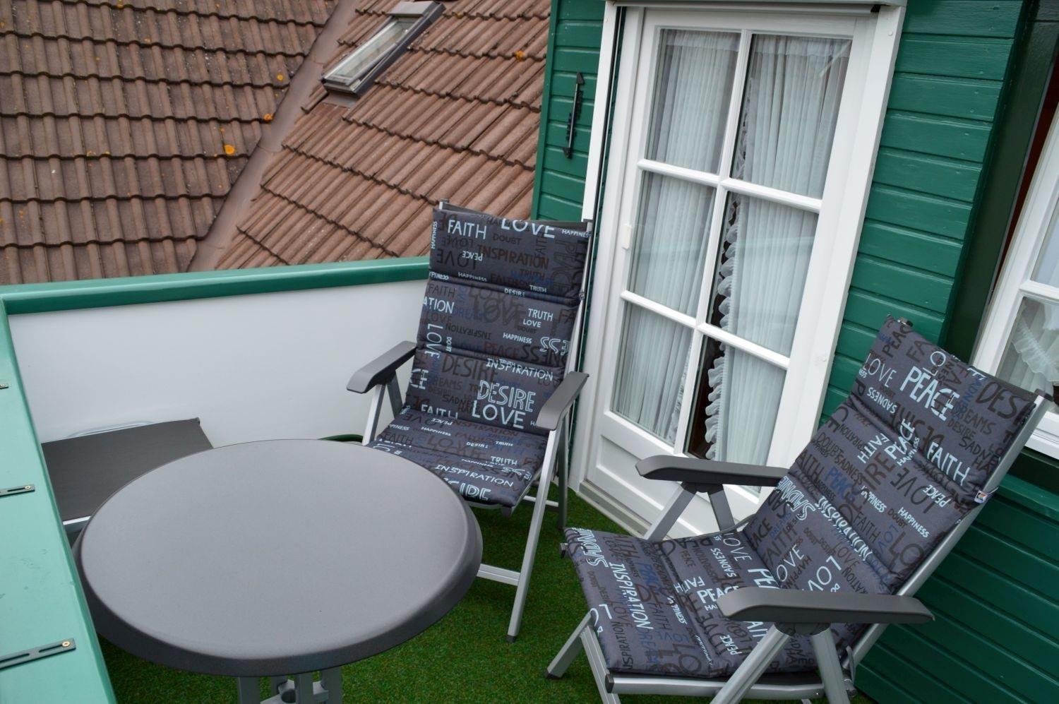 Stilvolle Ferienwohnung mit Balkon im Zentrum von Nieblum, nahe Restaurants und Strand, ideal für einen erholsamen Nordseeurlaub.