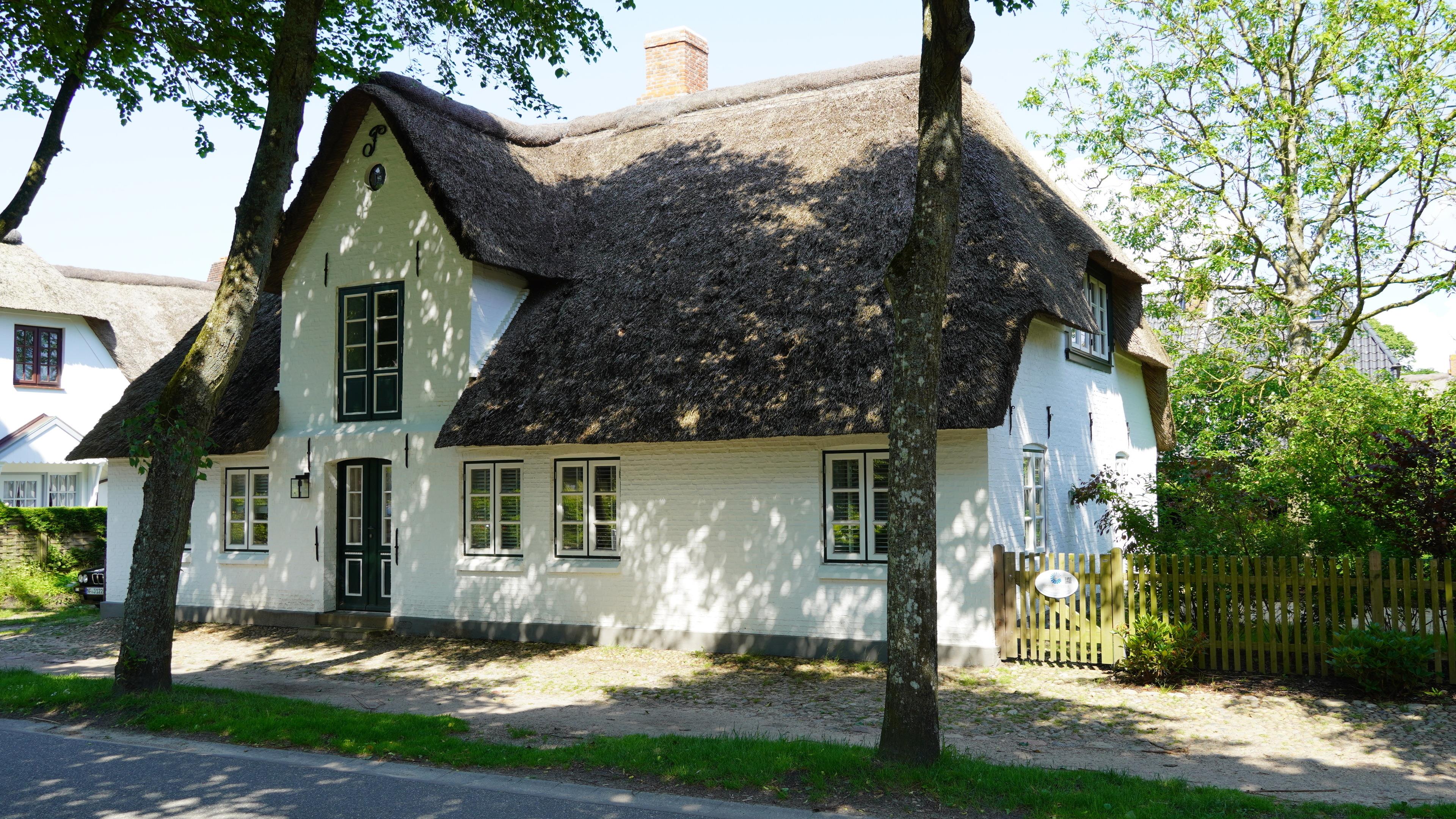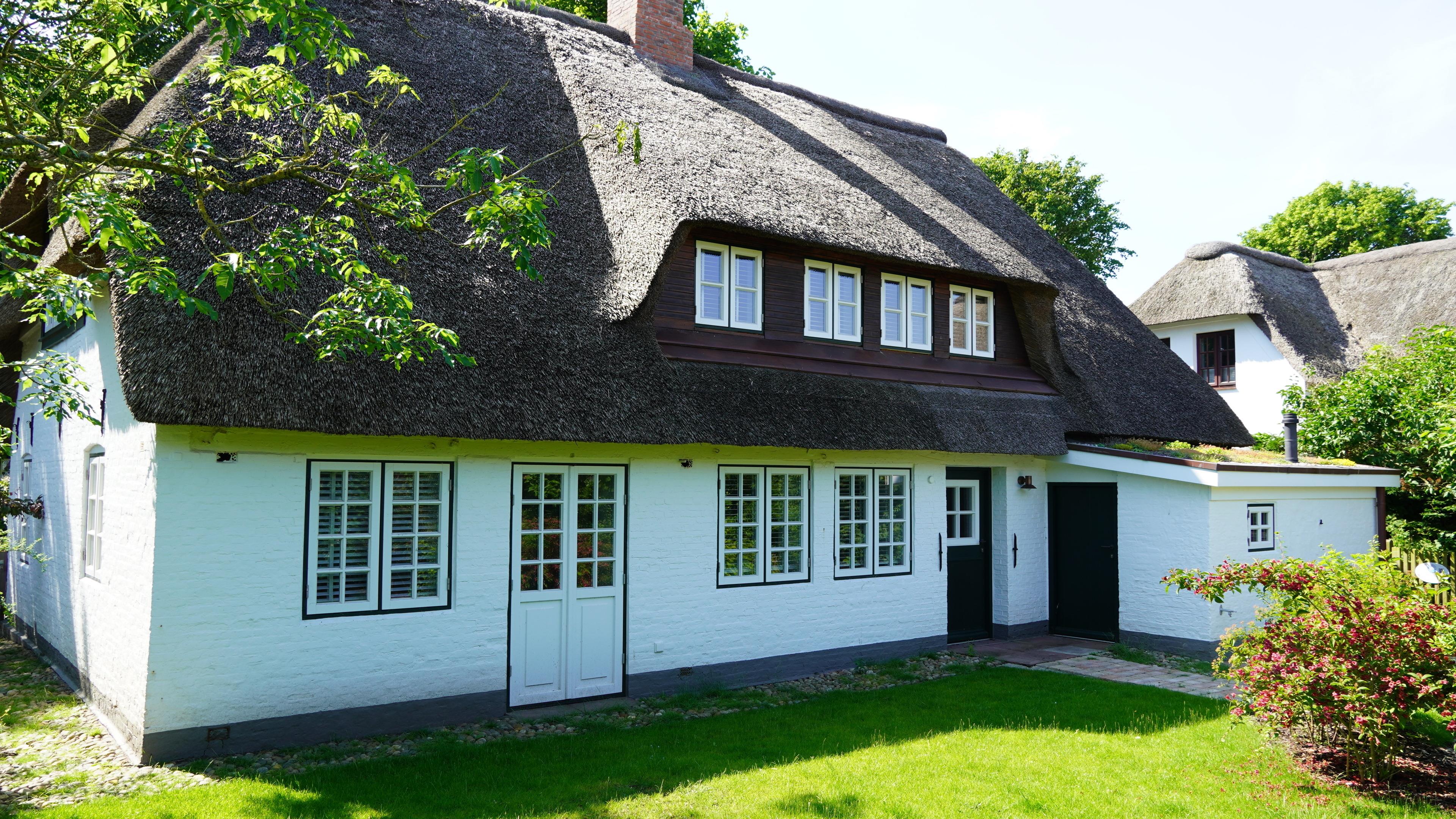 Erleben Sie im Kapteins Hüüs in Nieblum Komfort und traditionelles Flair in einem reetgedeckten Haus mit idyllischem Garten.