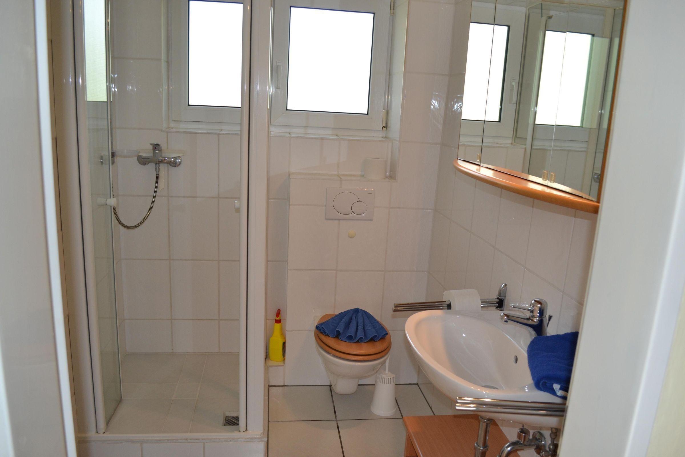 Die untere Ferienwohnung im Ferienhaus in Nieblum erstreckt sich über ca. 75 qm und bietet einladenden Raum für einen erholsamen Aufenthalt. Sie umfasst drei Zimmer, eine separate Küche und ein Bad. Das Schlafzimmer ist mit einem großen Kleiderschrank, einer Kommode und zwei normalen Schlafbetten ausgestattet. Im zweiten Schlafzimmer befindet sich ein großer Kleiderschrank sowie zwei normale Schlafbetten in Form eines Hochbettes. Das wohnliche Wohn- und Esszimmer ist mit einer komfortablen Sitzgruppe, die auch als ausklappbares Bett genutzt werden kann, sowie einer Essgruppe eingerichtet. Die Küche ist komplett ausgestattet und verfügt über einen Herd mit Backofen, eine Mikrowelle und eine Geschirrspülmaschine. Ein Kinderbett oder -stuhl kann auf Wunsch bereitgestellt werden. Kostenlose Internet- und Telefonflat sind ebenfalls verfügbar.