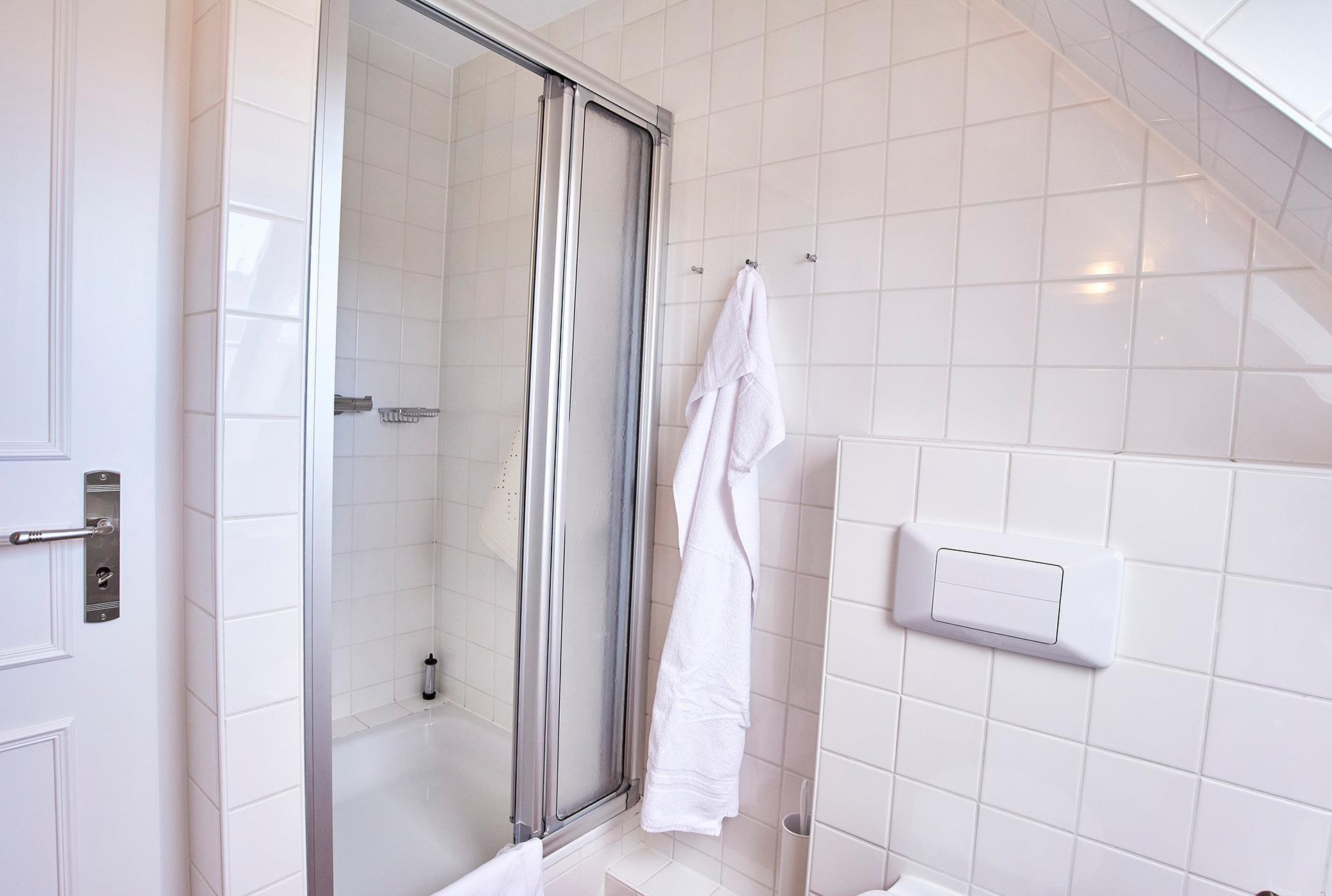 Vom Gemeinschaftseingang des Hauses gelangen Sie über eine Treppe zu Ihrem eigentlichen Urlaubsdomizil. Es stehen Ihnen ein helles, großzügiges Wohnzimmer mit Essgruppe und moderner Einbauküche, ein Schlafzimmer mit Doppelbett und ein Duschbad/WC zur Verfügung.