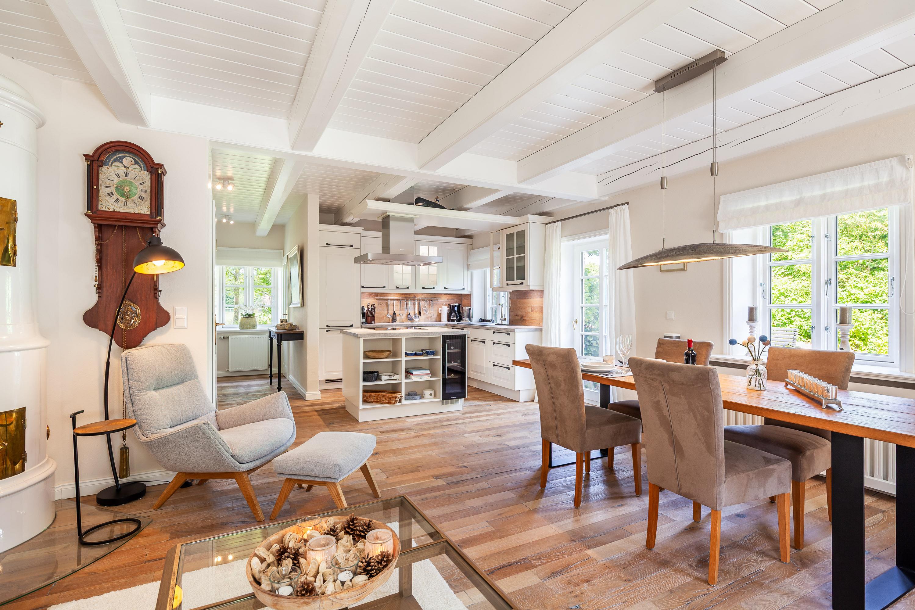 Sauna und Kachelofen verleihen dem Haus auch in der Nebensaison eine besondere Attraktivität. Zwei Bäder, Kochinsel, zwei sichtgeschützte Terrassen zum Wohlfühlen, Rückzugsmöglichkeiten bieten ideale Voraussetzungen für einen erholsamen Urlaub im malerischen Inseldorf Nieblum. Geschäfte, Bäcker, Restaurants, Strand fußläufig erreichbar.