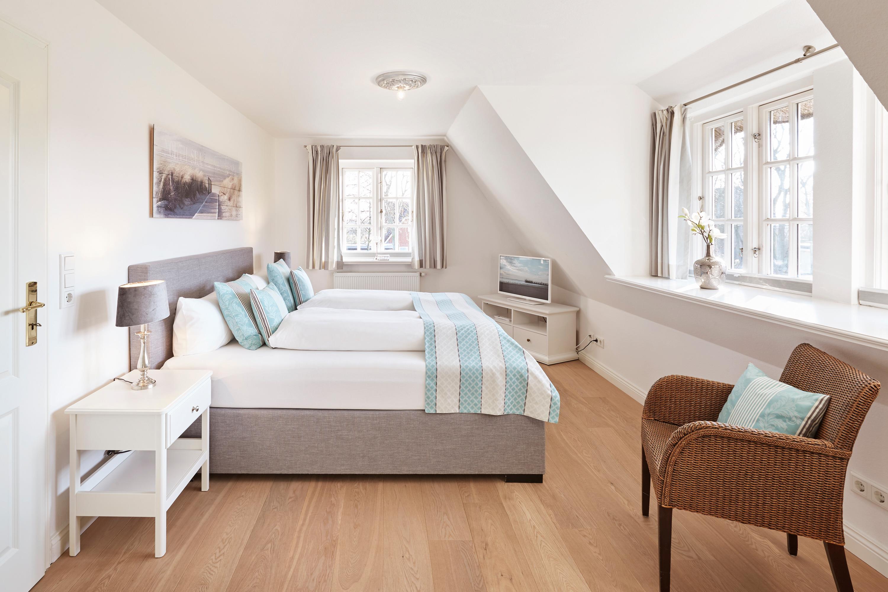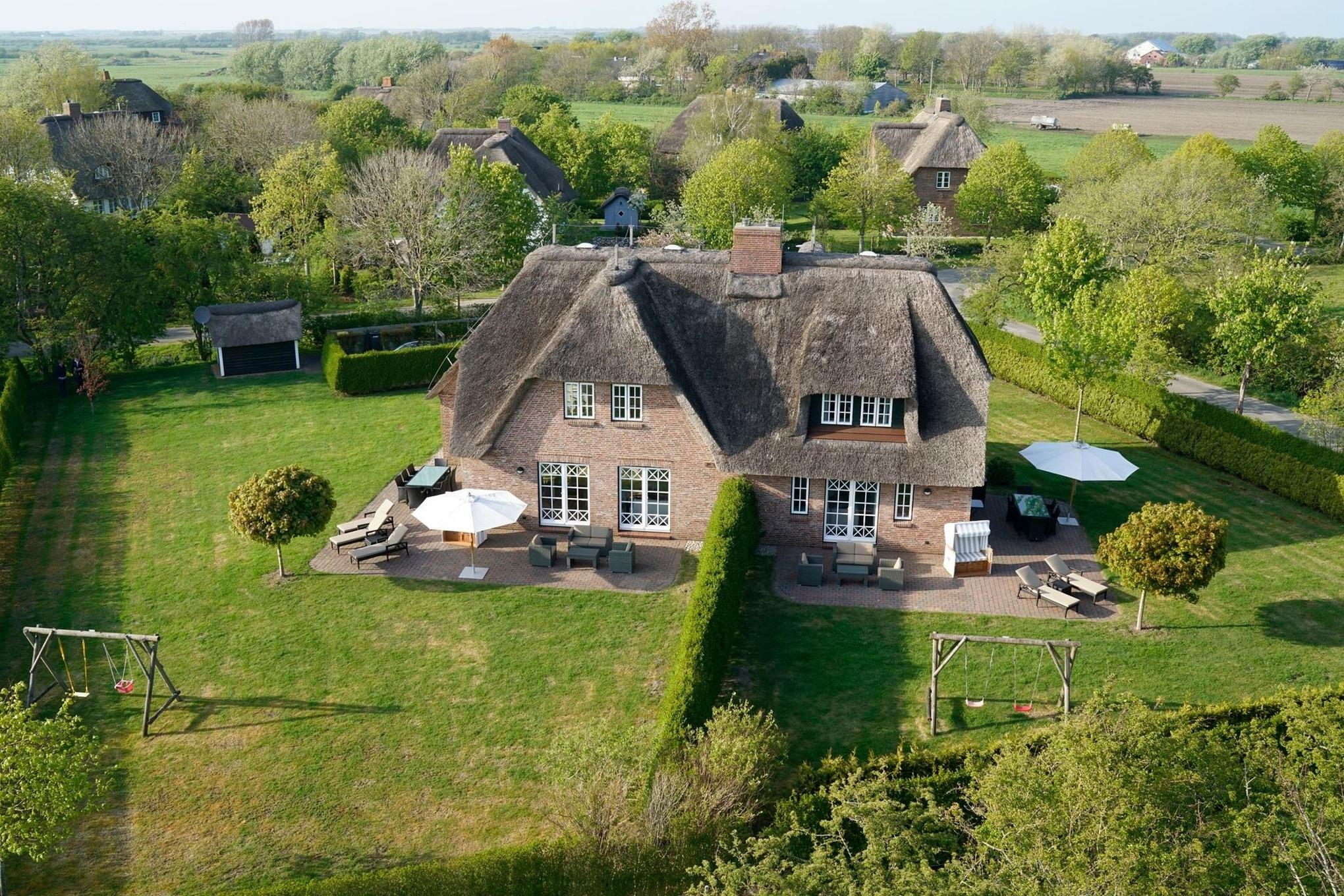 Landhaus Nieblum 1, Drunkenmanns Stieg 17, Nieblum. .Herzlich Willkommen in unserem Domizil in Nieblum. Dieses exklusive Doppelhaus, in einer absolut ruhigen Straße im Herzen von Nieblum gelegen, wird Sie begeistern. Jede Doppelhaushälfte wurde sehr hochwertig und geschmackvoll ausgestattet. Wohnen Sie unter Reet im schönsten Dorf der Insel Föhr und genießen Sie den großen Garten. Wir freuen uns, Sie als unsere Gäste begrüßen zu dürfen.