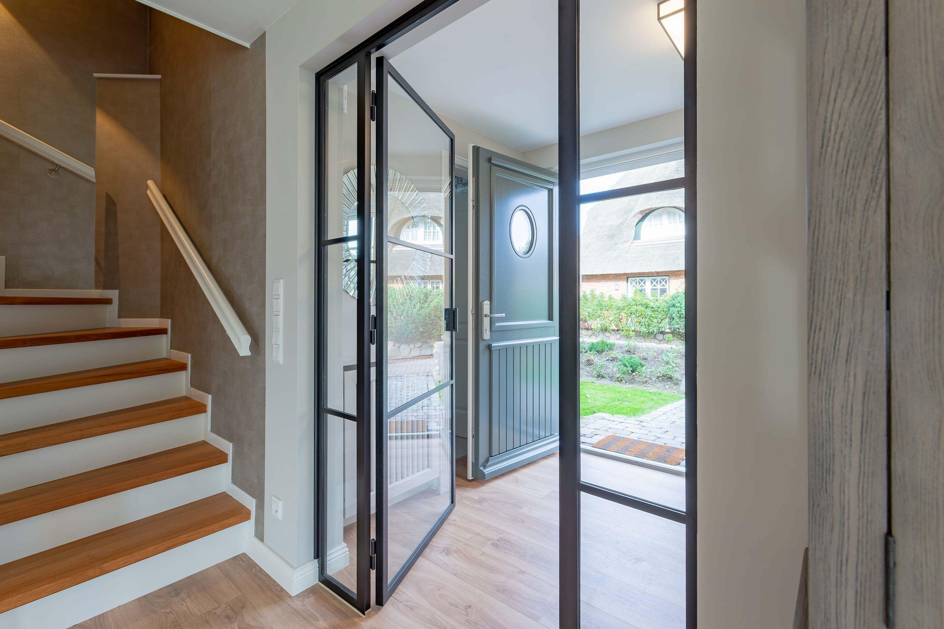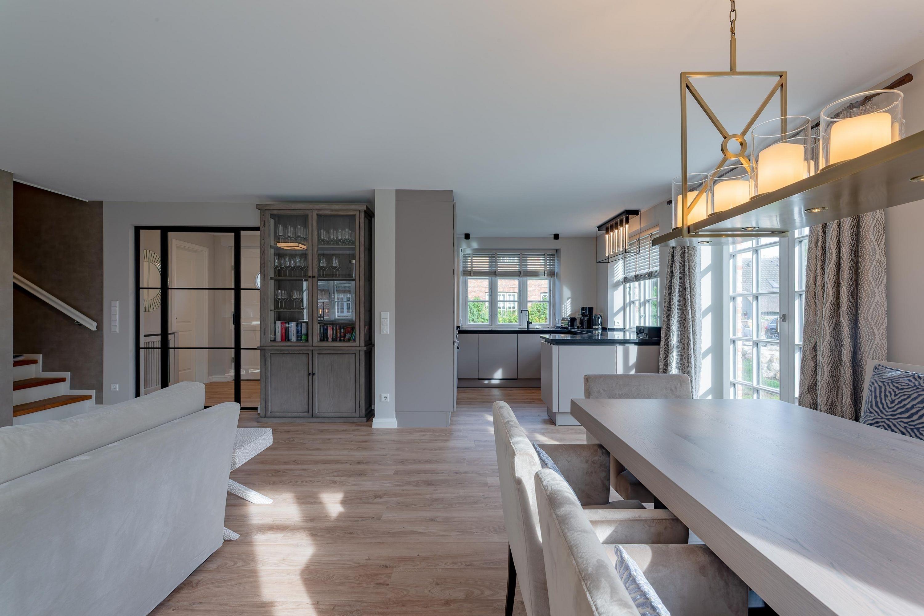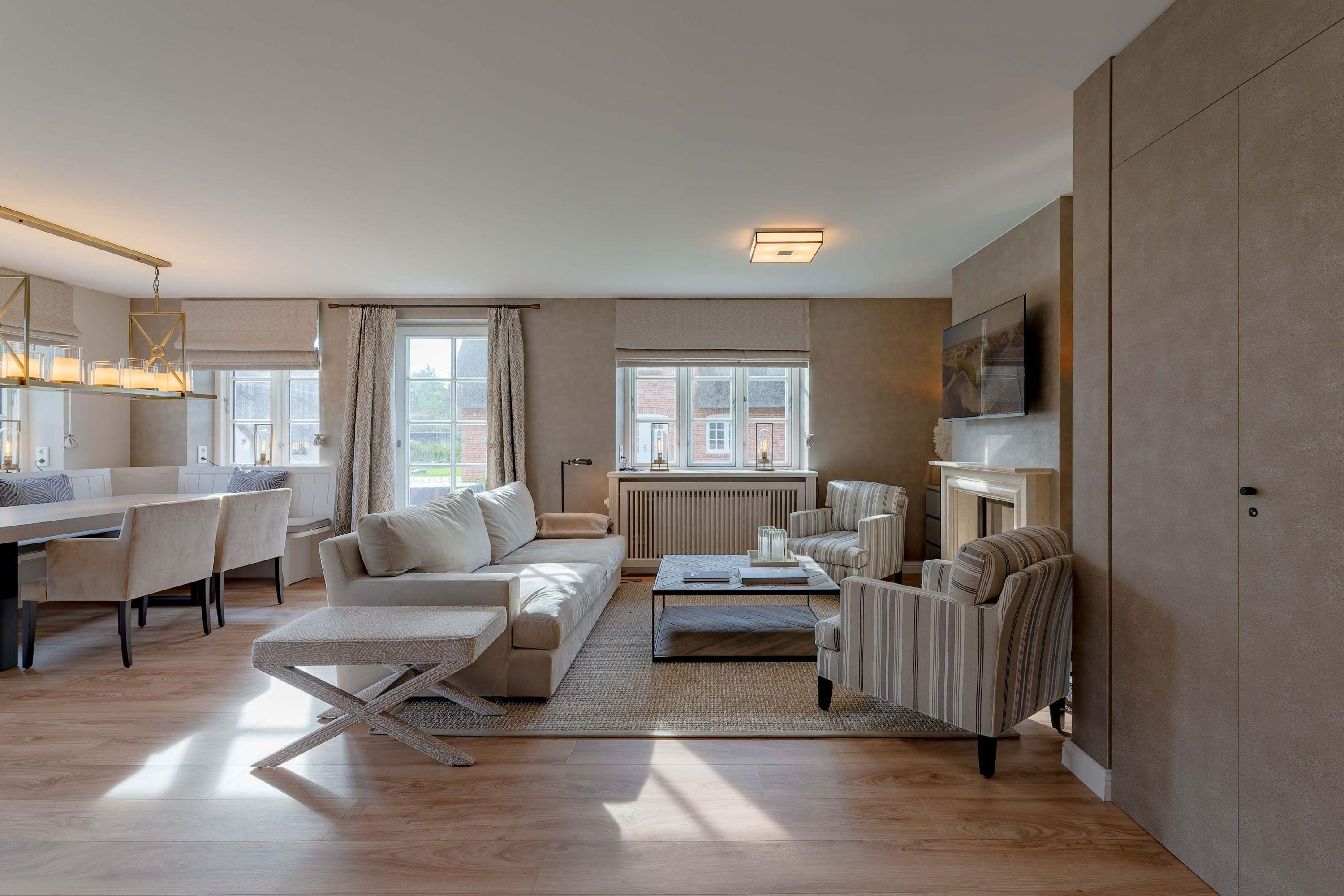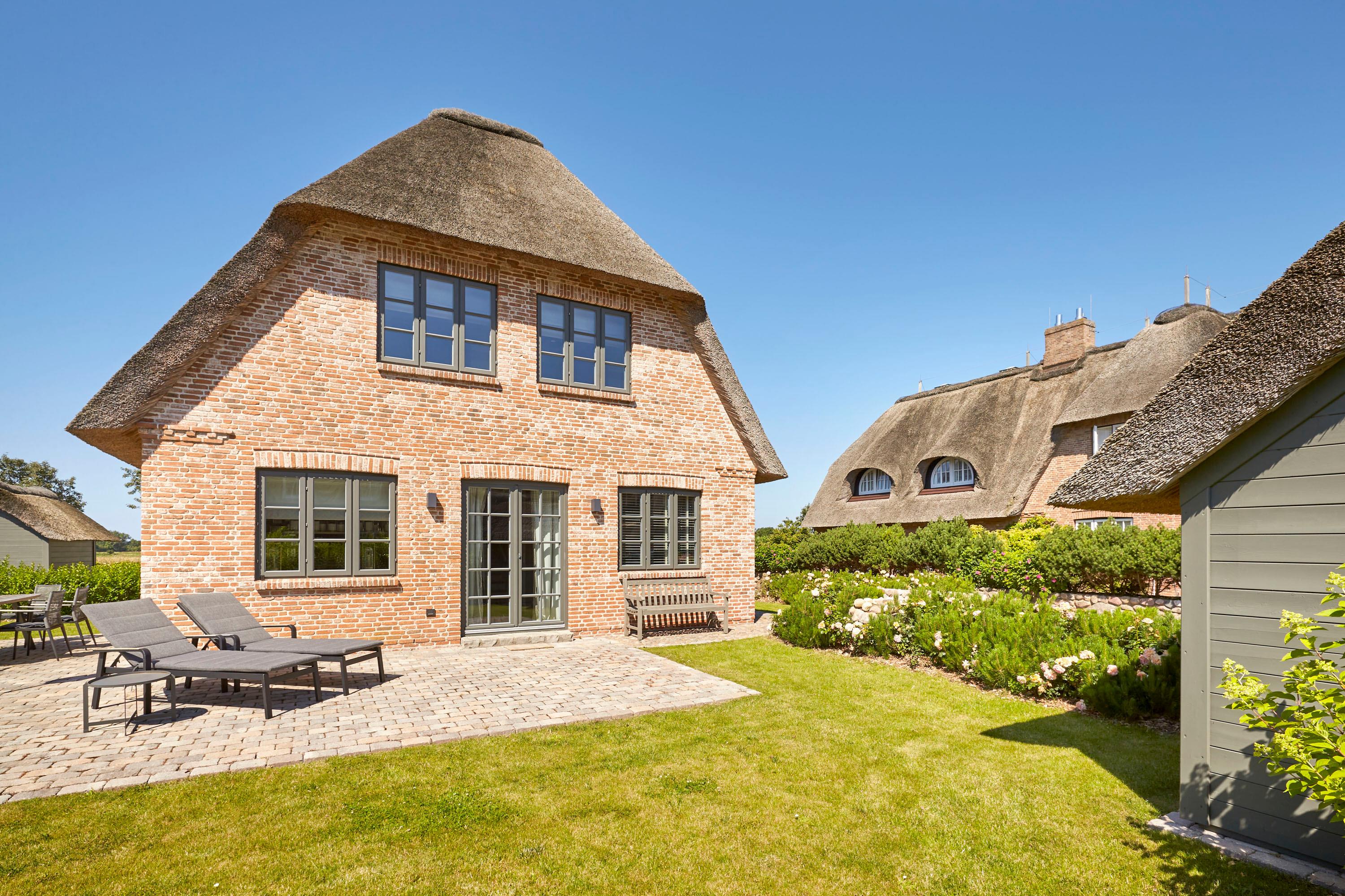 Für die schönste Zeit des Jahres bieten wir mit dem East Side eine Haushälfte unter Reet in Nieblum an. Die Räume wurden von einem bekannten Hamburger Interior Designer modern und sehr geschmackvoll gestaltet. Auf dem sonnig und ruhig gelegenen Grundstück können Sie den Tag mit einem Kaffee begrüssen oder den Abend beim Sonnenuntergang im Strandkorb ausklingen lassen. Günstig gelegen befinden sich in 200 Meter Entfernung das Zentrum von Nieblum mit Restaurants, Bäcker und bezaubernden Läden zum Einkaufen. Nur 800 Meter entfernt ist der feinsandige Nieblumer Strand mit Wassersportmöglichkeiten. Drei Schlafzimmer jeweils mit Fernseher bieten Platz für 6 Personen. Die Sauna im Spitzboden und der Kamin im Wohnzimmer sorgen für Behaglichkeit zu jeder Jahreszeit. Die offene Küche verbindet Ess- und Wohnraum und lädt zum Verweilen ein. Die schönsten Gassen und Bauerngärten und die alten Kapitänshäuser möchten von Ihnen entdeckt werden. Nieblum, als eines der schönsten Dörfer in Nordfriesland, wird bestimmt auch Ihr Herz erobern.