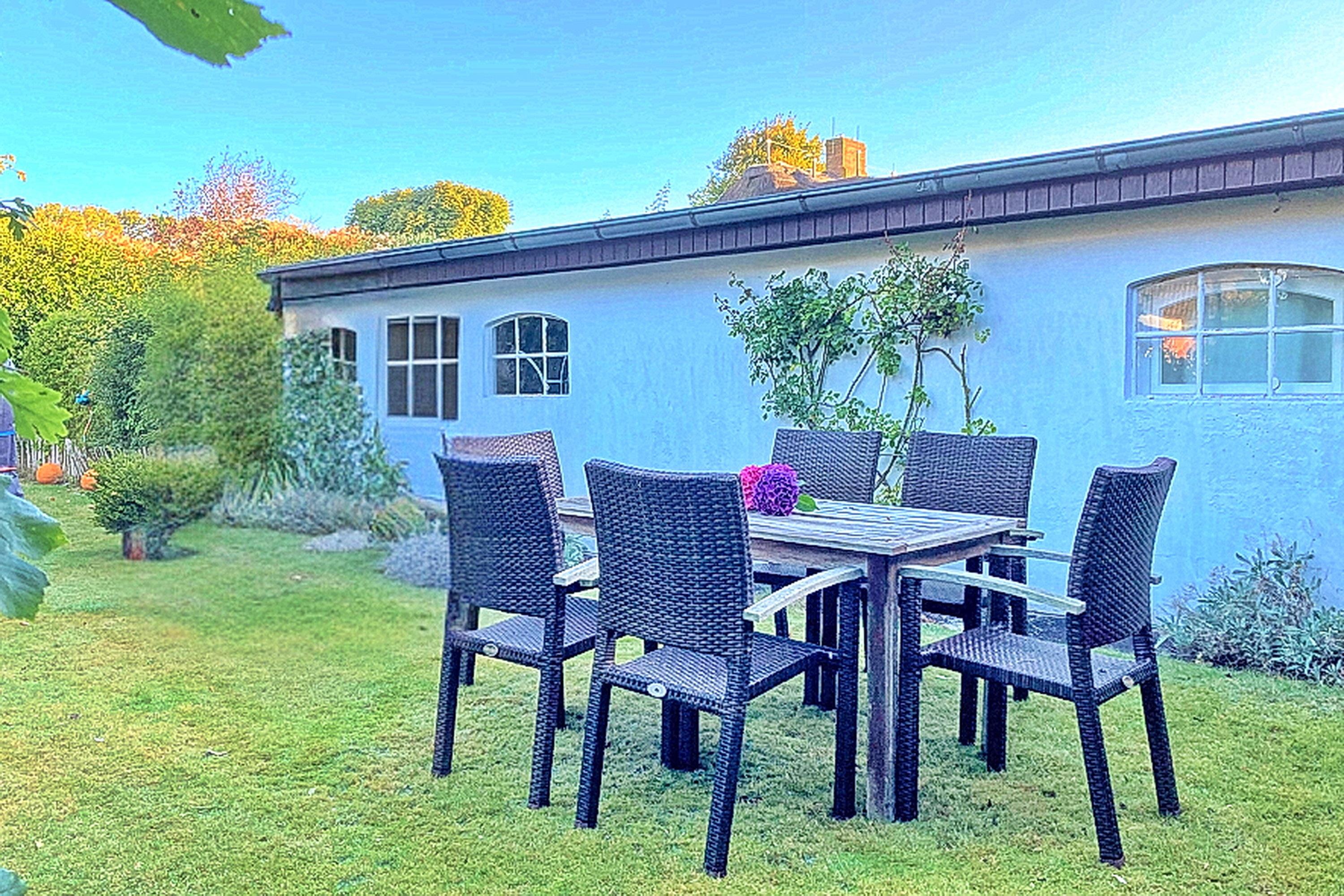 Das Haus verfügt über einen gemeinsam nutzbaren Waschraum mit Trockner und Waschmaschine (beides gegen Gebühr) und einen wunderschönen, gepflegten Gemeinschaftsgarten mit einem der Wohnung zugeordneten Sitzplatz. Ein eigener PKW-Stellplatz und ein Fahrradabstellplatz runden das Angebot ab. Fühlen Sie sich rundum wohl in diesem Domizil und genießen Sie Ihre Tage im wohl bekanntesten Dorf von Föhr.