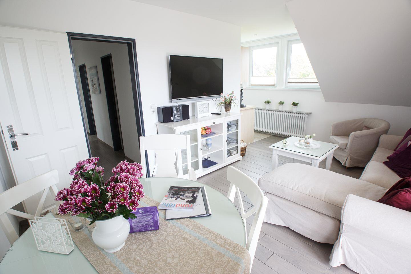Unser Kajüte 23 befindet sich im 1. OG eines Dreiparteienhauses. Über eine Treppe gelangen Sie zum separaten Eingang. Auf ca. 50 qm Wohnfläche erwartet Sie ein lichtdurchflutetes, sehr gemütliches und neu eingerichtetes Wohnzimmer mit offener, moderner Einbauküche, die keine Wünsche offen lässt. Hier kocht man sich morgens gerne seinen Kaffee. Der Bäcker für frische Brötchen ist nur 500 Meter entfernt. Sie entscheiden selbst, ob Sie lieber am gemütlichen Esstisch frühstücken möchten oder auf dem wunderschönen großen und sonnigen Balkon in den Tag starten.