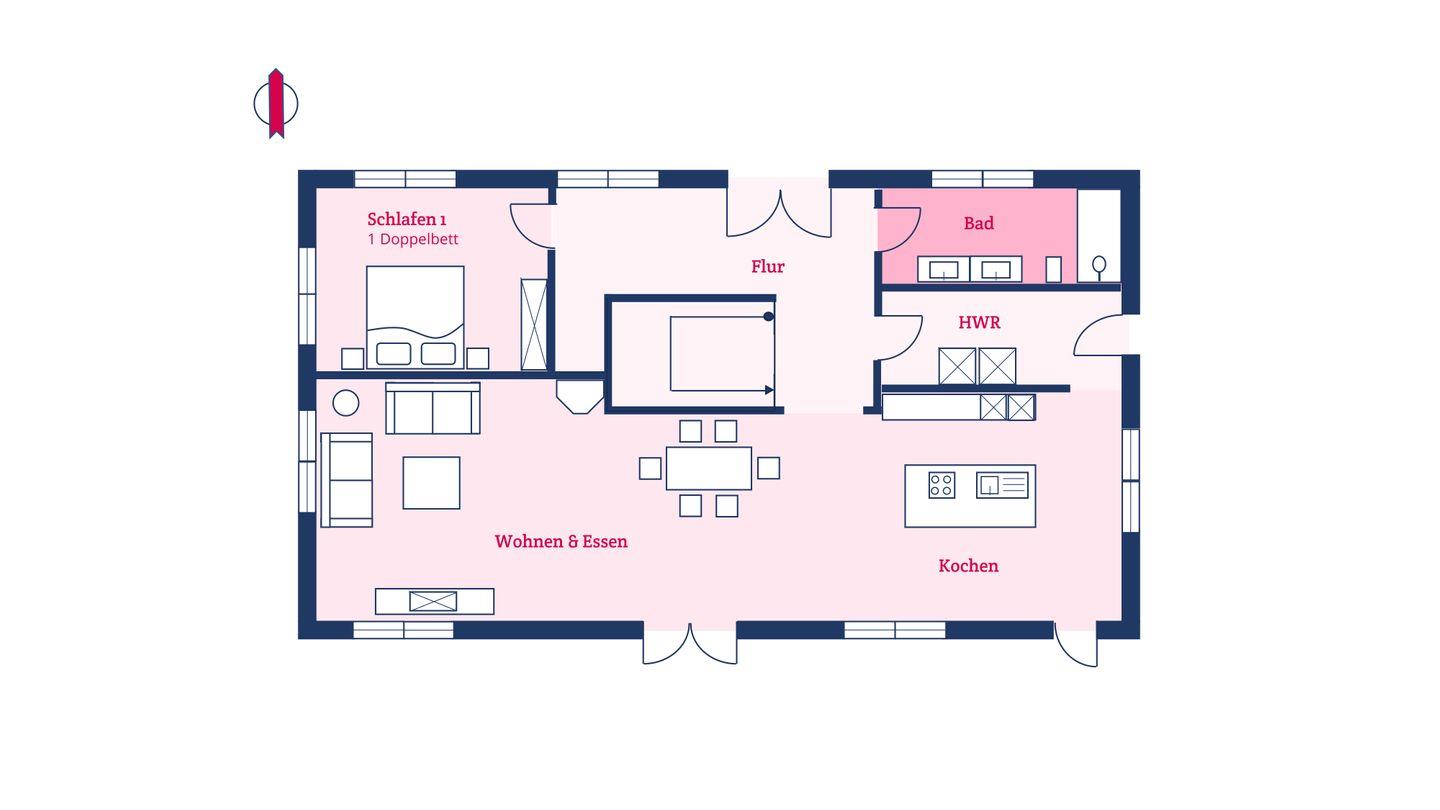 Das reetgedeckte Ferienhaus in Nieblum auf Föhr, welches im Jahr 2020 erbaut wurde, verfügt über drei Schlafzimmer und zwei Bäder und bietet 6 Personen zuzüglich einer Kleinkinderaufbettung komfortabel Platz.