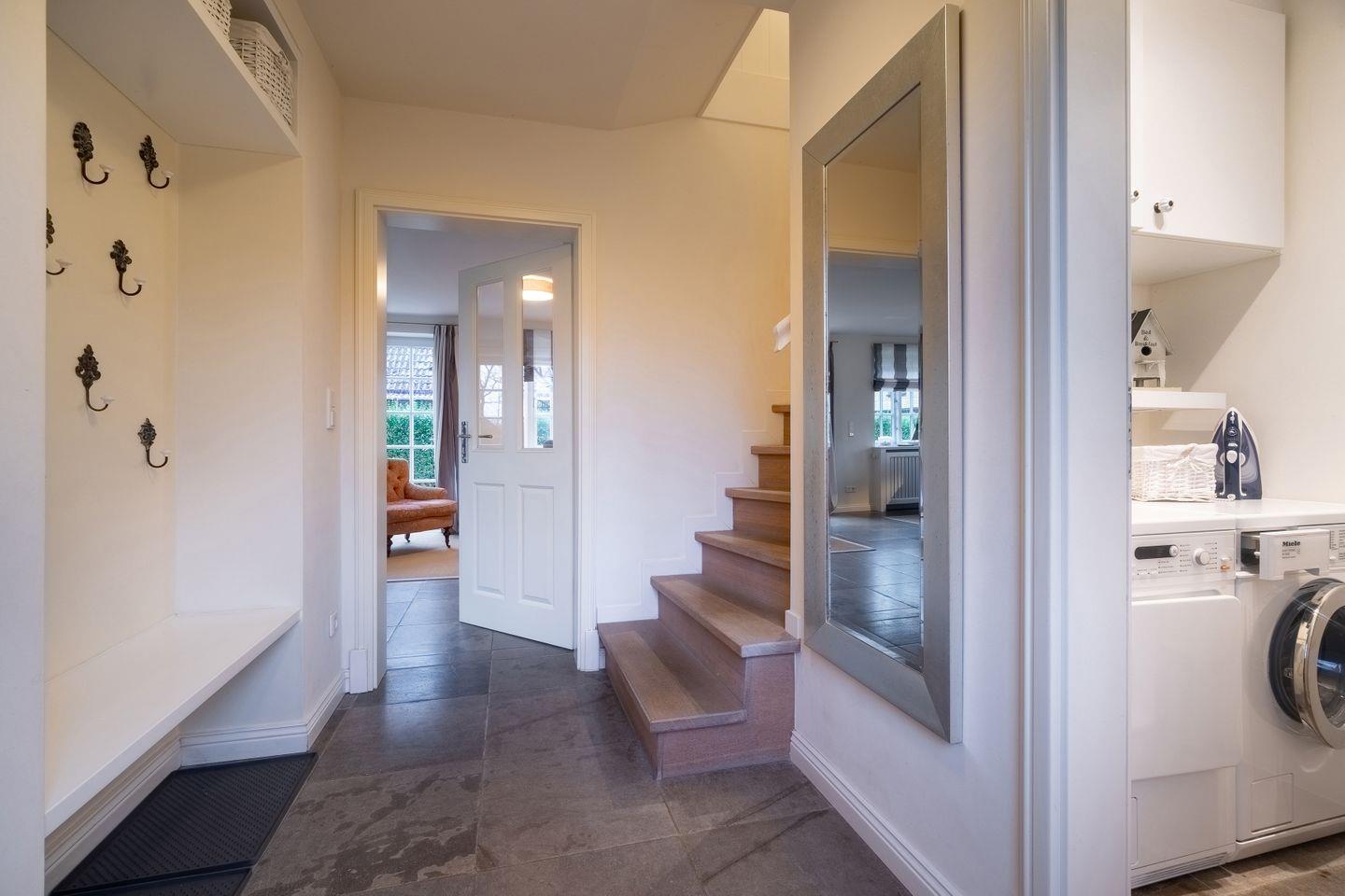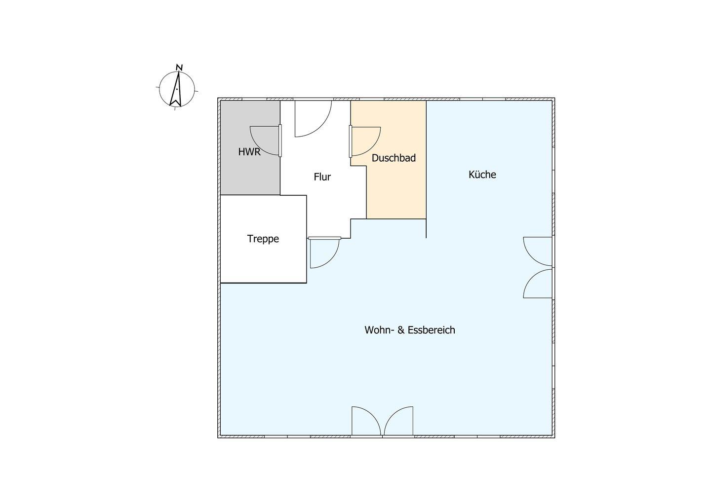 Im Erdgeschoss befinden sich der großzügige Wohn- und Essbereich mit offener Küche, ein Bad mit bodengleicher Dusche sowie ein Hauswirtschaftsraum mit Waschmaschine und Trockner. Über den Wohnbereich gelangen Sie direkt in den Garten und auf die eigene Terrasse.