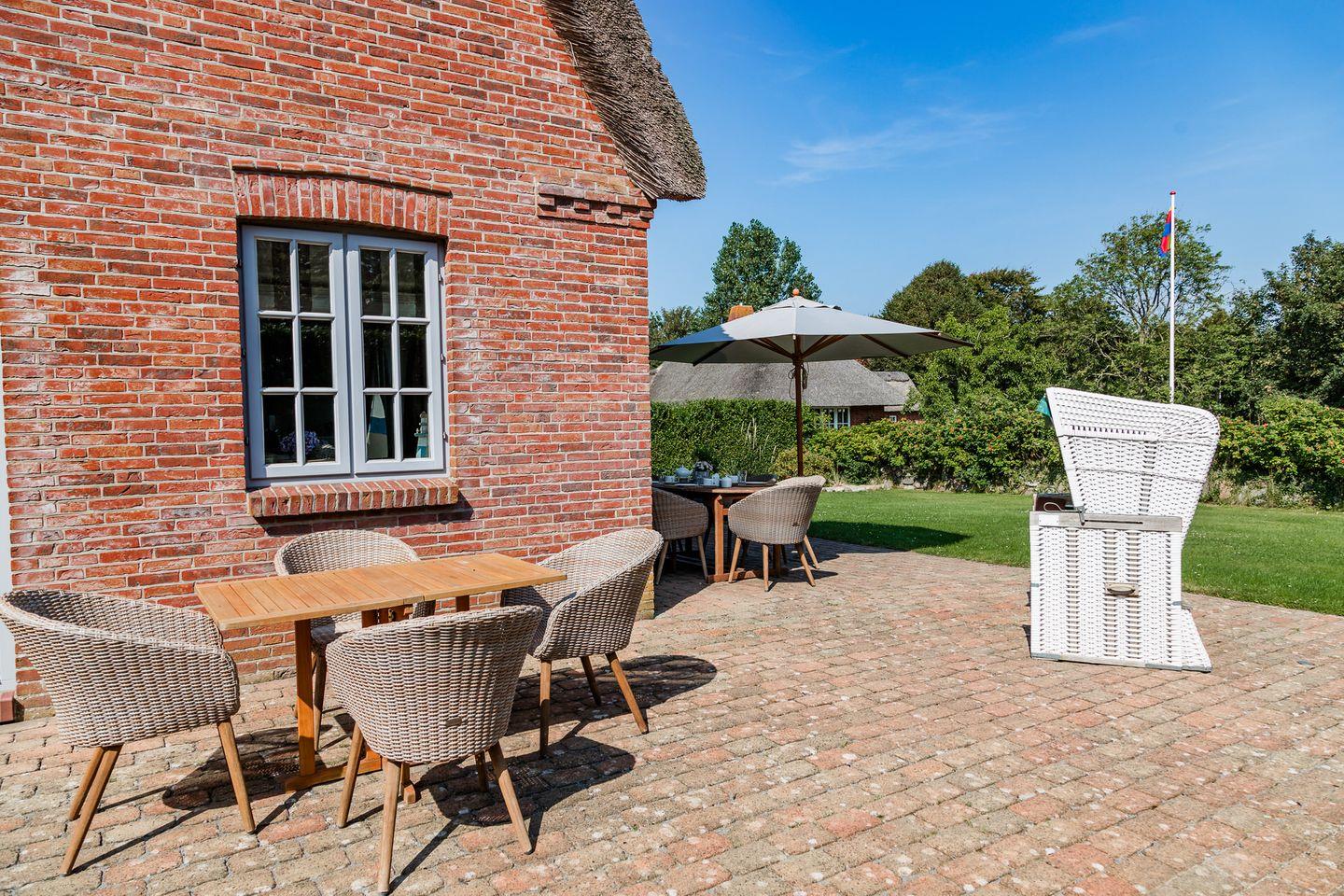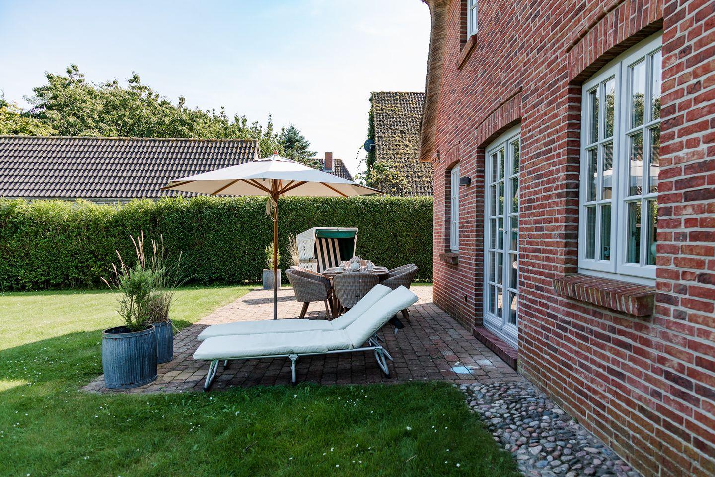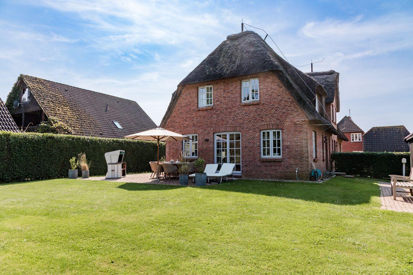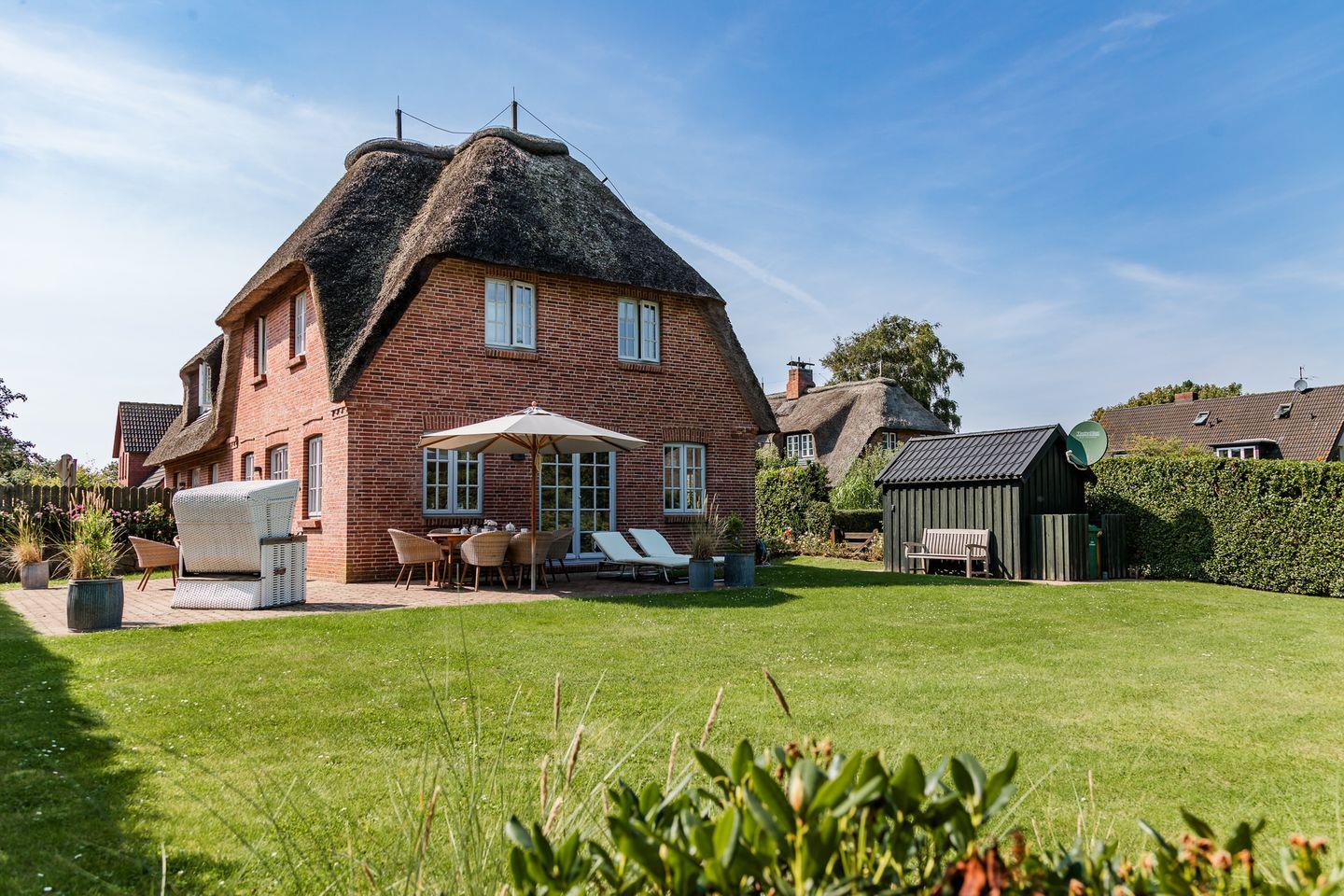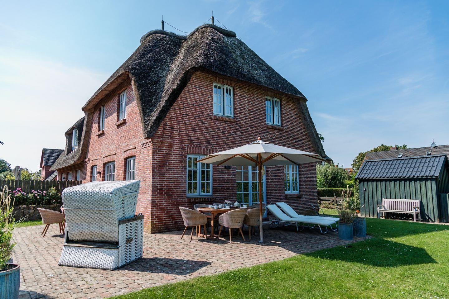 Reetgedeckte Doppelhaushälfte in ruhiger Lage mit eigener Sauna und großem Garten mit zwei Terrassen.
