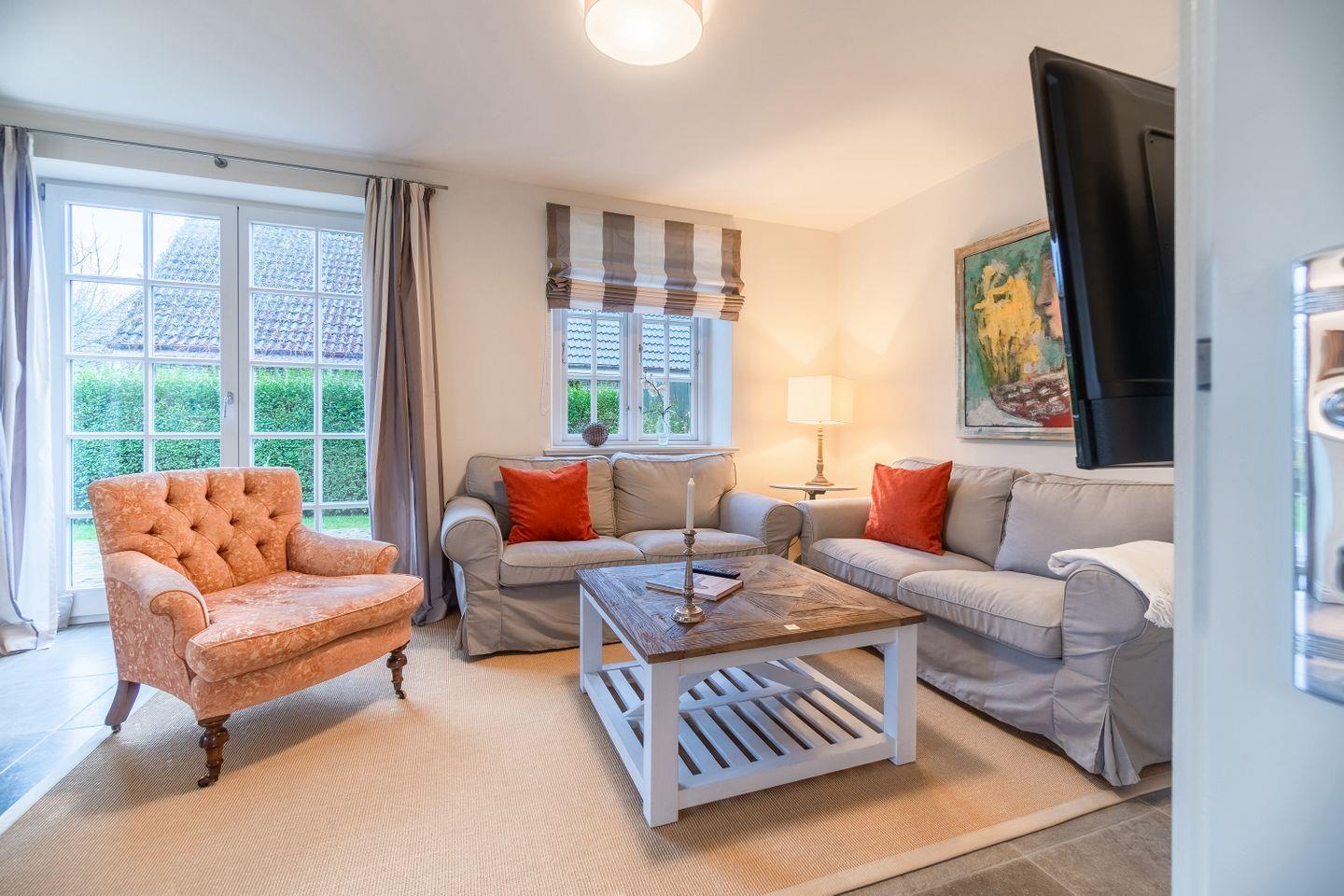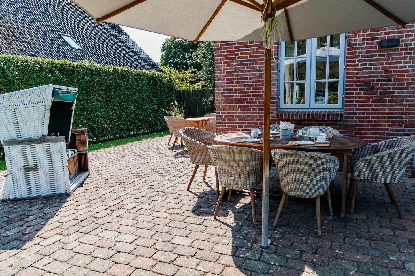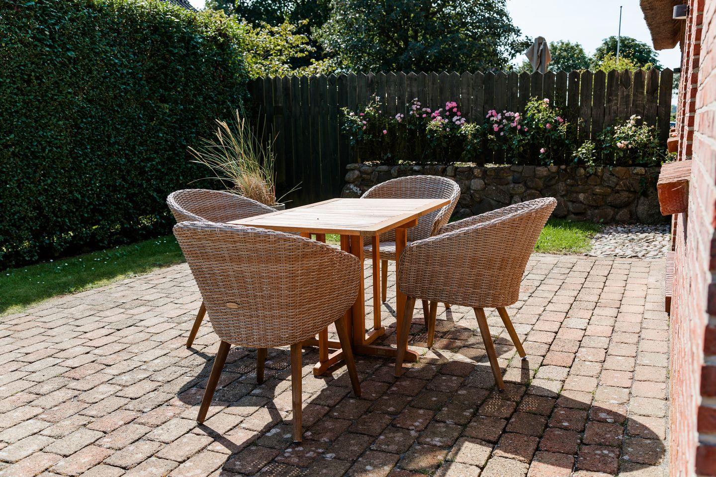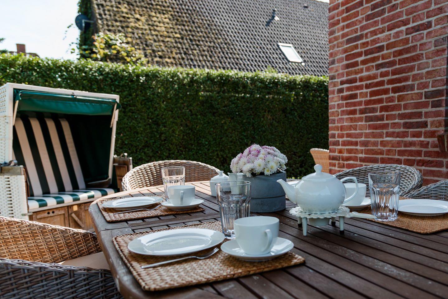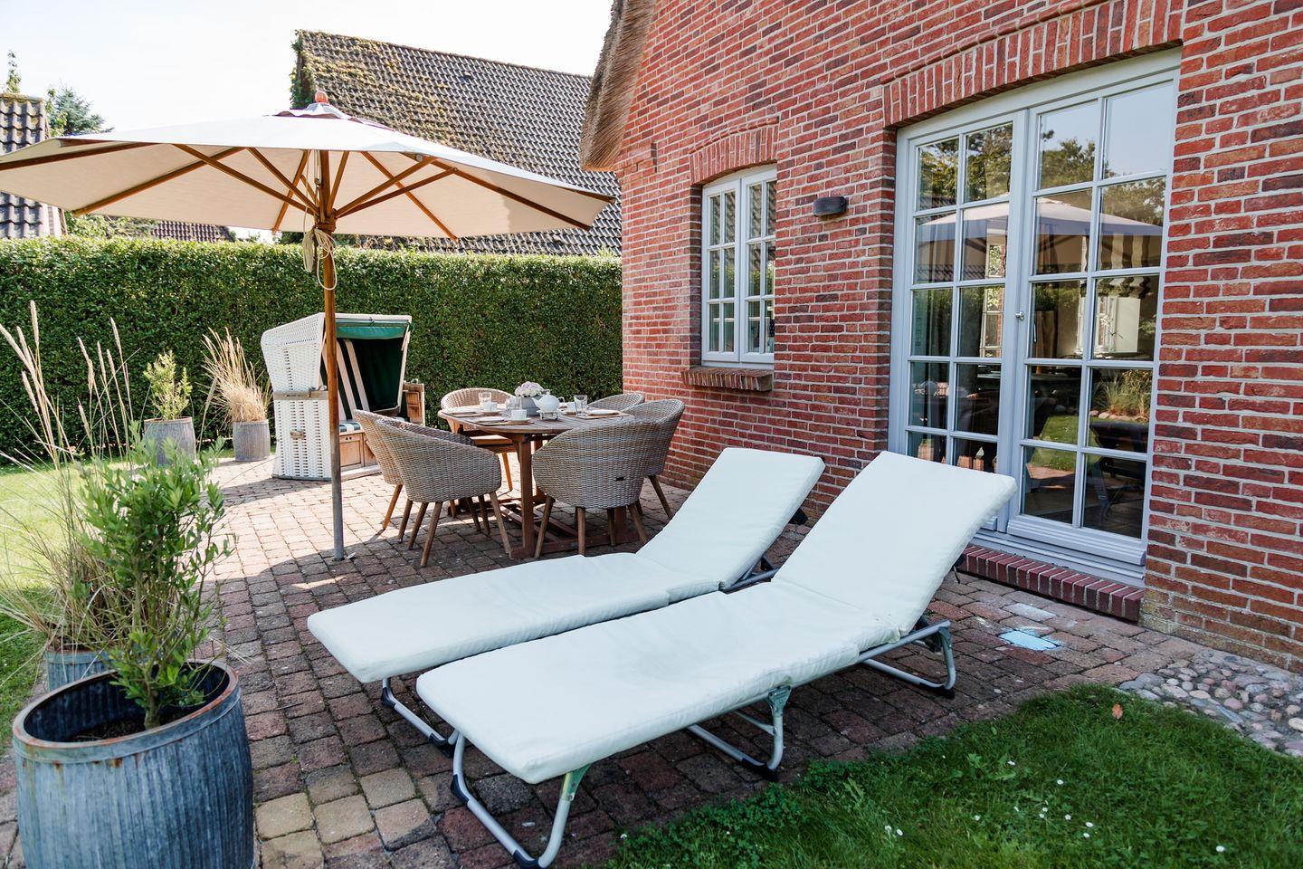 Reetgedeckte Doppelhaushälfte in ruhiger Lage mit eigener Sauna und großem Garten mit zwei Terrassen.