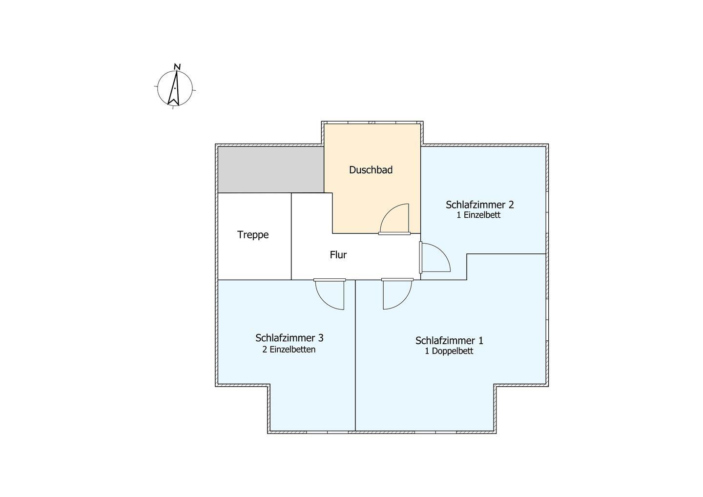 Im Obergeschoss sind die drei Schlafzimmer sowie ein weiteres Duschbad gelegen.