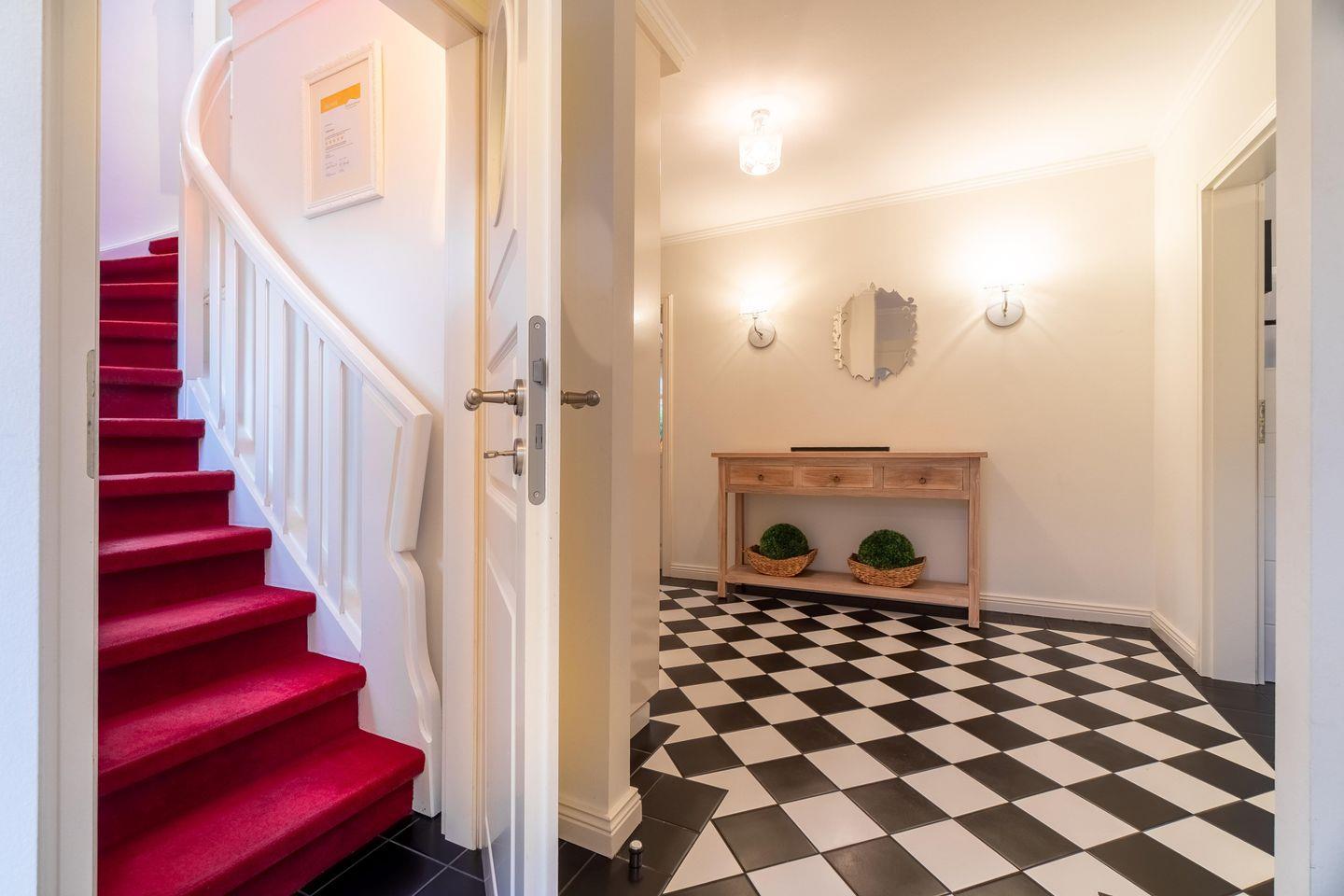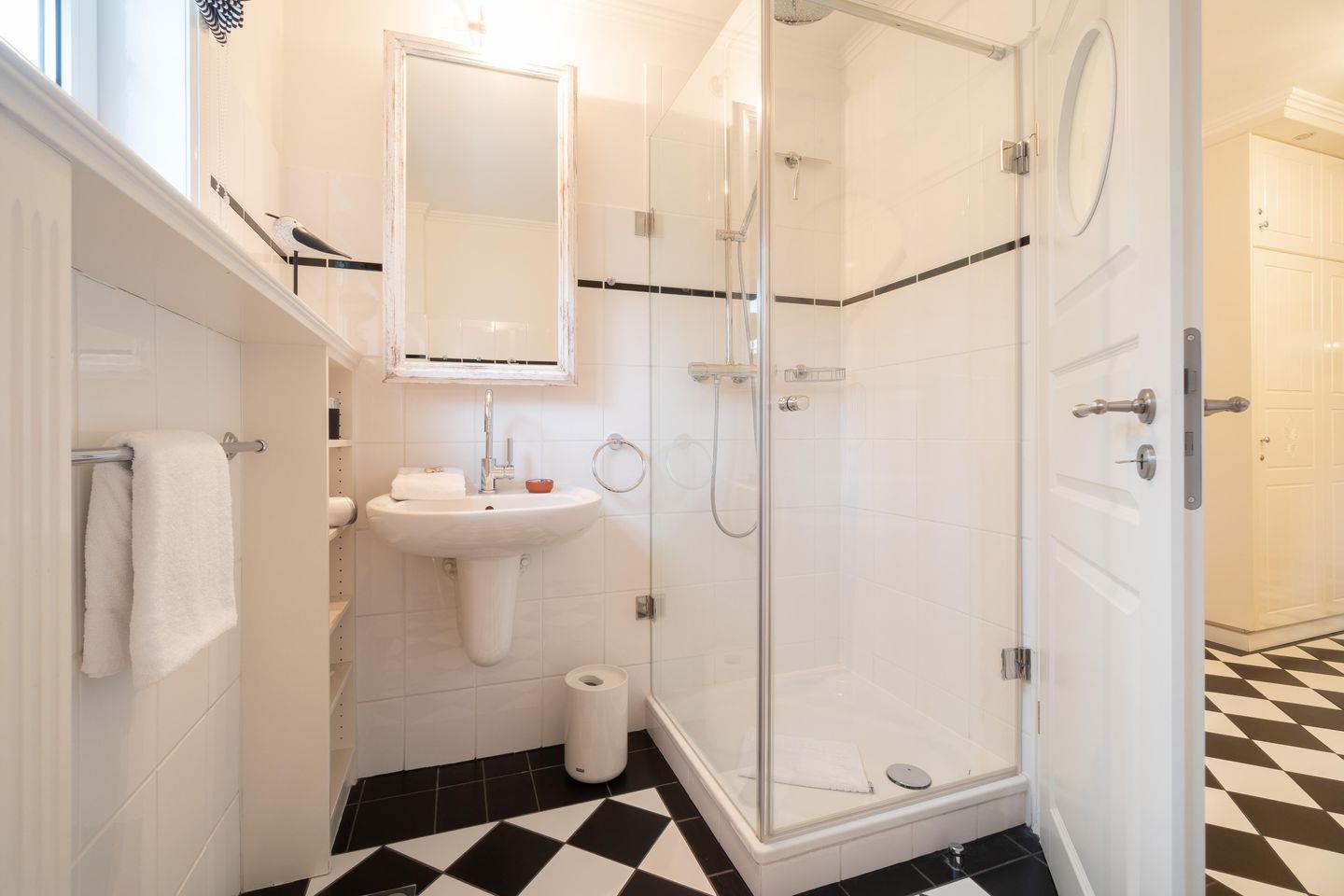 Im Obergeschoss sind die drei Schlafzimmer - jeweils mit 1 Doppelbett ausgestattet -, das zweite Duschbad und ein Wannenbad gelegen. Eines der Schlafzimmer verfügt über einen Schreibtisch.