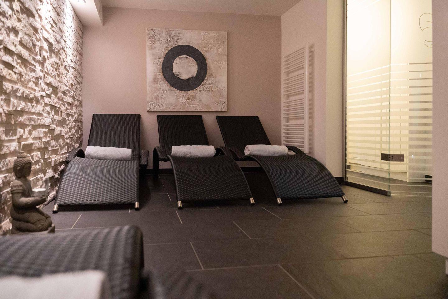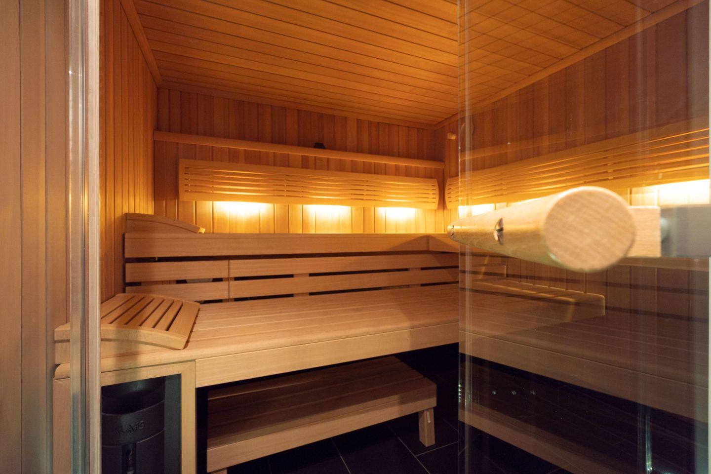 Im Souterrain befindet sich die hauseigene Sauna samt Ruheraum. Für eine einzigartige Atmosphäre sorgen der "Sternenhimmel" mit integriertem Relaxsound in der Sauna, sowie separater Musikanlage für die entspannten Momente im Ruheraum. Im Hauswirtschaftsraum stehen Ihnen eine Waschmaschine und ein Wäschetrockner der Marke Miele kostenlos zur Verfügung.