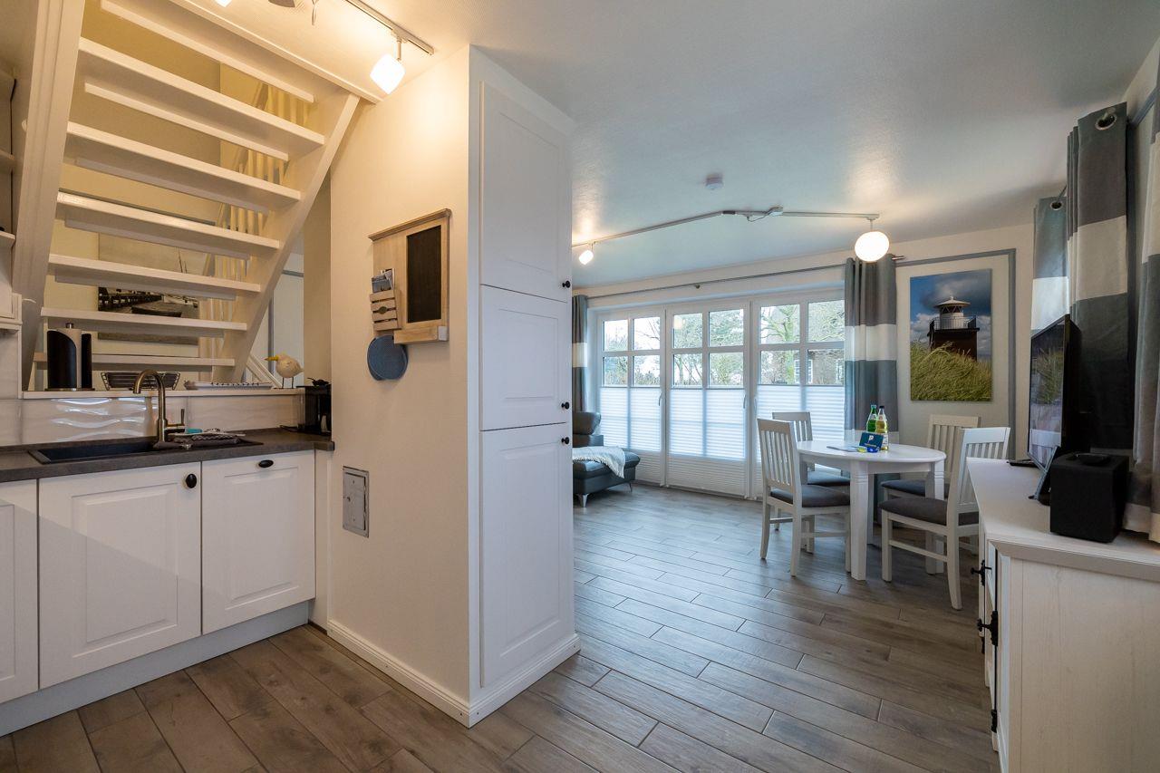 Diese freundliche, helle Ferienwohnung "Goting" unter Reet liegt idyllisch auf einem mit Heckenrosen eingewachsenen Grundstück. Die ruhige Lage und die Größe des Grundstücks geben bis zu 4 Personen von Beginn an das Gefühl von Urlaub. In der Ferienwohnung selbst stehen Ihnen im Erdgeschoss und in der 1. Etage insgesamt 62qm zur Verfügung. Sie ist modern eingerichtet und liegt strandnah. Der Kamin lädt ebenfalls zu lauschigen Stunden ein. Platz für Ihr Auto und Ihre Fahrräder ist vorhanden.