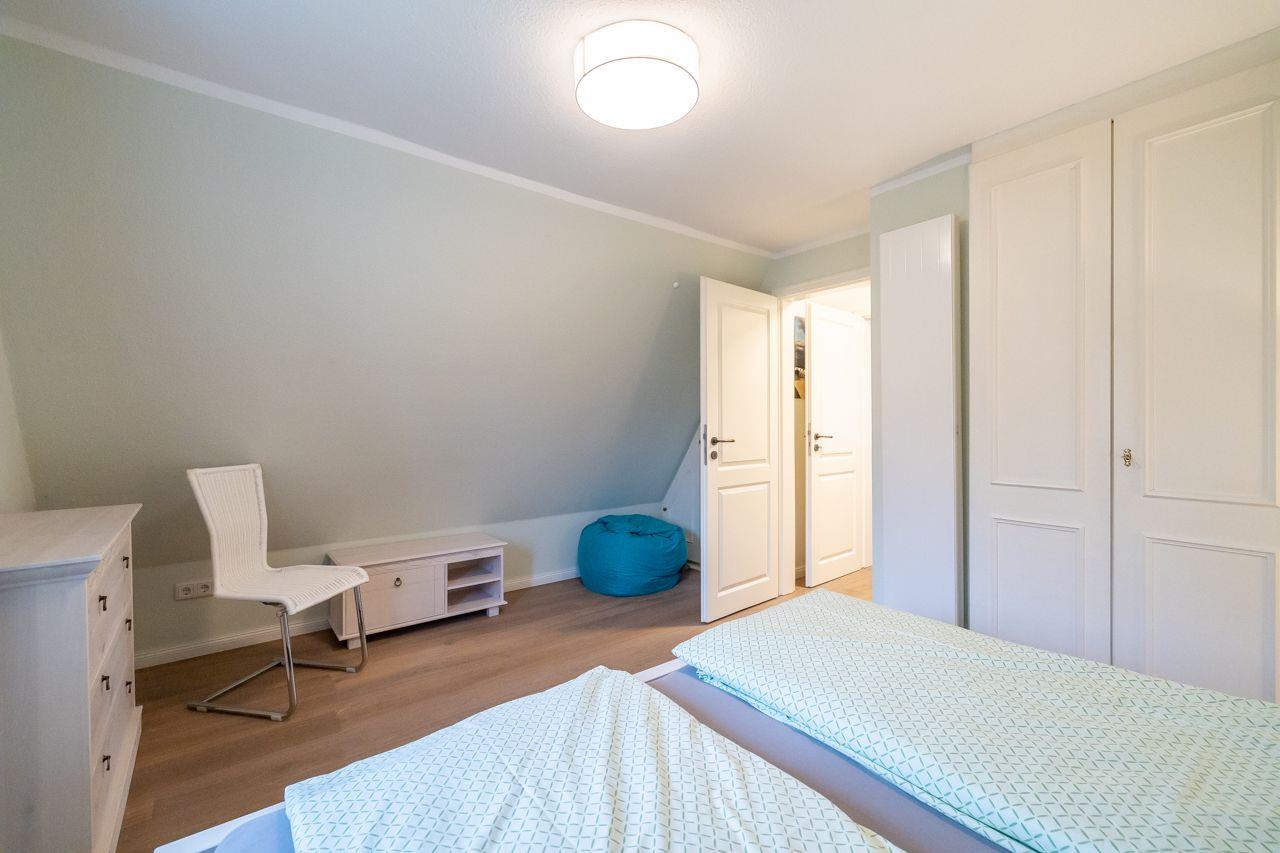 Nur 500 Meter vom Strand in Goting entfernt liegt dieses gemütliche und moderne Ferienobjekt. Das von uns angebotene Objekt ist die rechte Hausscheibe. Auf insgesamt 62qm steht Ihnen im Erdgeschoss des Hauses eine gut ausgestattete Küche, ein Essbereich, ein helles Wohnzimmer mit direktem Zugang zur Terrasse sowie das moderne Duschbad zur Verfügung. In der 1. Etage finden Sie ein Schlafzimmer mit Doppelbett (180*200) (es gibt zusätzlich Platz für ein Kinderreisebett) und ein Schlafzimmer mit 2 Einzelbetten (jeweils 90*200cm). Das Kinderzimmer wurde im Frühjahr 2023 renoviert und hat neue Möbel erhalten. Im Keller des Hauses befindet sich eine gemeinschaftliche Waschmaschine und Trockner (beides gegen Gebühr). Die Lage des Hauses ermöglicht Ihnen einen erholsamen Urlaub verbunden mit der direkten Nähe zur Nordsee.