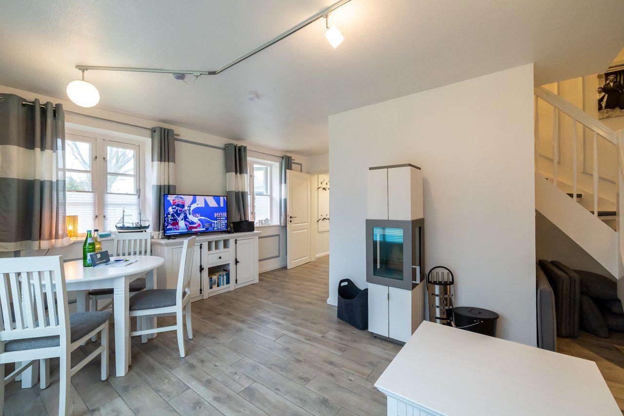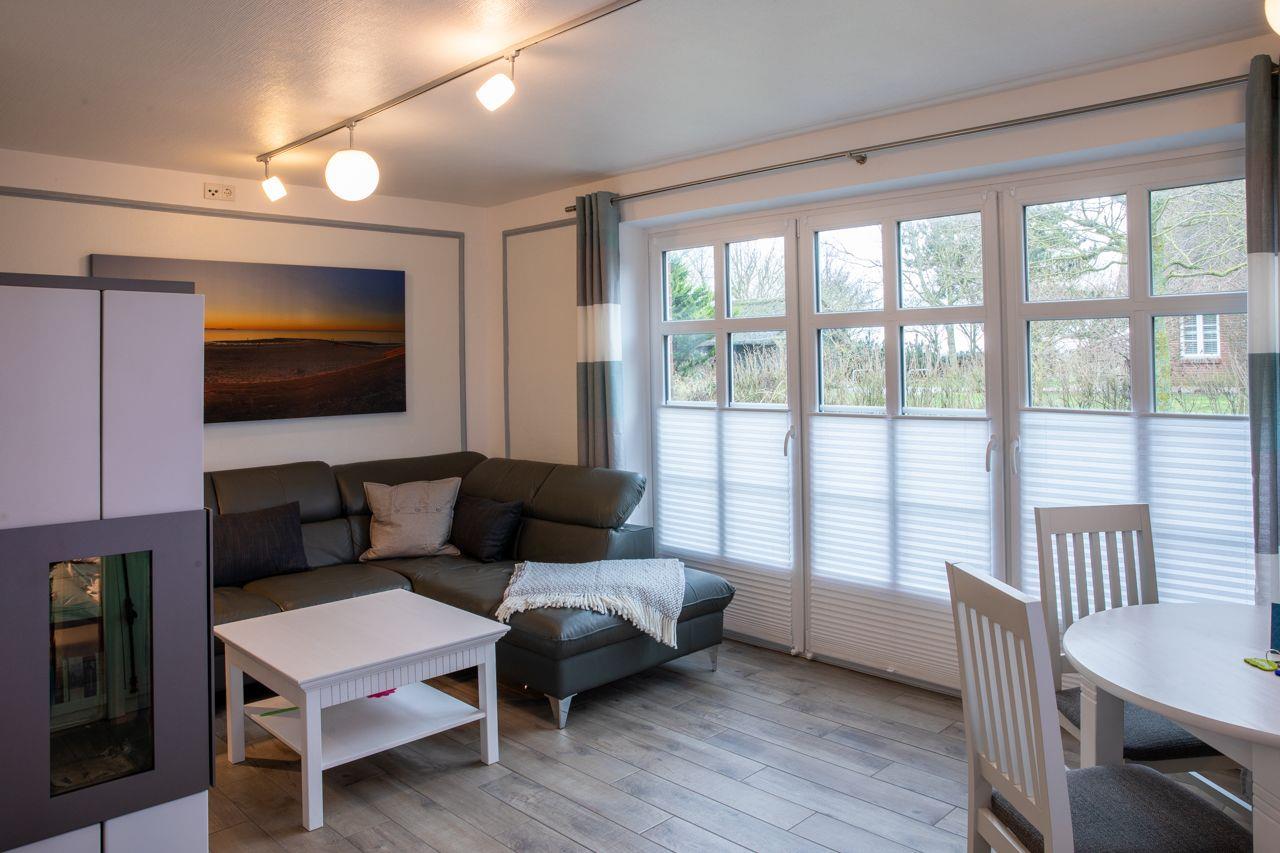 Moderne Ferienwohnung "Goting" unter Reet in Nieblum, nur 500 m vom Strand entfernt, ideal für einen erholsamen Urlaub mit Kamin und Terrasse.