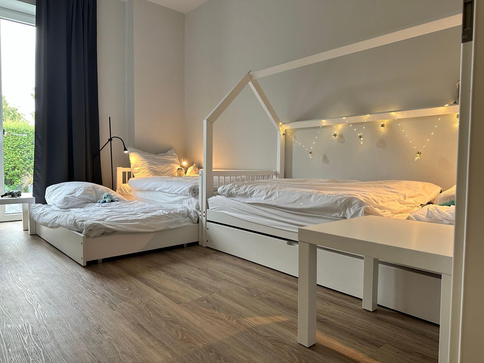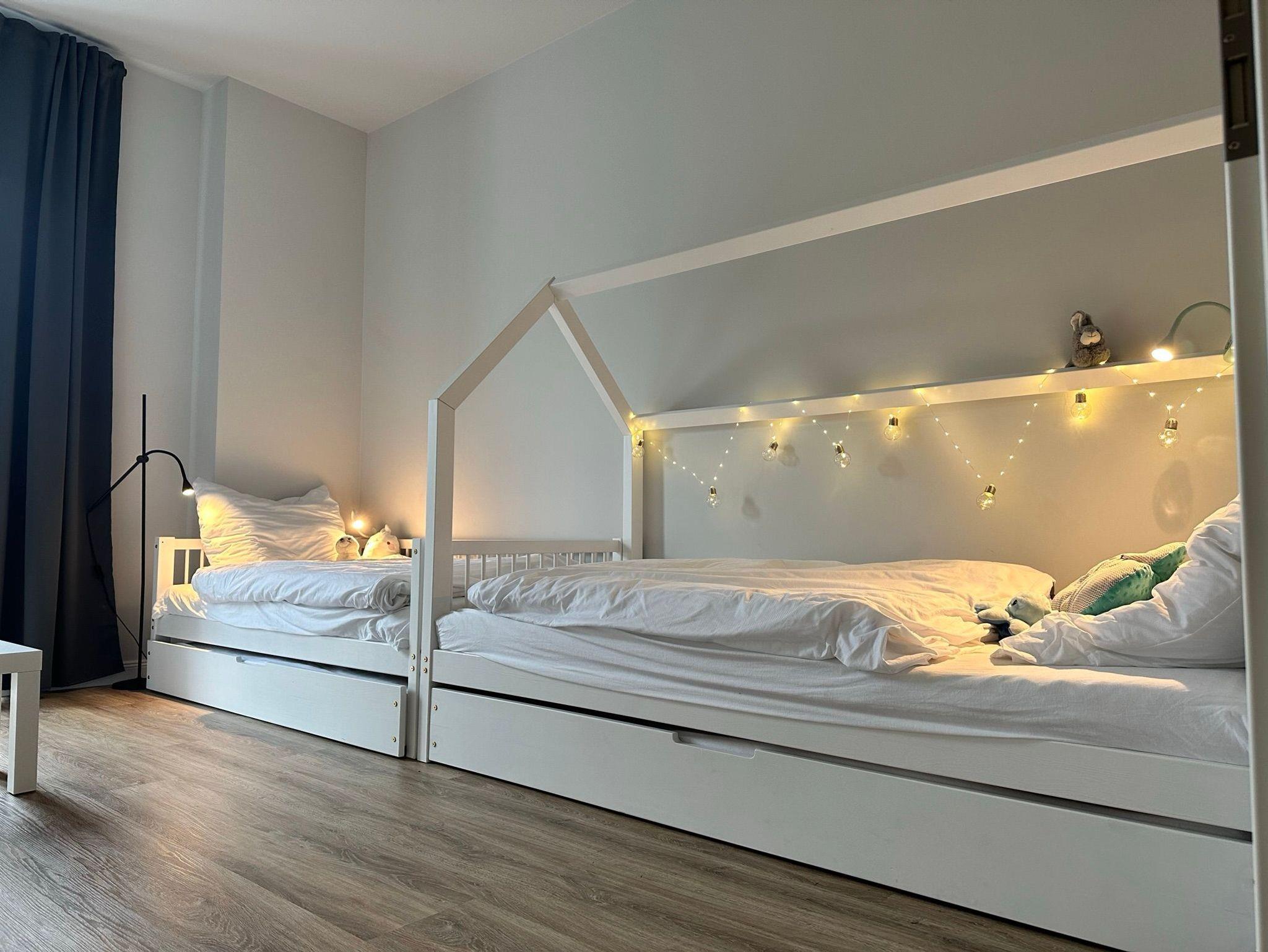 - 2 ausziehbare Betten im zweiten Schlafzimmer (Bett 1: Obere Matratze 200 x 90, untere Matratze (ausziehbar) 190 x 90, Bett 2: Obere Matratze = 175 x 90, untere Matratze (ausziehbar) 170 x 90)
