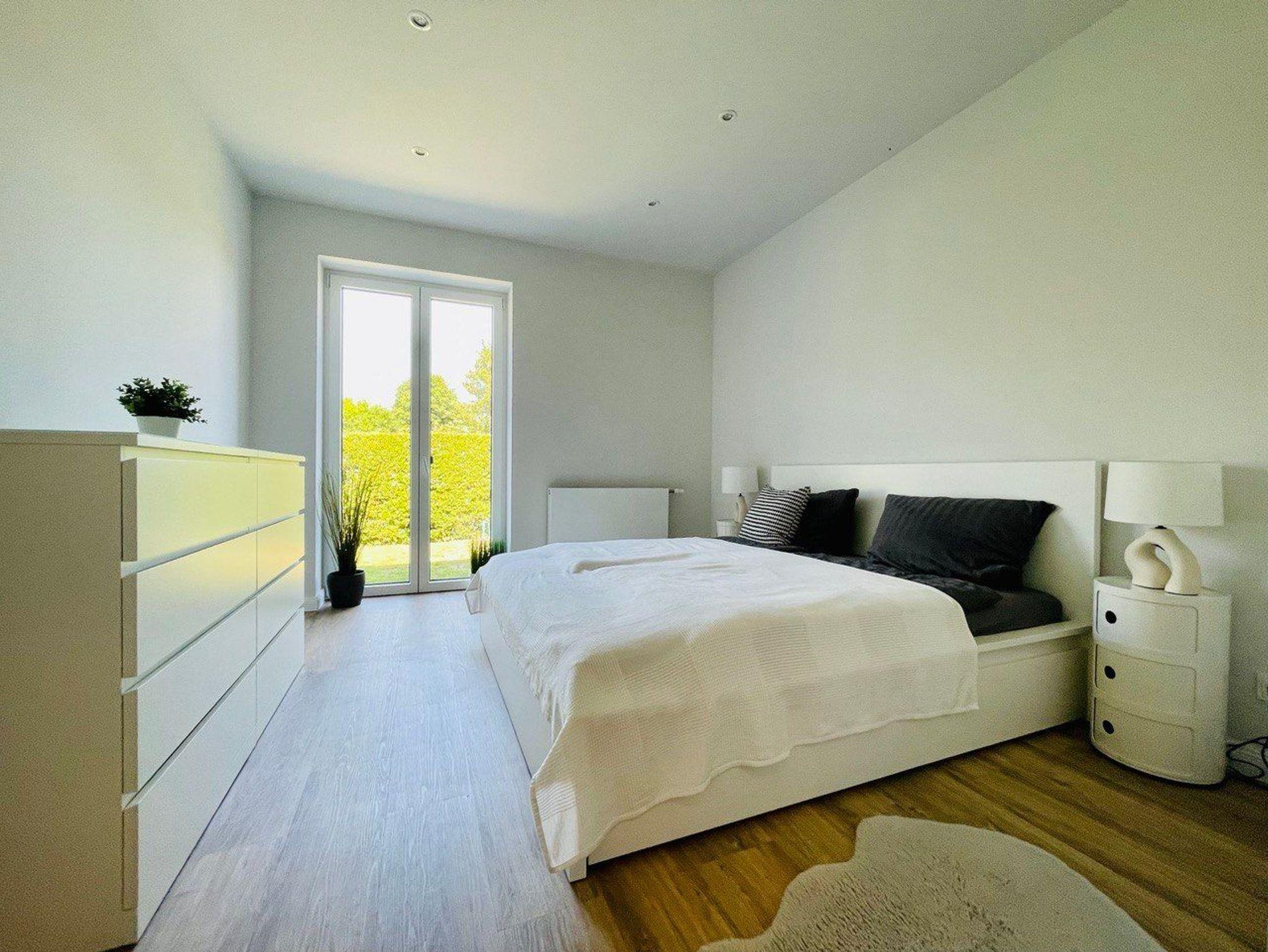 Die chic möblierte Wohnung ist in einem sehr modernen, cleanen Wohndesign gestaltet. Die zwei separaten Schlafzimmer (Doppelbett im Master-Schlafzimmer, zwei ausziehbare Betten mit den im Gäste- bzw. Kinderzimmer) bieten bis zu 6 Schlafplätze.