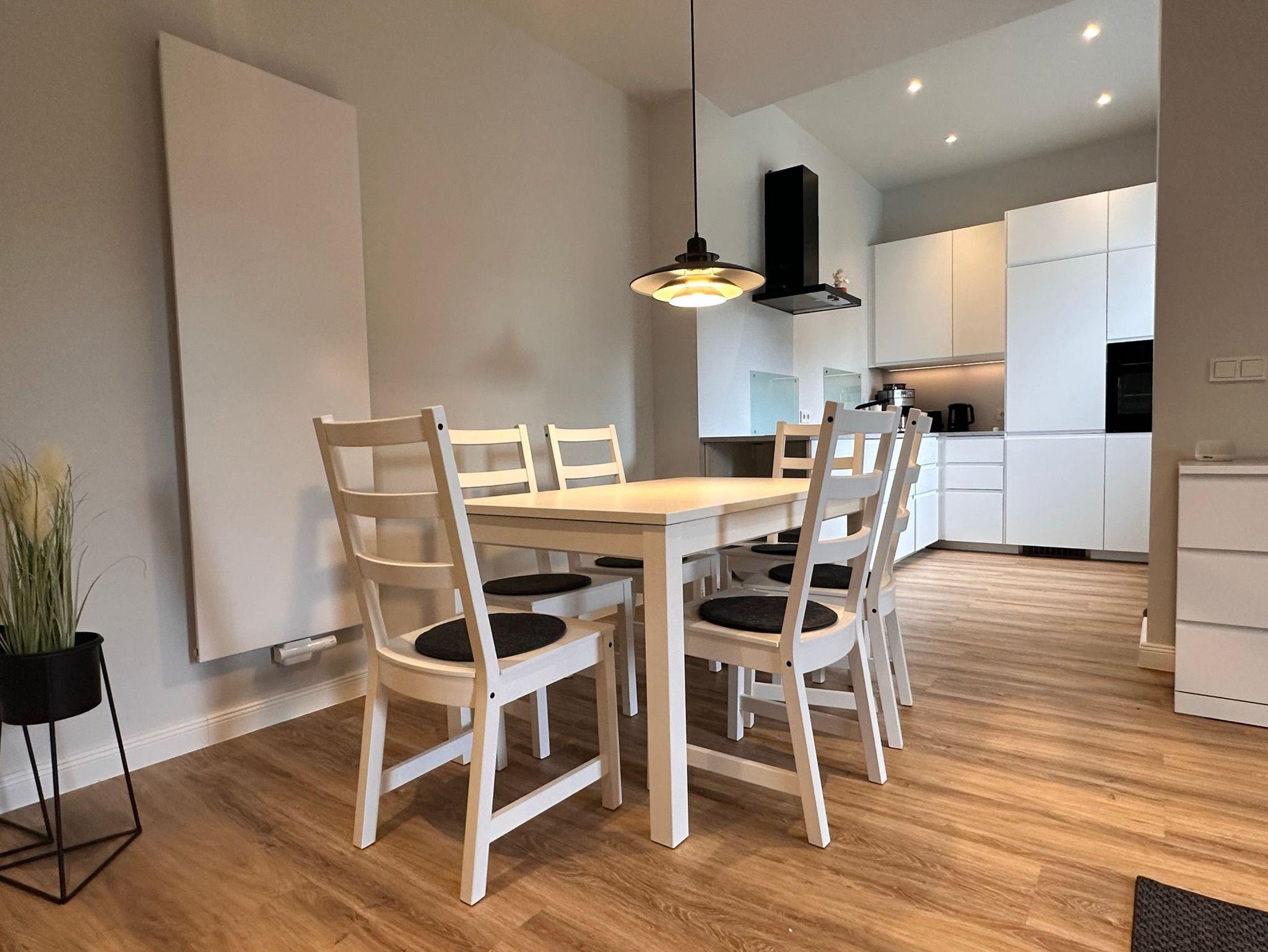 Modernes Apartment Matthias Claudius in historischem Landhaus in Norddeich, mit Terrasse und hochwertiger Ausstattung.