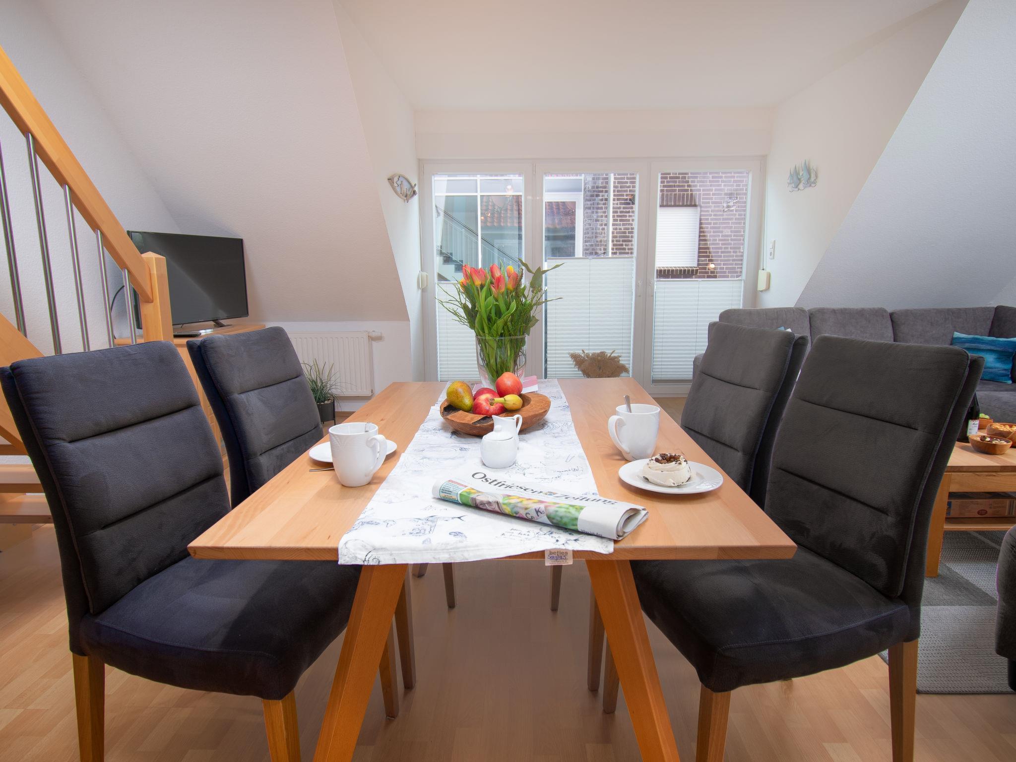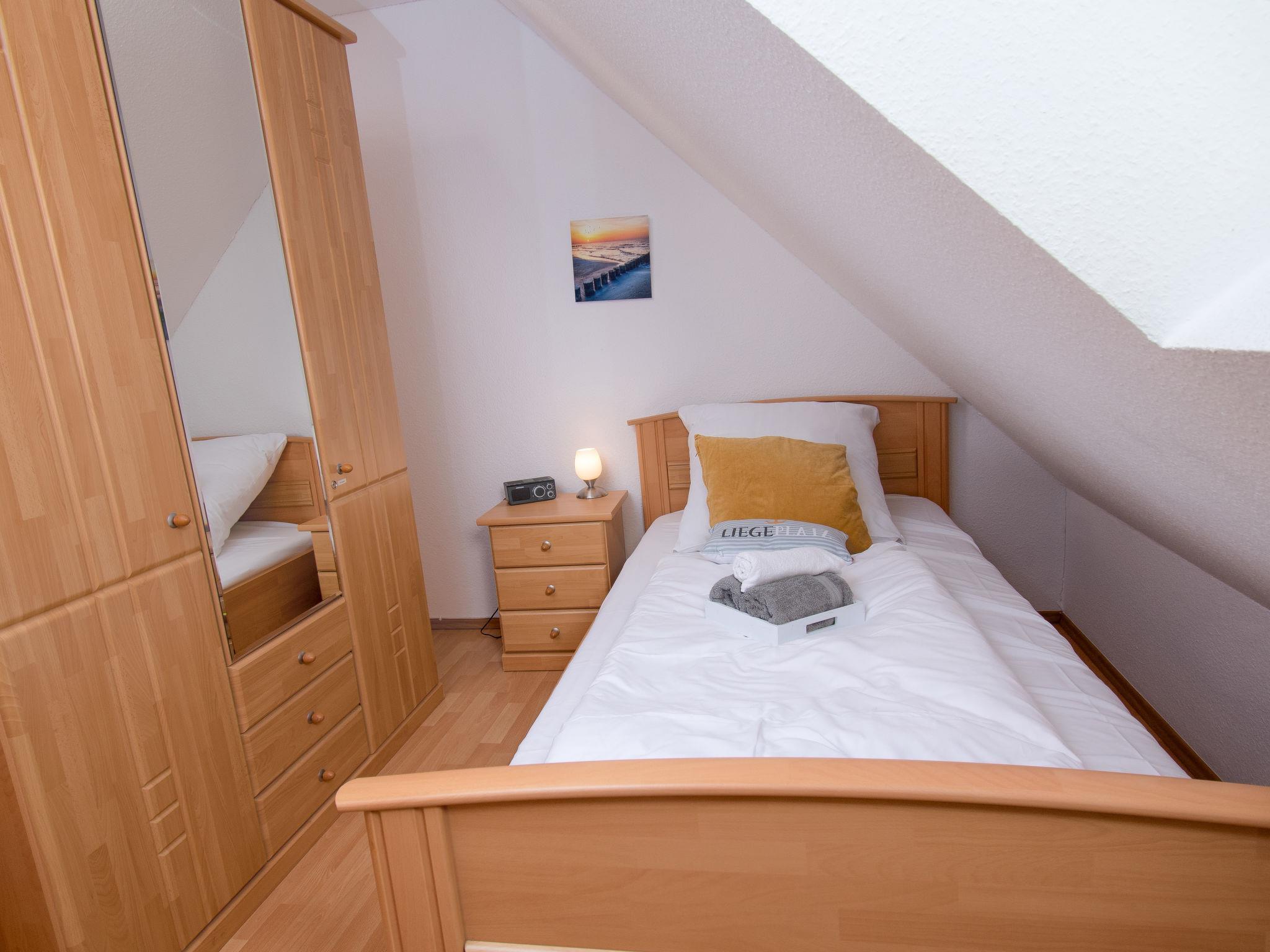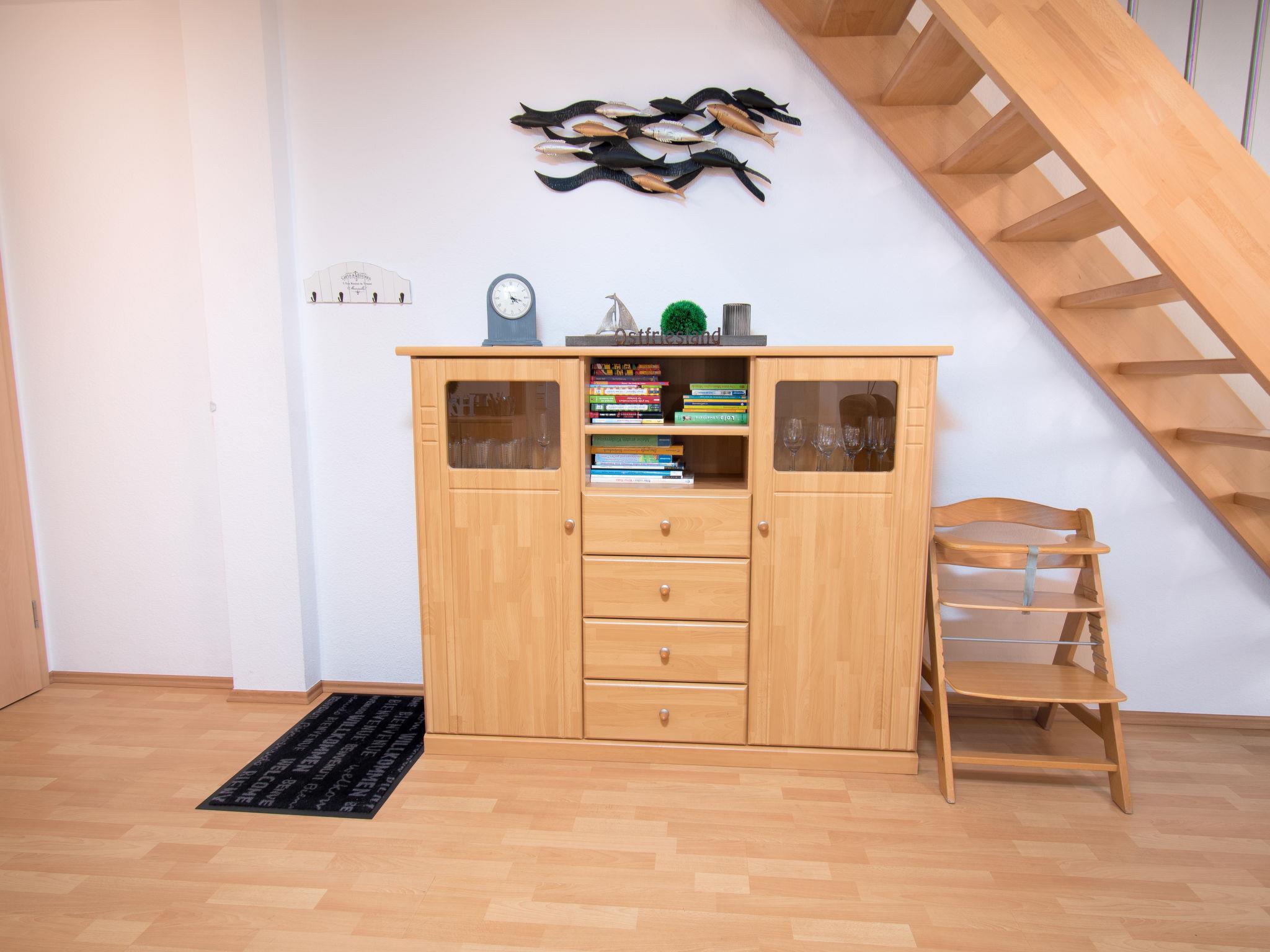 "Seegras", 4-Zimmer-Wohnung 74 m2 auf 2 Stockwerken im 1. Stock. Geräumig, teilweise abgeschrägt, komfortabel und modern eingerichtet: Wohn-/Esszimmer 32 m2 mit Sat-TV (Flachbildschirm), Radio, DVD und DVD Sammlung vorhanden. Ausgang zum Balkon. 1 Zimmer 10 m2 mit 1 Doppelbett (2 x 90 cm, Länge 200 cm). Kochnische (Backofen, Geschirrspüler, 4 Glaskeramikplatten, Toaster, Wasserkocher, Mikrowelle, Tiefkühler, elektrische Kaffeemaschine, Kapseln für die Kaffeemaschine (Senseo) extra). Dusche/WC. Fussbodenheizung. Dachgeschoss: 1 Zimmer 6 m2 mit 1 Bett und Sat-TV (Flachbildschirm). 1 Zimmer 6 m2 mit 1 Bett. Sep. WC. Balkonmöbel. Zur Verfügung: Waschmaschine, Bügeleisen, Kinderhochstuhl, Haartrockner. Internet (Wireless LAN, gratis). Bitte beachten: Nichtraucher-Unterkunft. Rauchmelder. Steckdosen für E-Bikes im Gartenschuppen vorhanden. Es handelt sich bei dem Fernseher um einen SMART-TV.