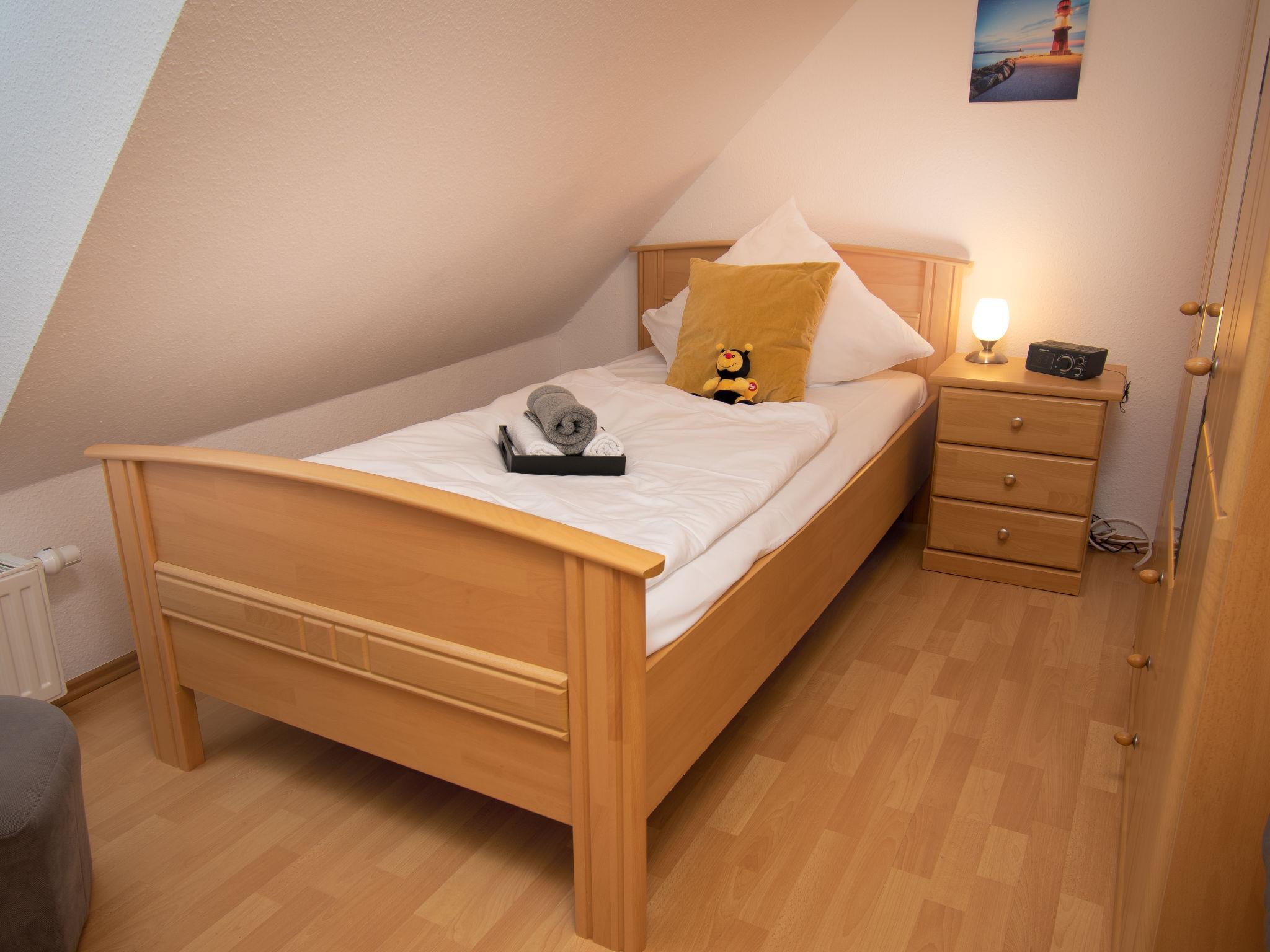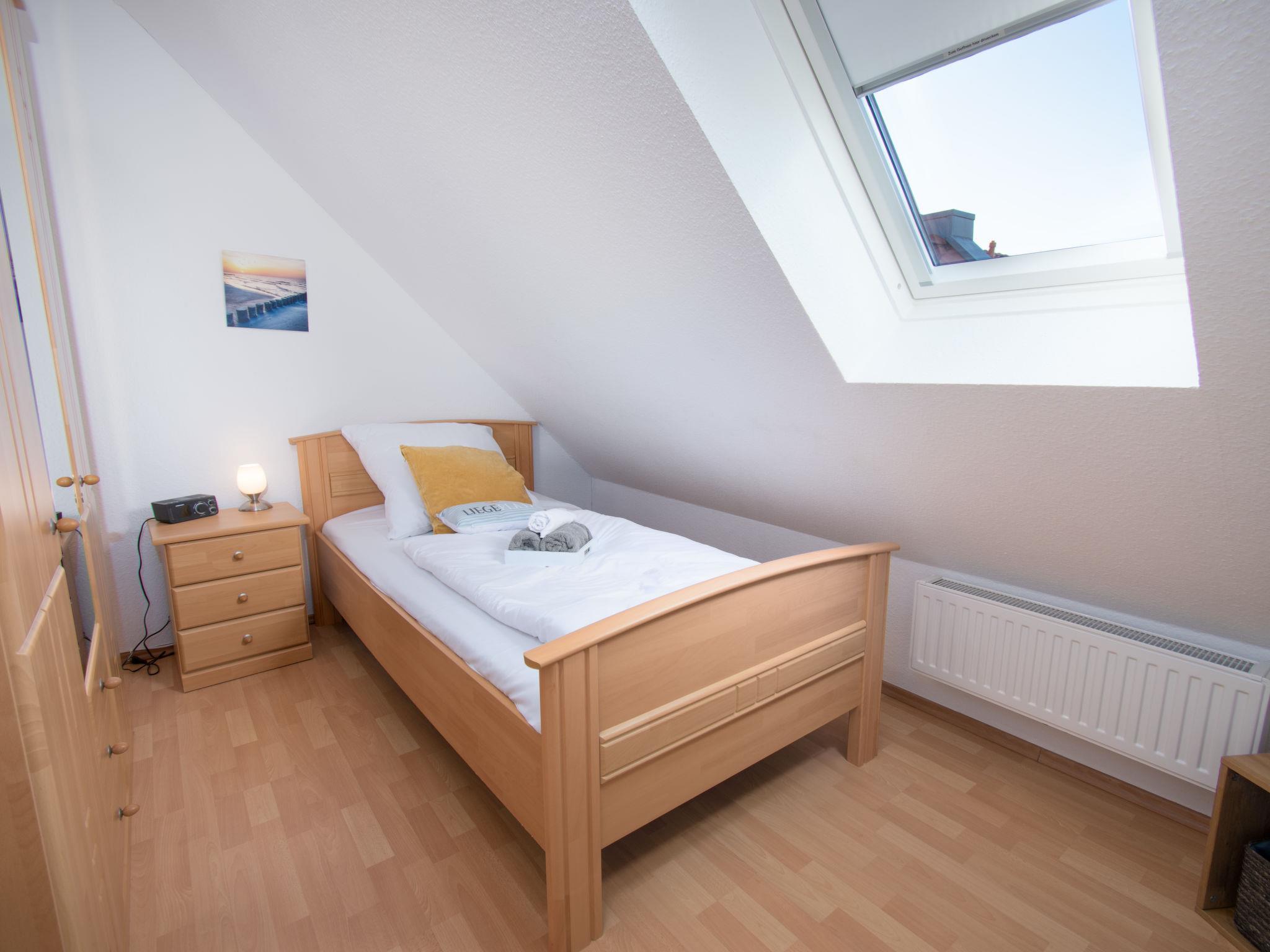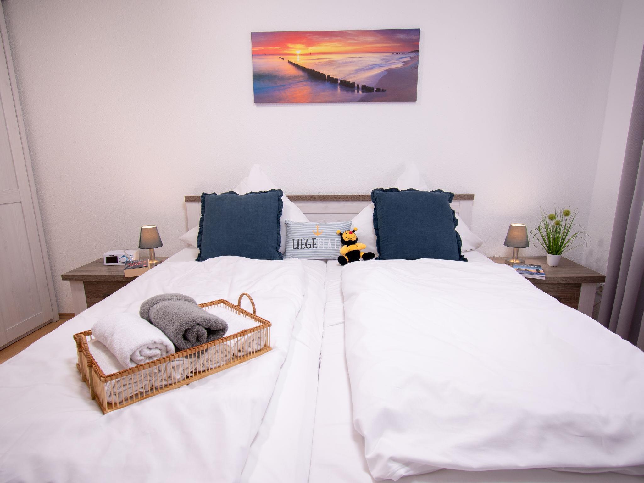 "Seegras", 4-Zimmer-Wohnung 74 m2 auf 2 Stockwerken im 1. Stock. Geräumig, teilweise abgeschrägt, komfortabel und modern eingerichtet: Wohn-/Esszimmer 32 m2 mit Sat-TV (Flachbildschirm), Radio, DVD und DVD Sammlung vorhanden. Ausgang zum Balkon. 1 Zimmer 10 m2 mit 1 Doppelbett (2 x 90 cm, Länge 200 cm). Kochnische (Backofen, Geschirrspüler, 4 Glaskeramikplatten, Toaster, Wasserkocher, Mikrowelle, Tiefkühler, elektrische Kaffeemaschine, Kapseln für die Kaffeemaschine (Senseo) extra). Dusche/WC. Fussbodenheizung. Dachgeschoss: 1 Zimmer 6 m2 mit 1 Bett und Sat-TV (Flachbildschirm). 1 Zimmer 6 m2 mit 1 Bett. Sep. WC. Balkonmöbel. Zur Verfügung: Waschmaschine, Bügeleisen, Kinderhochstuhl, Haartrockner. Internet (Wireless LAN, gratis). Bitte beachten: Nichtraucher-Unterkunft. Rauchmelder. Steckdosen für E-Bikes im Gartenschuppen vorhanden. Es handelt sich bei dem Fernseher um einen SMART-TV.