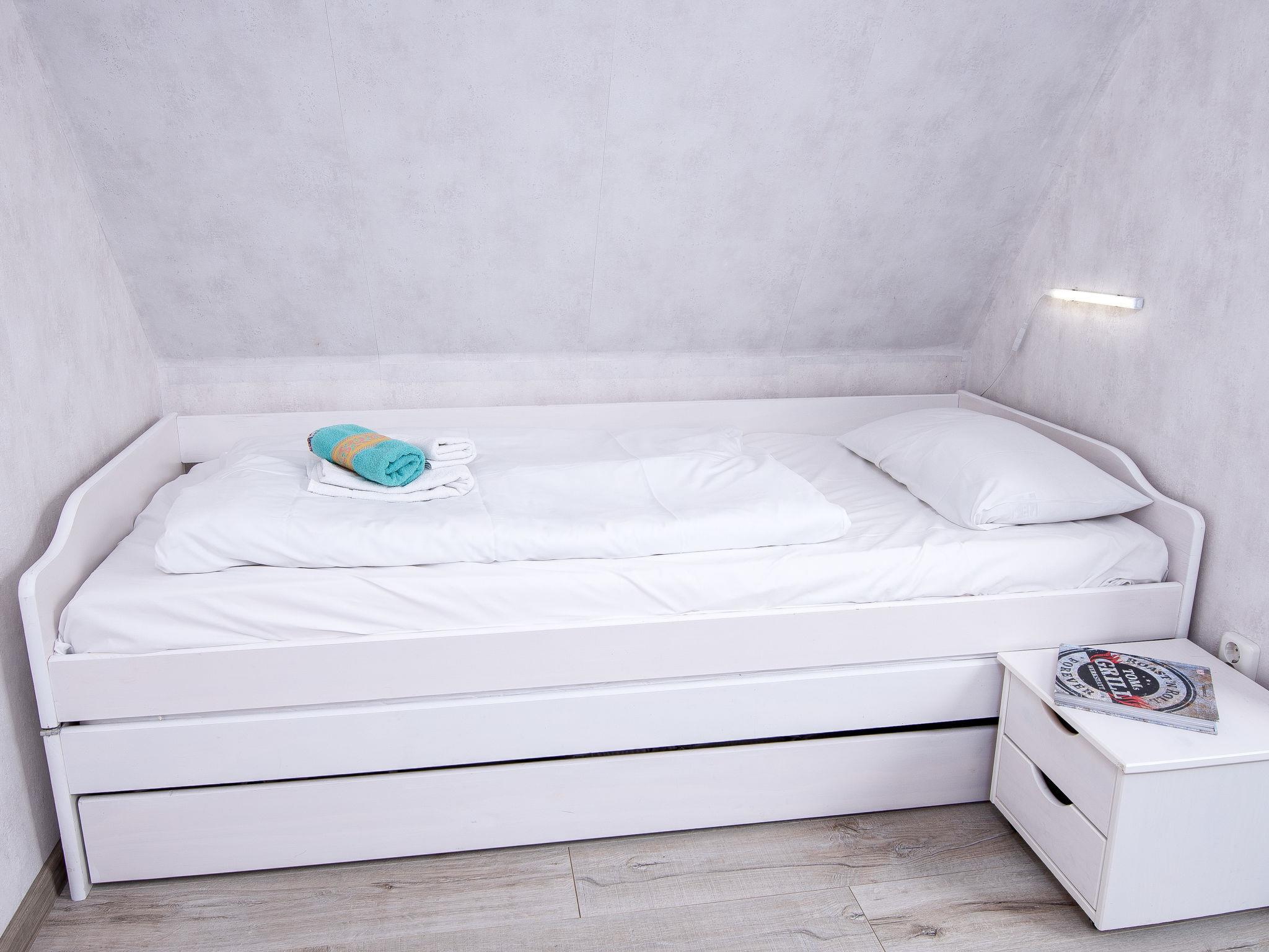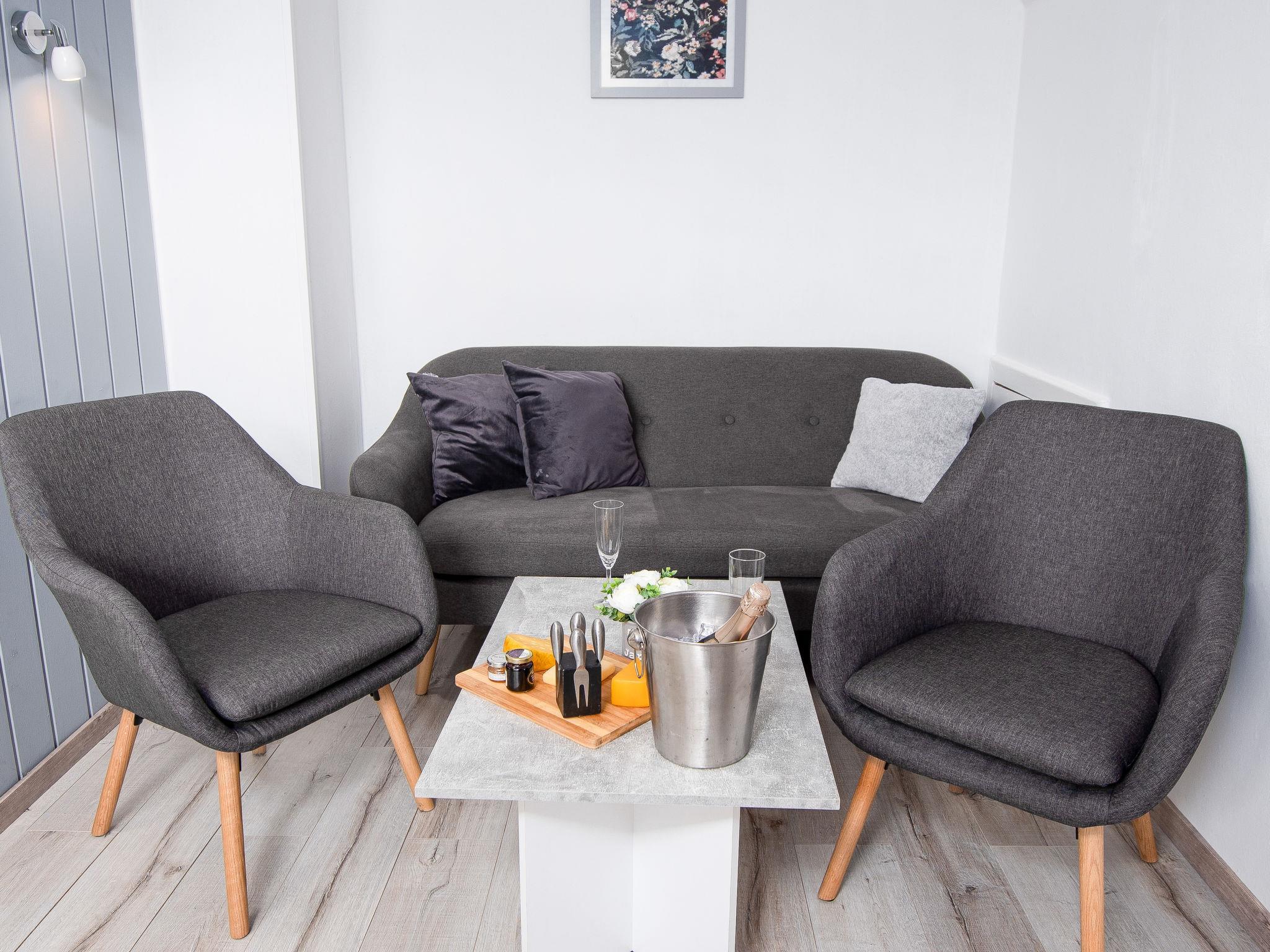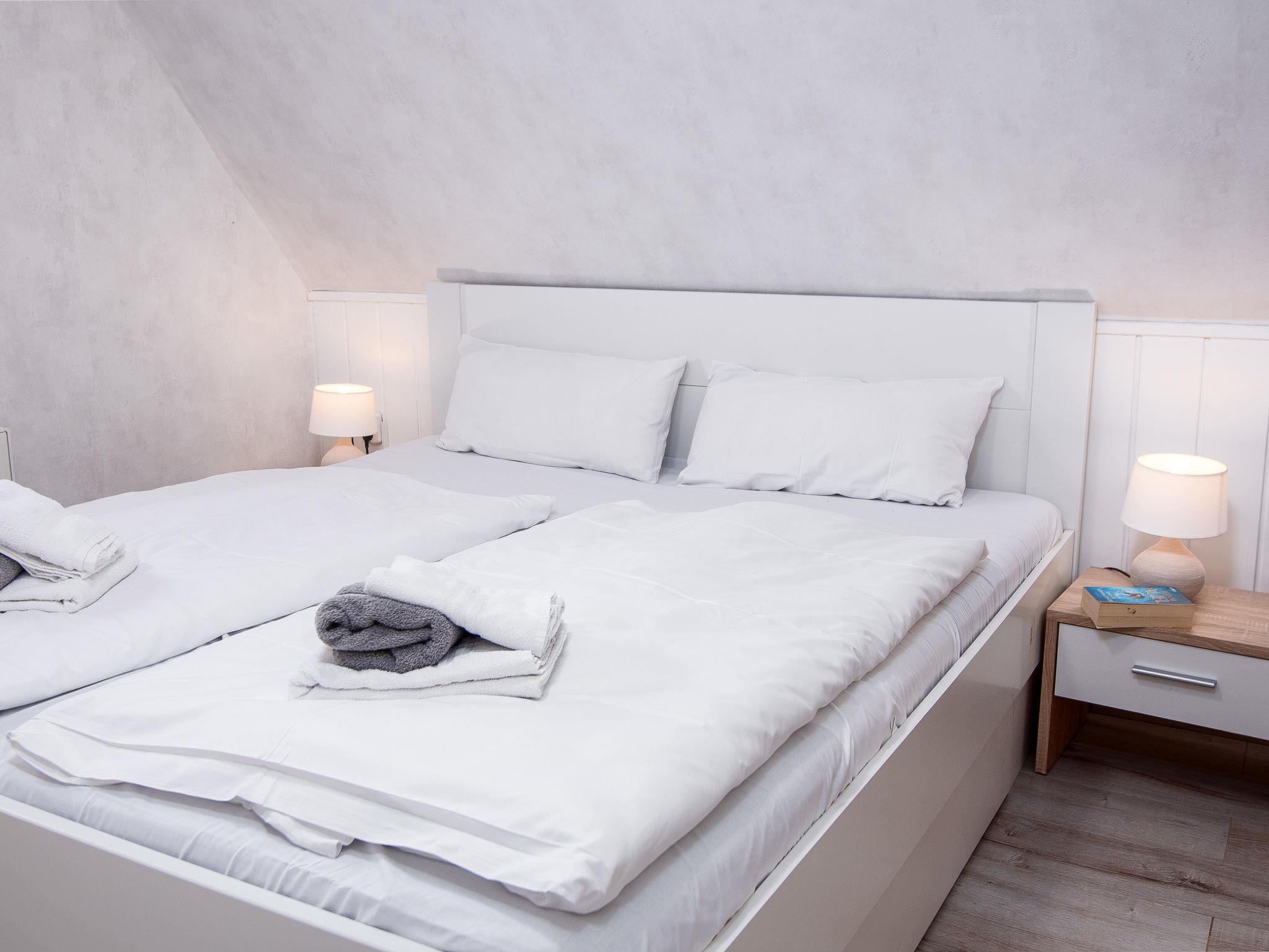 3-Zimmer-Wohnung 45 m2, im Dachgeschoss. Gemütlich eingerichtet: Wohn-/Esszimmer mit Esstisch und Sat-TV (Flachbildschirm). 1 Zimmer mit 1 Doppelbett. 1 Zimmer mit 1 Bett. Ausgang zum Balkon. Kochnische (2 Glaskeramikplatten, Toaster, Wasserkocher, Mikrowelle, elektrische Kaffeemaschine, Kapseln für die Kaffeemaschine (Senseo) extra). Dusche/WC. Grosser Balkon. Balkonmöbel. Zur Verfügung: Kinderhochstuhl, Babybett bis 2 Jahre (extra). Internet (Wireless LAN, gratis). Bitte beachten: Rauchmelder.