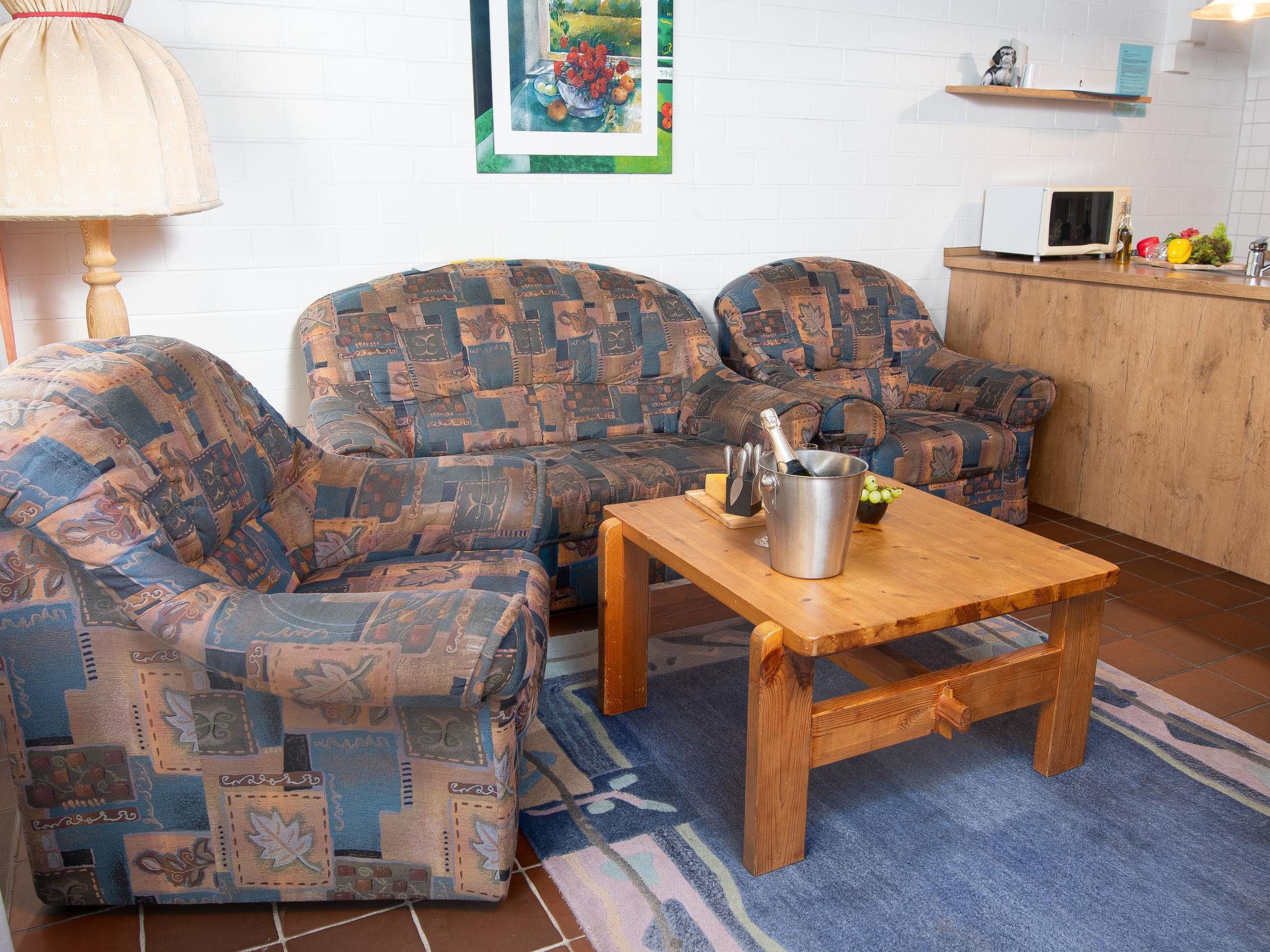3-Zimmer-Reihenhaus 75 m2 auf 2 Stockwerken, im Erdgeschoss. Gemütlich eingerichtet: Wohn-/Esszimmer 21 m2 mit Sat-TV, Video, Stereoanlage und DVD. Kochnische (Backofen, Geschirrspüler, 4 Glaskeramikplatten, Toaster, Wasserkocher, Mikrowelle, elektrische Kaffeemaschine). Dusche/WC. Obergeschoss: 1 abgeschrägtes Zimmer 9 m2 mit 1 Doppelbett (2 x 90 cm, Länge 200 cm). 1 abgeschrägtes Zimmer 7 m2 mit 2 Betten (90 cm, Länge 200 cm). Sep. WC. Terrasse. Terrassenmöbel. Zur Verfügung: Kinderhochstuhl (extra). Bitte beachten: Nichtraucher-Haus.
