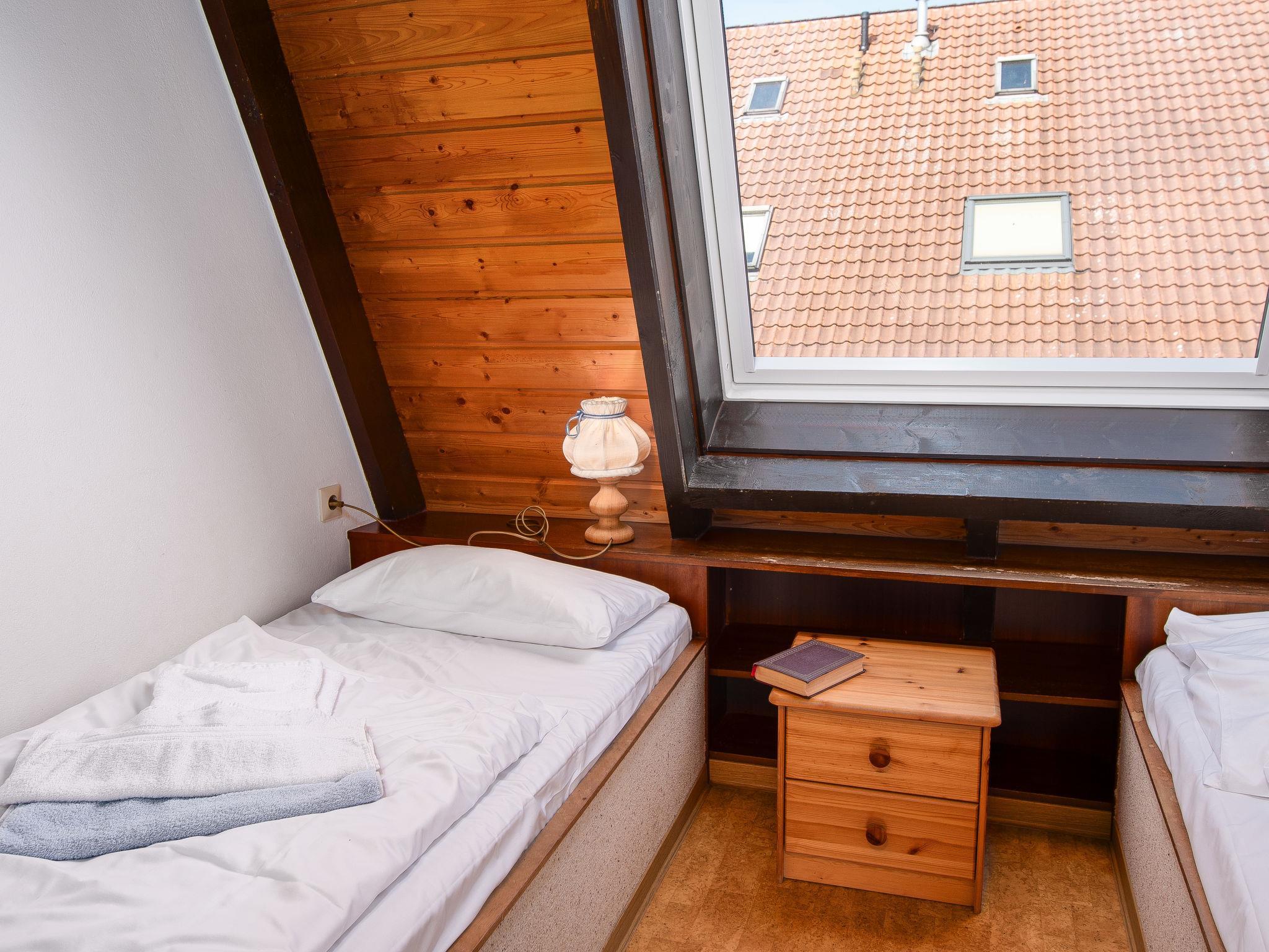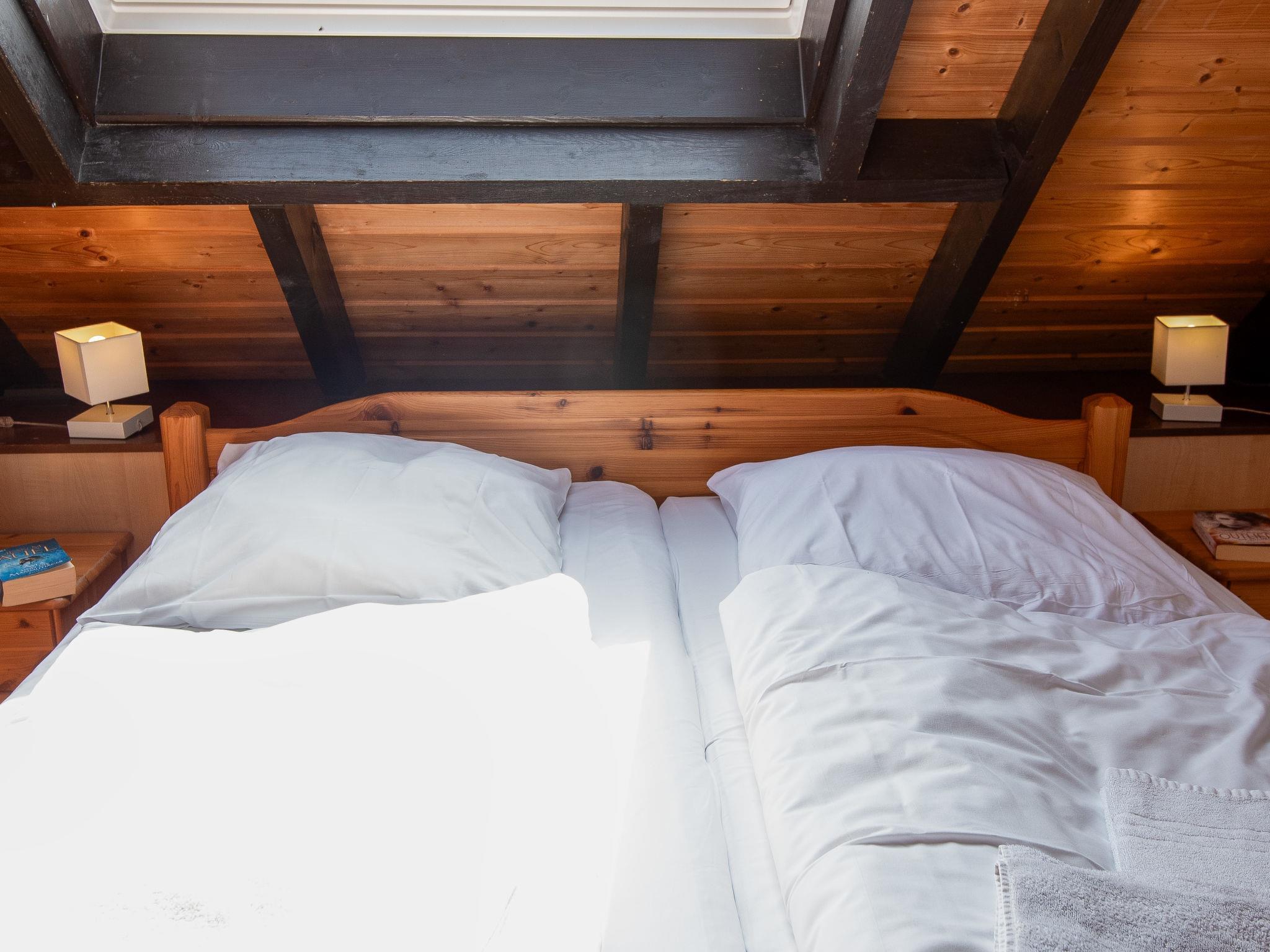 3-Zimmer-Reihenhaus 70 m2 auf 2 Stockwerken, im Erdgeschoss. Wohn-/Esszimmer 18 m2 mit Sat-TV, Radio und CD. Kochnische (Backofen, Geschirrspüler, 4 Glaskeramikplatten, Toaster, Wasserkocher, Mikrowelle, elektrische Kaffeemaschine). Dusche/WC. Obergeschoss: 1 abgeschrägtes Zimmer 9 m2 mit 1 Doppelbett (2 x 95 cm, Länge 200 cm). 1 abgeschrägtes Zimmer 6 m2 mit 2 Betten (90 cm, Länge 200 cm). Sep. WC. Terrasse. Terrassenmöbel. Zur Verfügung: Kinderhochstuhl. Parkplatz. Bitte beachten: Nichtraucher-Haus. Maximal 1 Haustier/Hund erlaubt. Katzen als Haustiere sind nicht erlaubt.