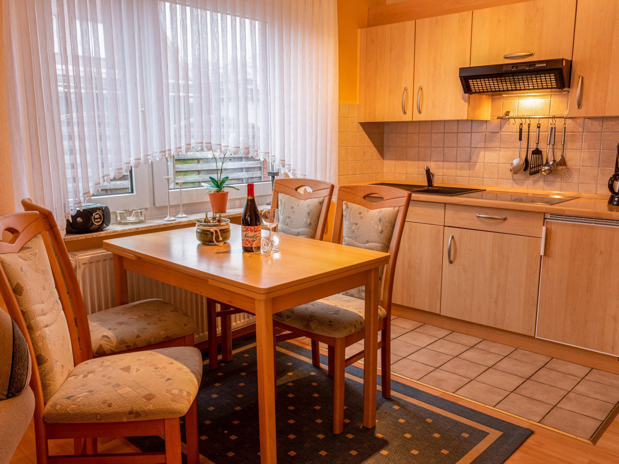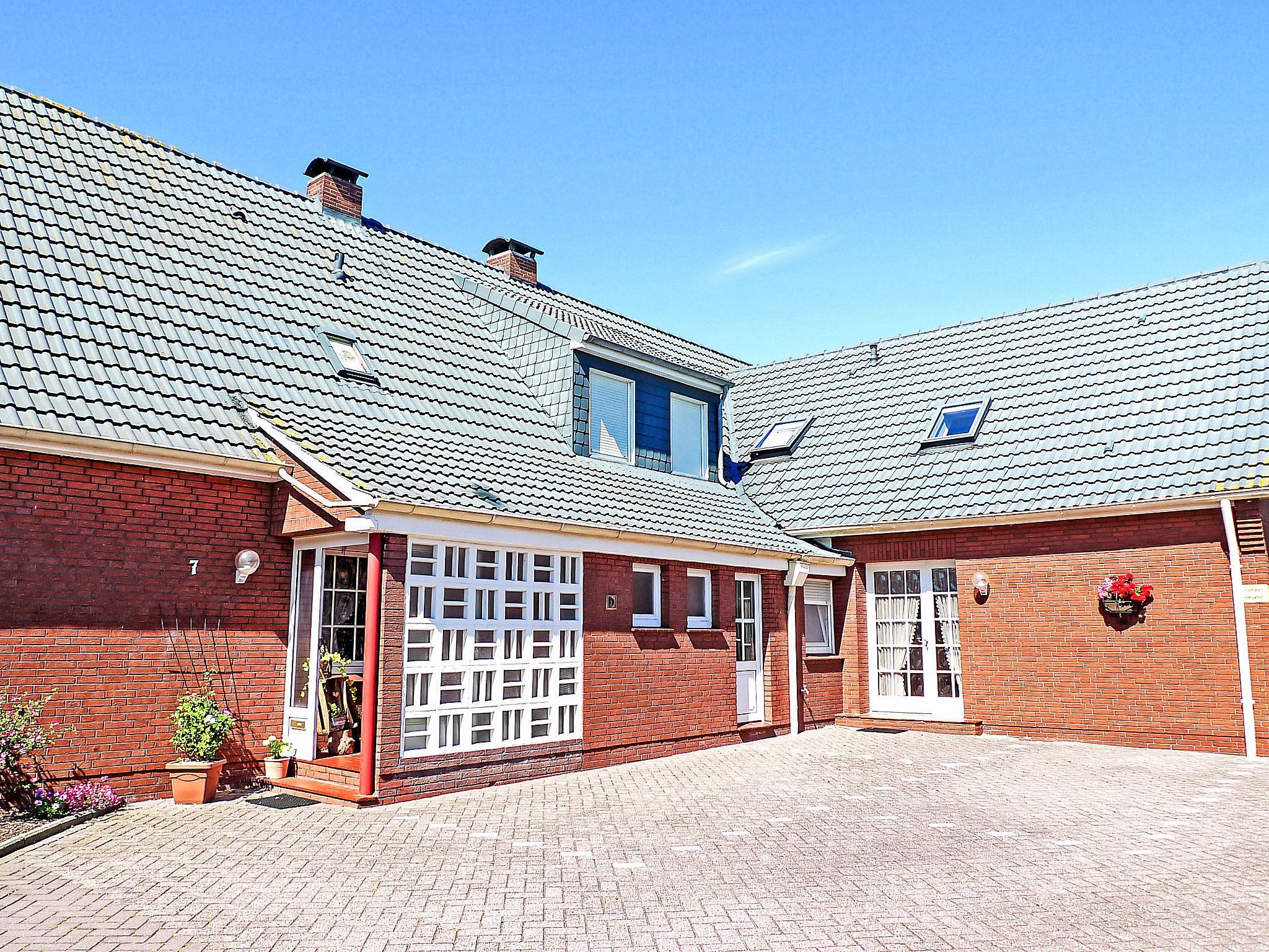 Mehrfamilienhaus "Am Nordkap". Im Ort, 900 m vom Meer, 900 m vom Strand, in einer Sackgasse. Zur Mitbenutzung: Garten. Im Hause: Zentralheizung, Waschmaschine (extra), Wäschetrockner (zur Mitbenutzung, extra). Parkplatz beim Haus. Supermarkt 450 m, Restaurant 25 m, Bäckerei 400 m, Bushaltestelle 200 m, Bahnstation "Norddeich" 2.1 km, Fähre 2.1 km, Sandstrand 900 m, Freibad 14 km, Hallenbad. Golfplatz (18 Loch) 8 km, Surfschule 1 km, Tennis 2.4 km.
