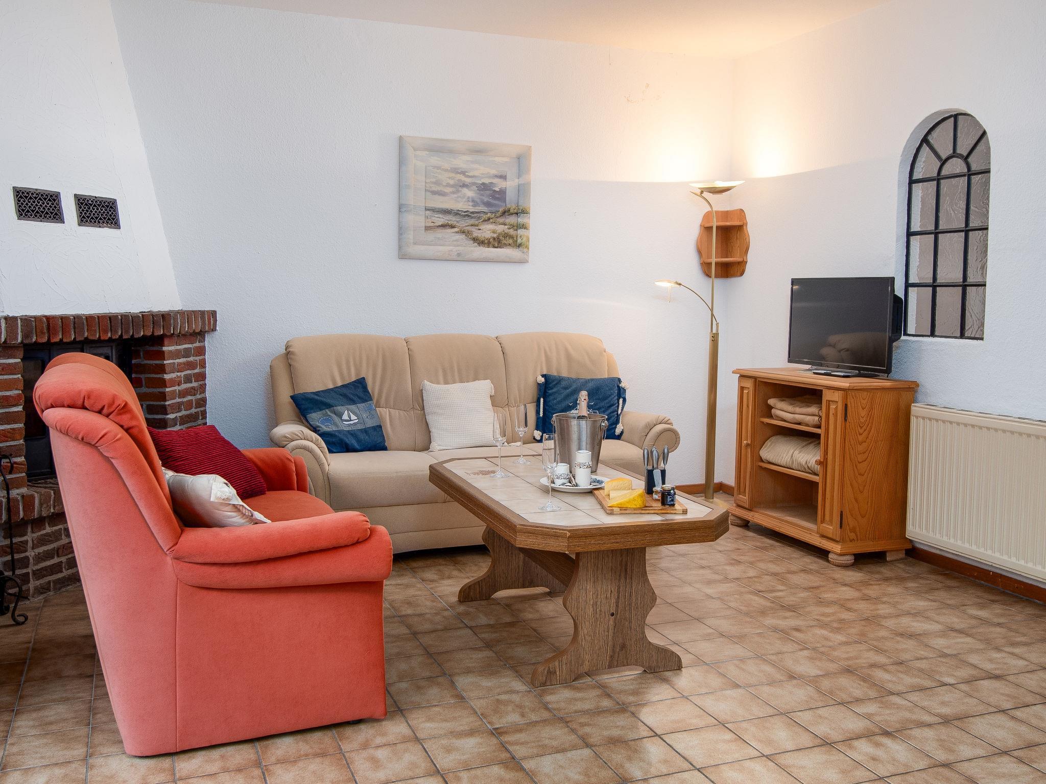 "Seepferdchen", 3-Zimmer-Wohnung 55 m2, im Erdgeschoss. Einfach eingerichtet: Wohn-/Esszimmer mit offenem Kamin (nur Deko), Kabel-TV (Flachbildschirm). Ausgang zur Terrasse. 1 Zimmer mit 2 Betten. 1 Zimmer mit 1 Bett (140 cm, Länge 200 cm). Kleine Küche (4 Kochplatten, Toaster, Wasserkocher, elektrische Kaffeemaschine, Kombinationsmikrowelle). Dusche/WC. Terrasse. Terrassenmöbel. Zur Verfügung: Babybett bis 2 Jahre (extra). Bitte beachten: Maximal 1 Haustier/Hund erlaubt. Rauchmelder.