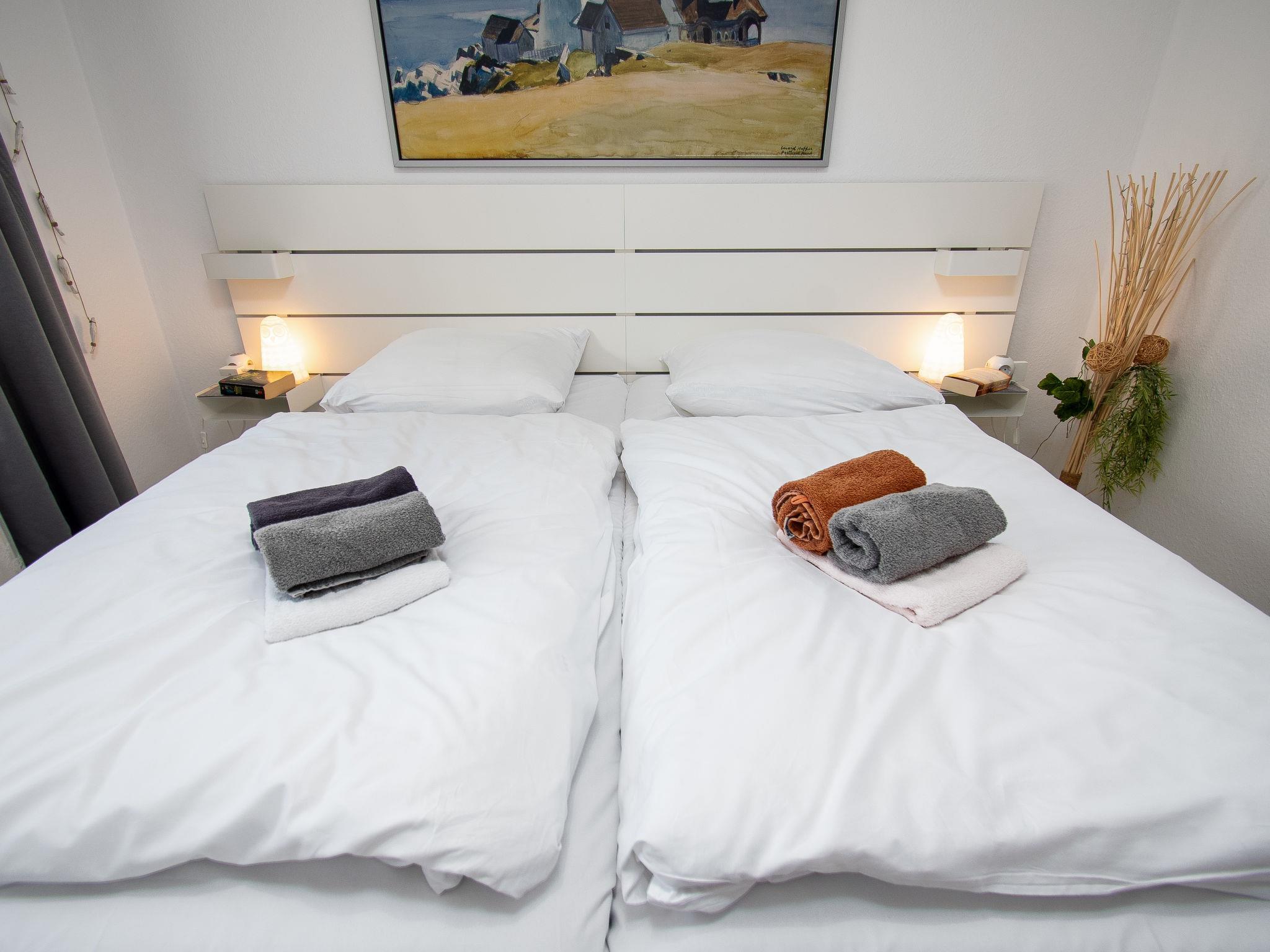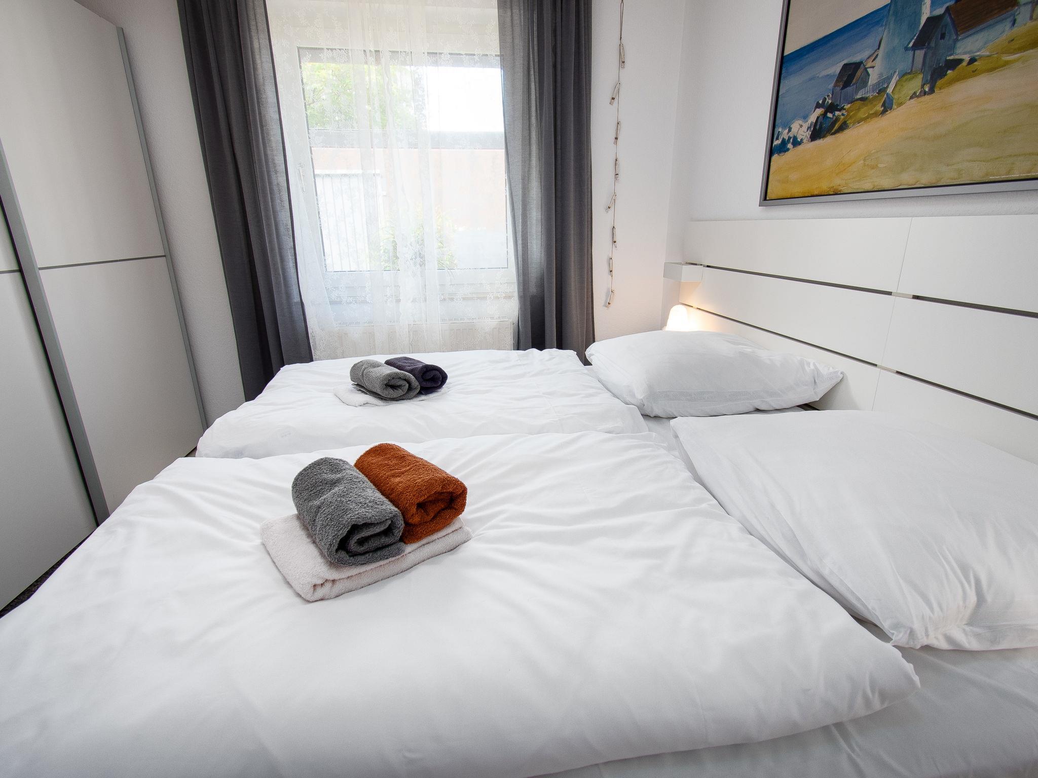 2-Zimmer-Wohnung 45 m2, im Erdgeschoss. Objekt geeignet für 2 Erwachsene. Teilweise renoviert im Jahre 2022, modern und geschmackvoll eingerichtet: Wohn-/Esszimmer 20 m2 mit Kabel-TV (Flachbildschirm), Radio und Stereoanlage. Ausgang zur Terrasse. 1 Zimmer 10 m2 mit 1 Doppelbett (2 x 90 cm, Länge 200 cm). Kochnische (Geschirrspüler, 2 Glaskeramikplatten, Toaster, Wasserkocher, Mikrowelle, elektrische Kaffeemaschine). Dusche/WC. Terrasse, kleiner Garten. Terrassenmöbel, Liegestühle (2). Zur Verfügung: Haartrockner. Internet (Wireless LAN, gratis). Bitte beachten: für Kleinkinder nicht geeignet. Nichtraucher-Unterkunft. Rauchmelder.