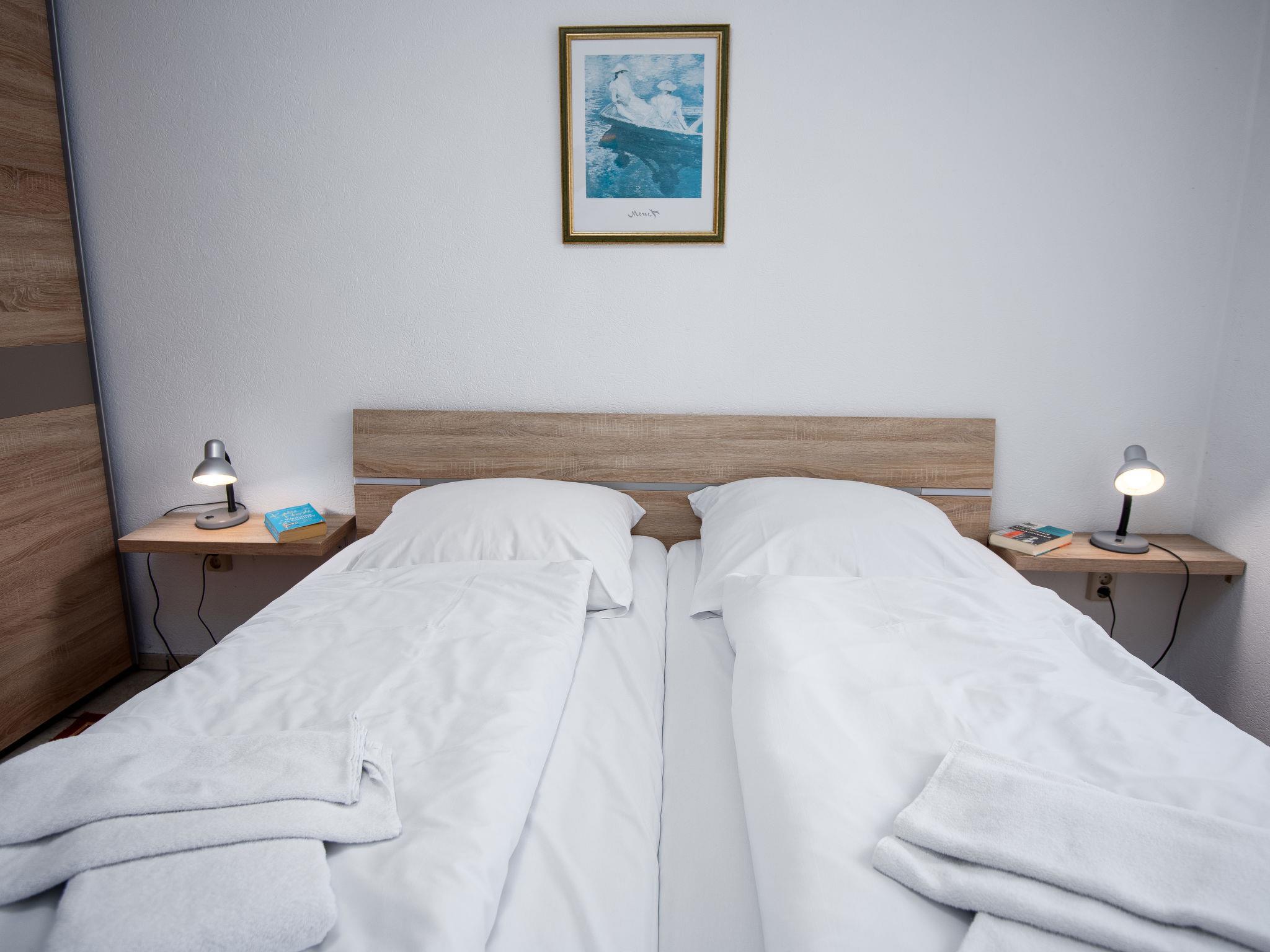 3-Zimmer-Reihenhaus 75 m2, im Erdgeschoss. Gemütlich eingerichtet: Wohn-/Esszimmer 27 m2 mit Sat-TV (Flachbildschirm), Radio und CD. 1 Zimmer 8 m2 mit 1 Doppelbett (2 x 90 cm, Länge 180 cm). 1 Zimmer 6 m2 mit 2 Betten (90 cm, Länge 200 cm). Küche (Backofen, Toaster, Wasserkocher, Mikrowelle, elektrische Kaffeemaschine). Dusche/WC. Terrasse 30 m2. Terrassenmöbel. Zur Verfügung: Waschmaschine, Kinderhochstuhl (extra), Haartrockner. Internet (Wireless LAN, gratis). Bitte beachten: Nichtraucher-Haus. Rauchmelder. Der Kleiderschrank für das Zweibettzimmer steht im Flur. DE1A248