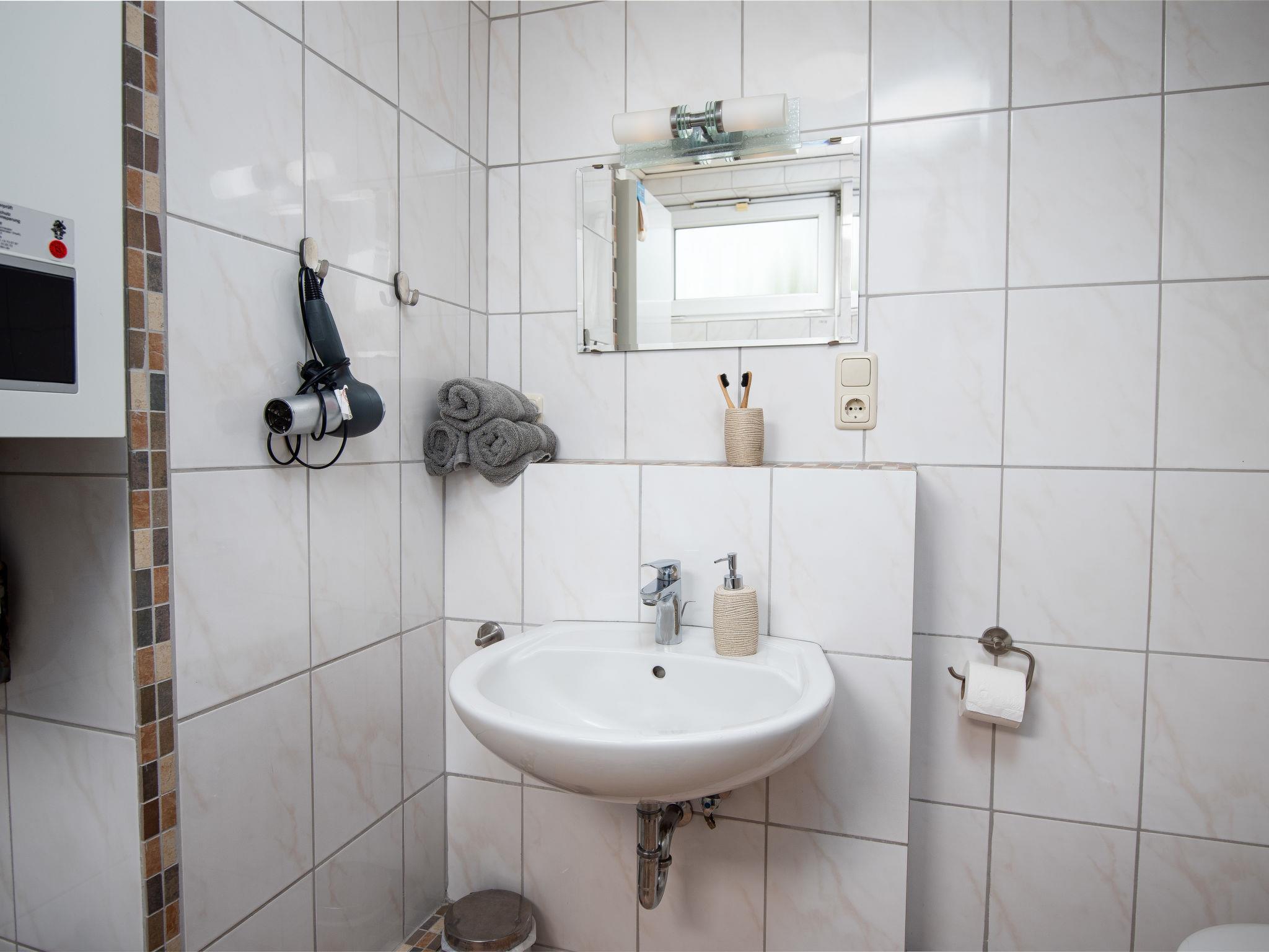 Reihenhaus "Seefalke". Ruhige Lage, 300 m vom Meer, 400 m vom Strand, in einer Sackgasse. Zur Alleinbenutzung: Garten (eingezäunt). Im Hause: Zentralheizung. Parkplatz beim Haus. Supermarkt 1.4 km, Restaurant 200 m, Bäckerei 200 m, Café, Bushaltestelle 500 m, Bahnstation "Norddeich" 1.6 km, Fähre 1.6 km, Sandstrand 700 m, Freibad 14 km, Hallenbad 350 m. Golfplatz (18 Loch) 8 km, Surfschule 700 m, Tennis 2.4 km.