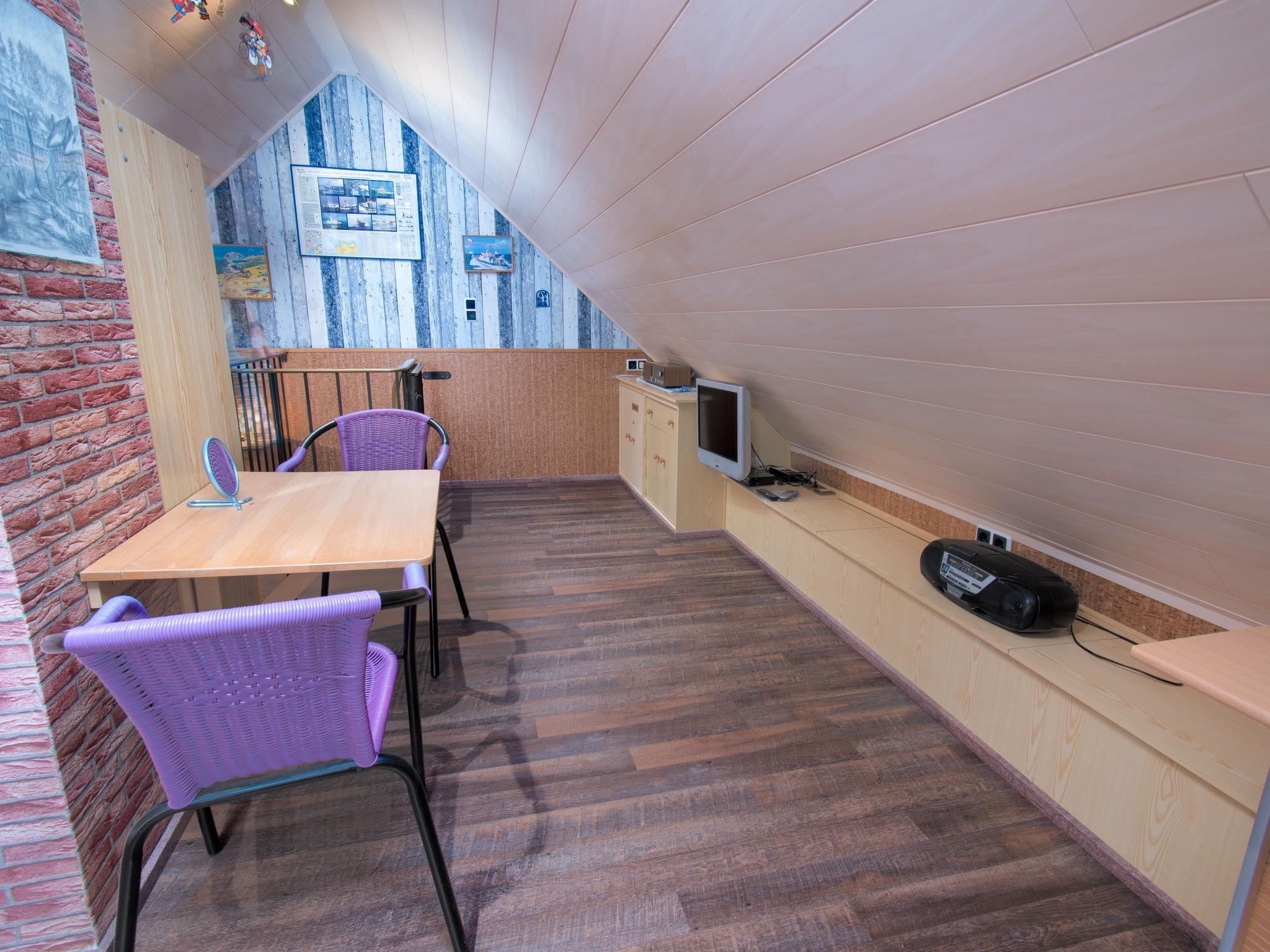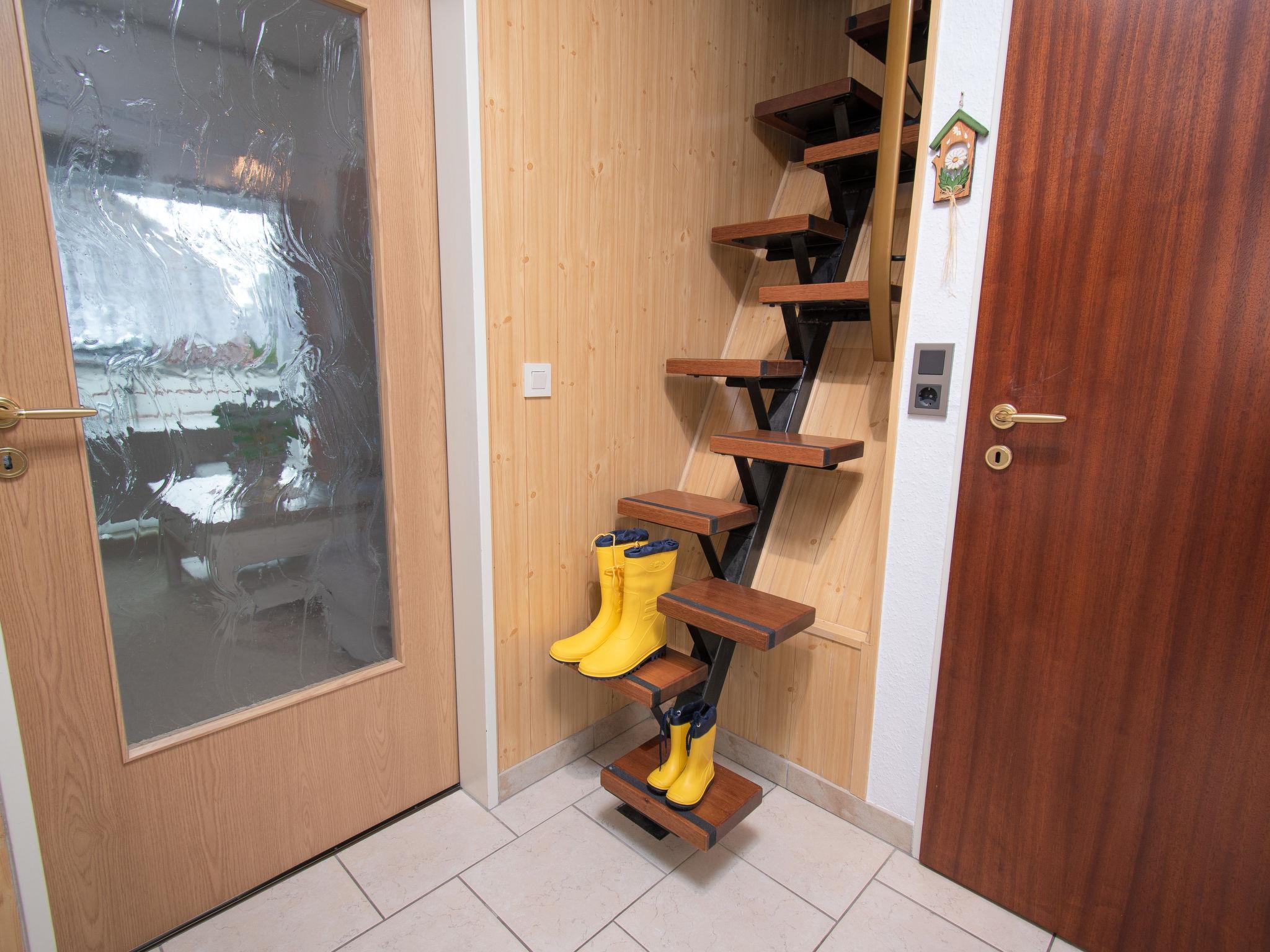 3-Zimmer-Wohnung 70 m2 auf 2 Stockwerken im 1. Stock. Wohn-/Esszimmer 20 m2 mit Digital-TV, Flachbildschirm, Stereoanlage und elektrischem Rollladen. Ausgang zum Balkon. 1 Zimmer 13 m2 mit 1 Doppelbett (2 x 90 cm, Länge 200 cm). Offene Küche (Backofen, Geschirrspüler, 4 Glaskeramikplatten, Toaster, Wasserkocher, Mikrowelle, elektrische Kaffeemaschine). Dusche/WC. Fussbodenheizung. Dachgeschoss: (steile Treppe) 1 abgeschrägtes, offenes Zimmer 15 m2 mit 2 Betten (90 cm, Länge 200 cm), Digital-TV und Flachbildschirm. Balkon 6 m2. Balkonmöbel. Zur Verfügung: Kinderhochstuhl (extra). Internet (Wireless LAN, gratis). Bitte beachten: Nichtraucher-Unterkunft. Rauchmelder. Zugang zum Dachgeschoss über steile Löffeltreppe. Badezimmer mit Regendusche.