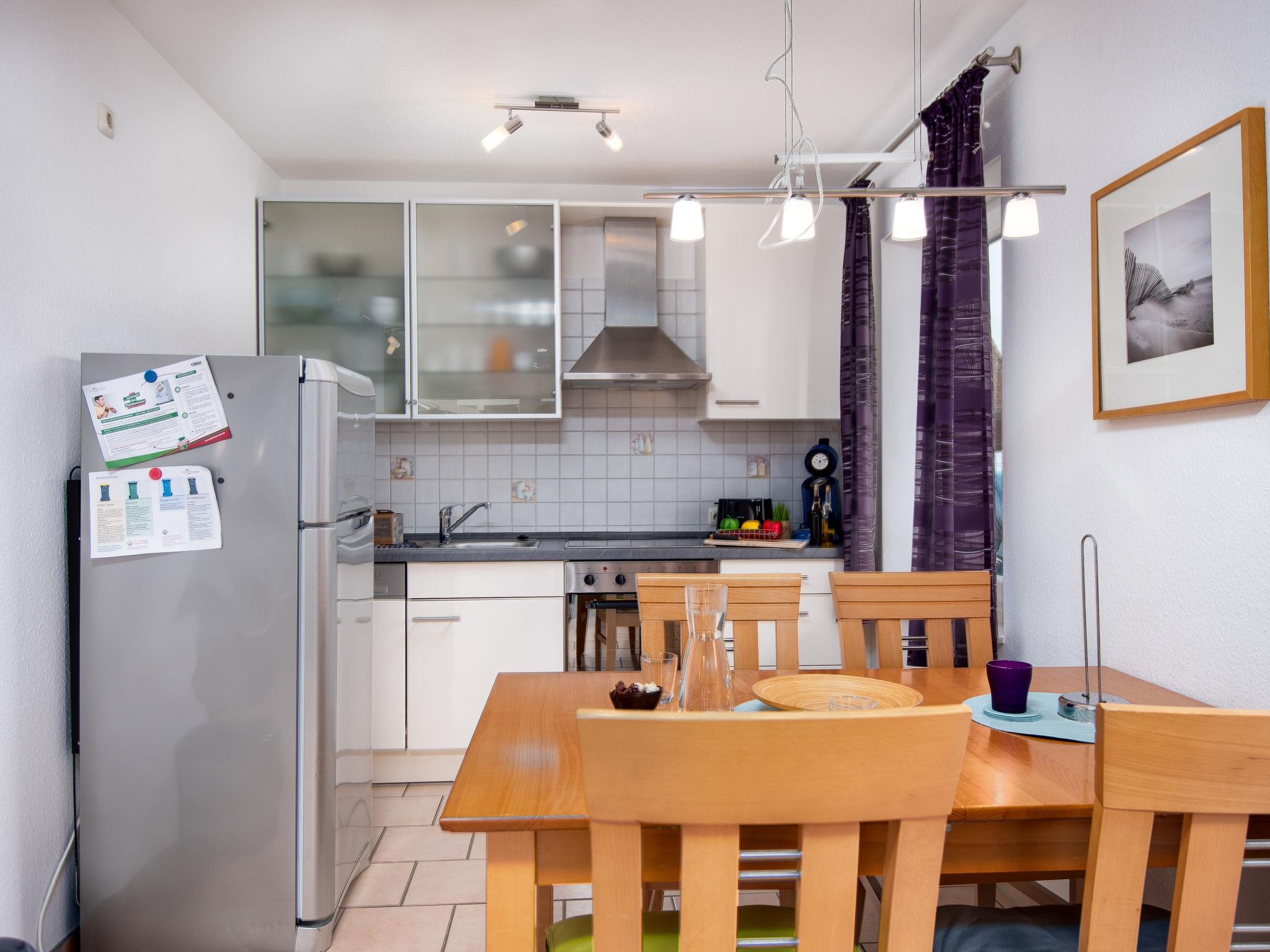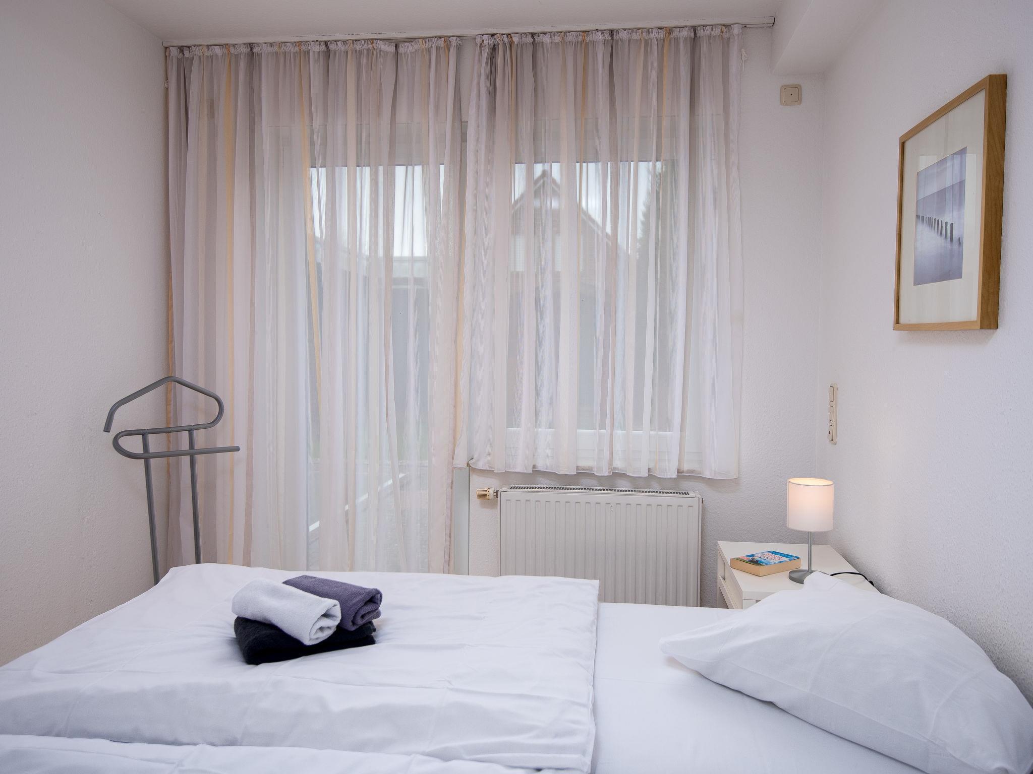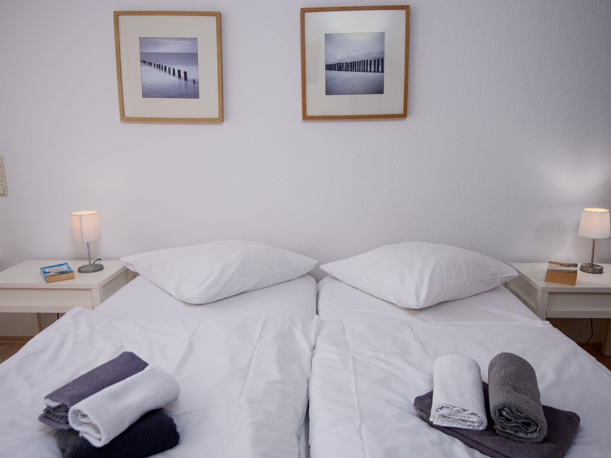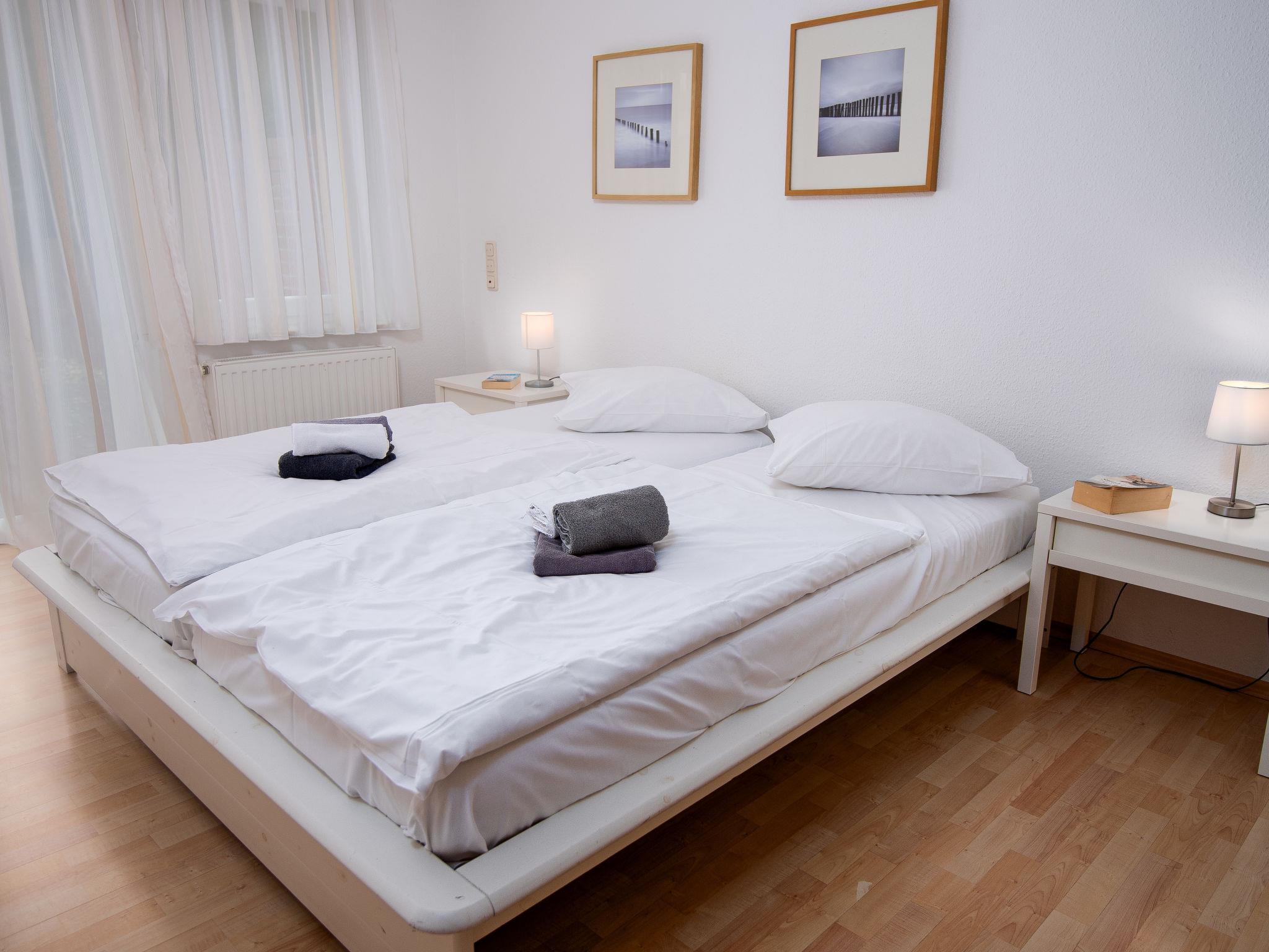 3-Zimmer-Wohnung 65 m2, im Erdgeschoss. Geschmackvoll und gemütlich eingerichtet: Wohn-/Esszimmer mit Sat-TV (Flachbildschirm), Radio, DVD und elektrischem Rollladen. Ausgang zur Terrasse. 1 Zimmer mit 1 Doppelbett (2 x 90 cm, Länge 200 cm). 1 Zimmer mit 1 x 2 Etagenbetten (90 cm, Länge 200 cm). Kochnische (Backofen, Geschirrspüler, 4 Glaskeramikplatten, Toaster, Wasserkocher, Mikrowelle, elektrische Kaffeemaschine, Kapseln für die Kaffeemaschine (Senseo) extra). Dusche/WC, sep. WC. Terrassenmöbel, Gartengrill (mobil). Zur Verfügung: Waschmaschine, Kinderhochstuhl (extra). Internet (Wireless LAN, gratis). Bitte beachten: Nichtraucher-Unterkunft. Rauchmelder.