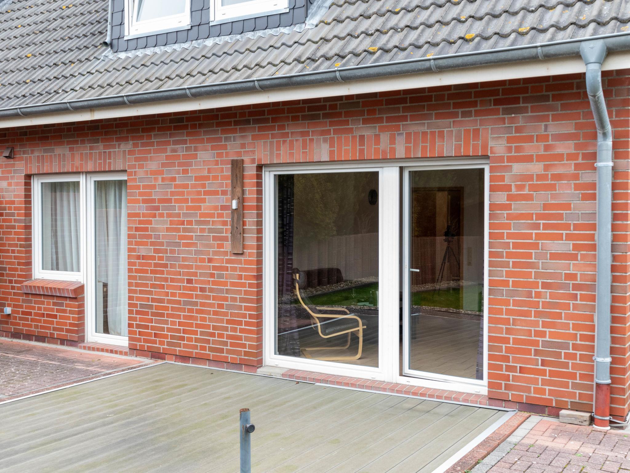 Mehrfamilienhaus "Deichperle". Im Ort, 250 m vom Meer, 1 km vom Strand. Im Hause: Zentralheizung, Wäschetrockner (zur Mitbenutzung). Parkplatz beim Haus. Supermarkt 1.5 km, Restaurant, Bäckerei 500 m, Café 500 m, Bushaltestelle 700 m, Bahnstation "Norddeich" 1.9 km, Fähre 2 km, Sandstrand 1 km, Freibad 14 km, Hallenbad 700 m. Golfplatz (18 Loch) 10 km, Tennishalle 2.5 km, Minigolf 700 m, Kinderspielplatz 200 m.