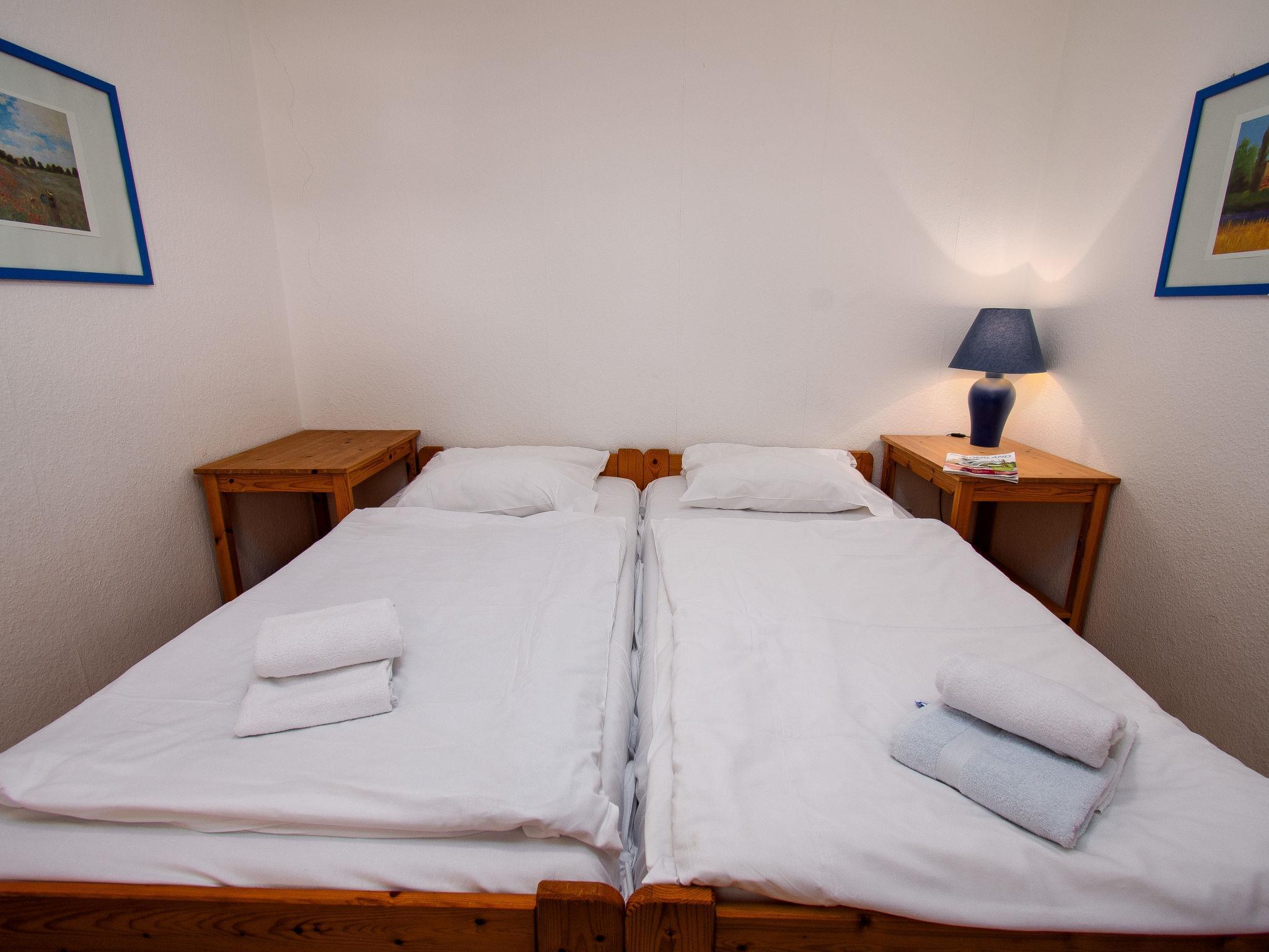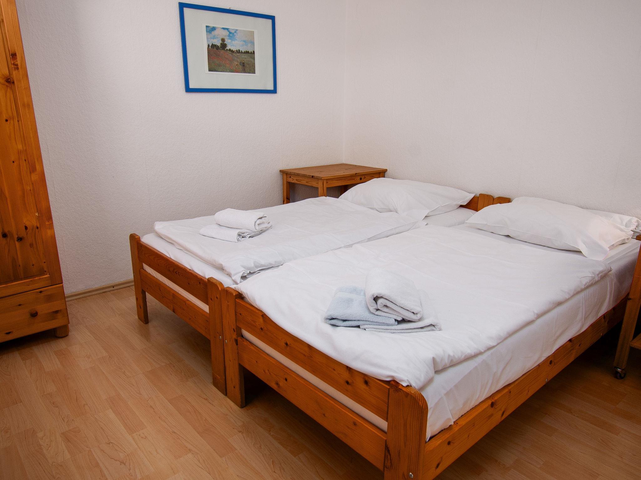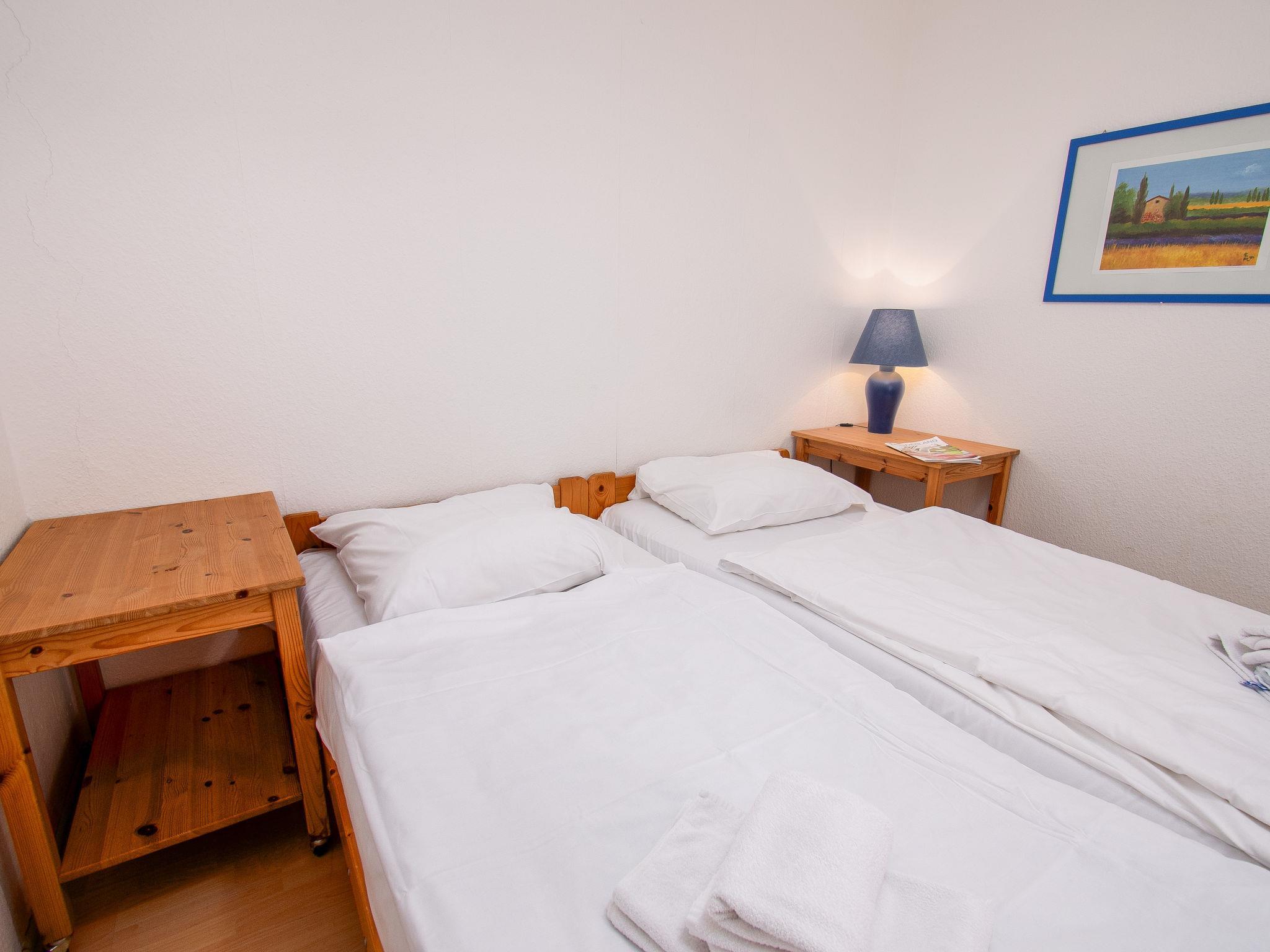 2-Zimmer-Wohnung 40 m2 im 1. Stock. Zweckmässig und gemütlich eingerichtet: Wohn-/Esszimmer 18 m2 mit 1 Doppeldiwanbett (160 cm, Länge 195 cm), Kabel-TV und CD. Ausgang zum Balkon. 1 Zimmer 10 m2 mit 2 Betten (90 cm, Länge 200 cm). Kochnische (2 Kochplatten, Toaster, Wasserkocher, Mikrowelle, elektrische Kaffeemaschine). Dusche/WC. Balkon 8 m2. Balkonmöbel. Zur Verfügung: Kinderhochstuhl. Bitte beachten: Nichtraucher-Unterkunft.