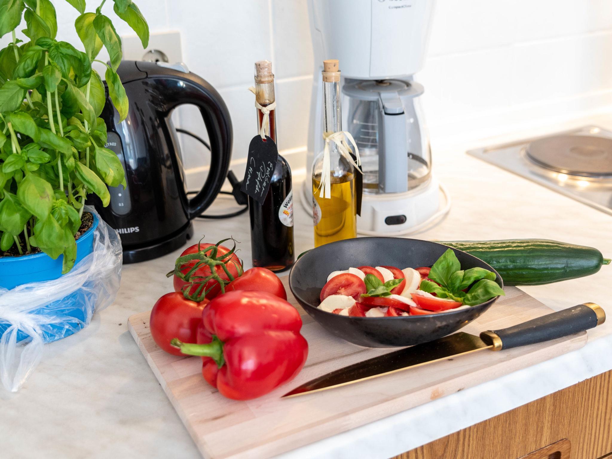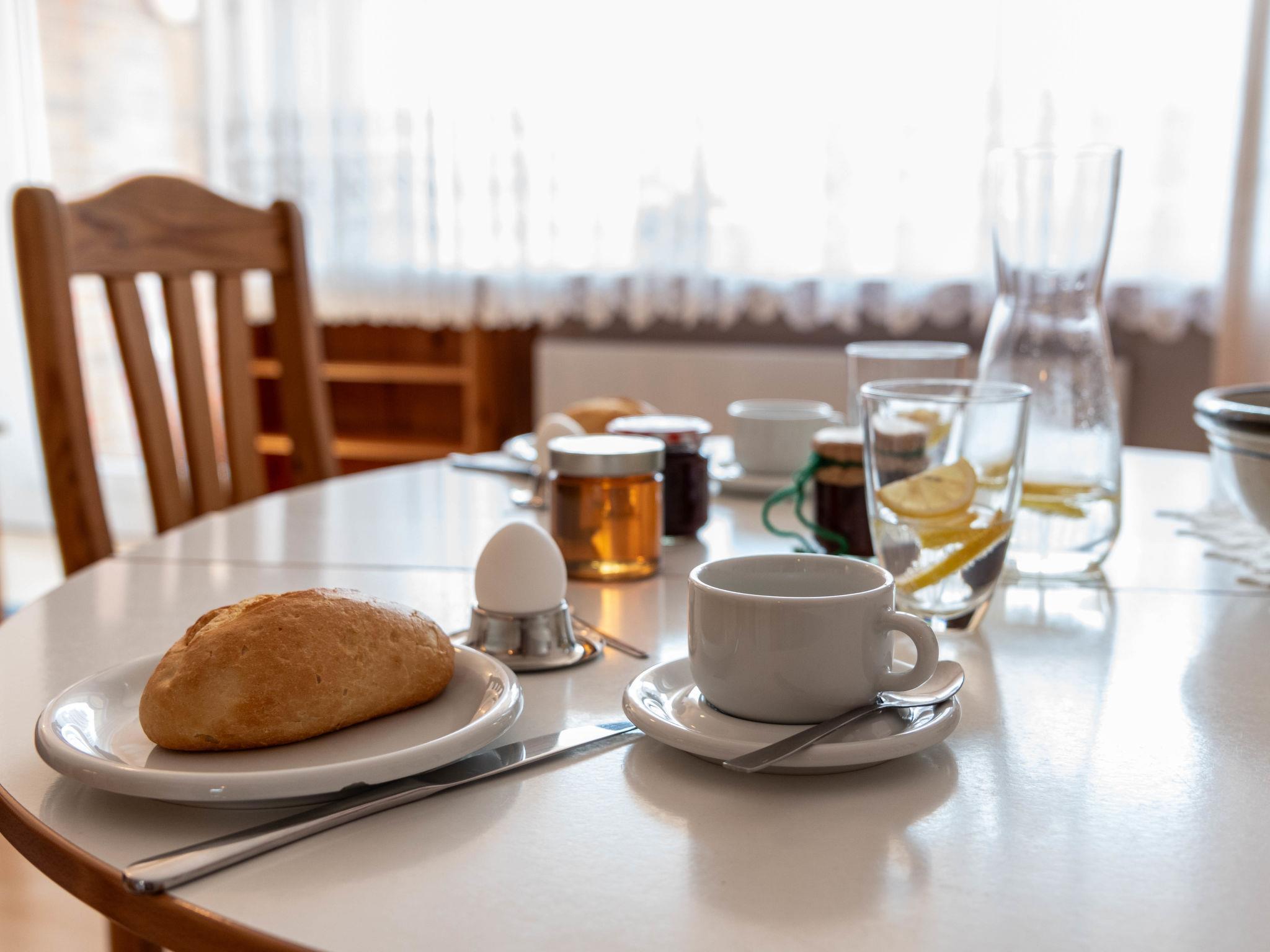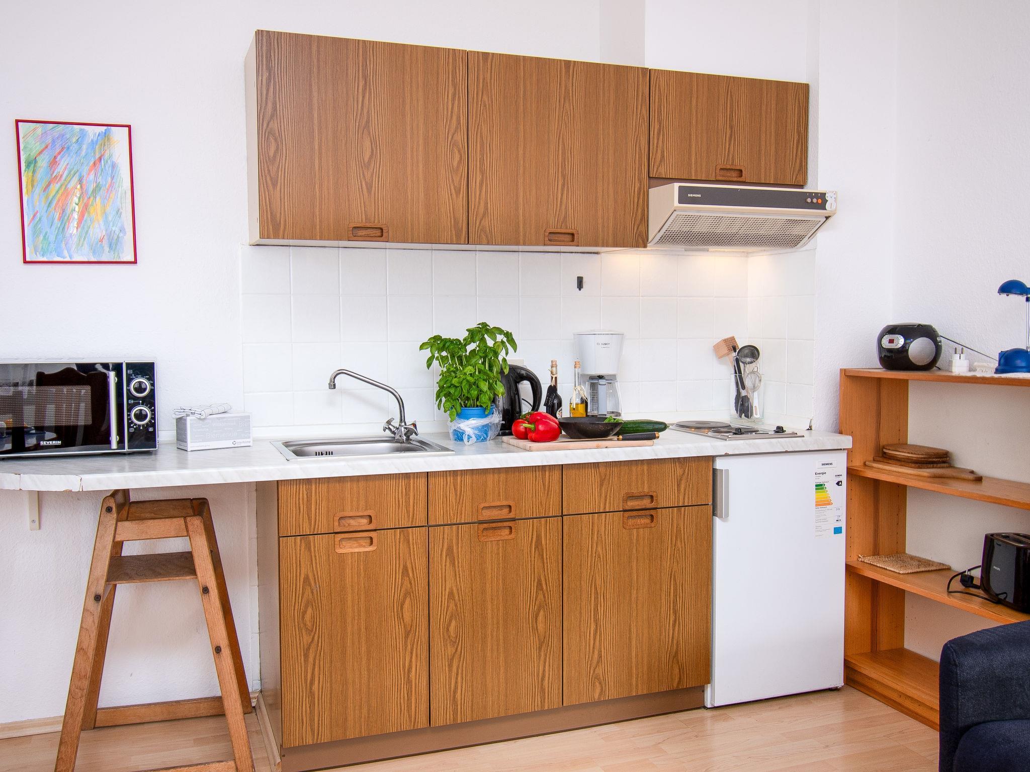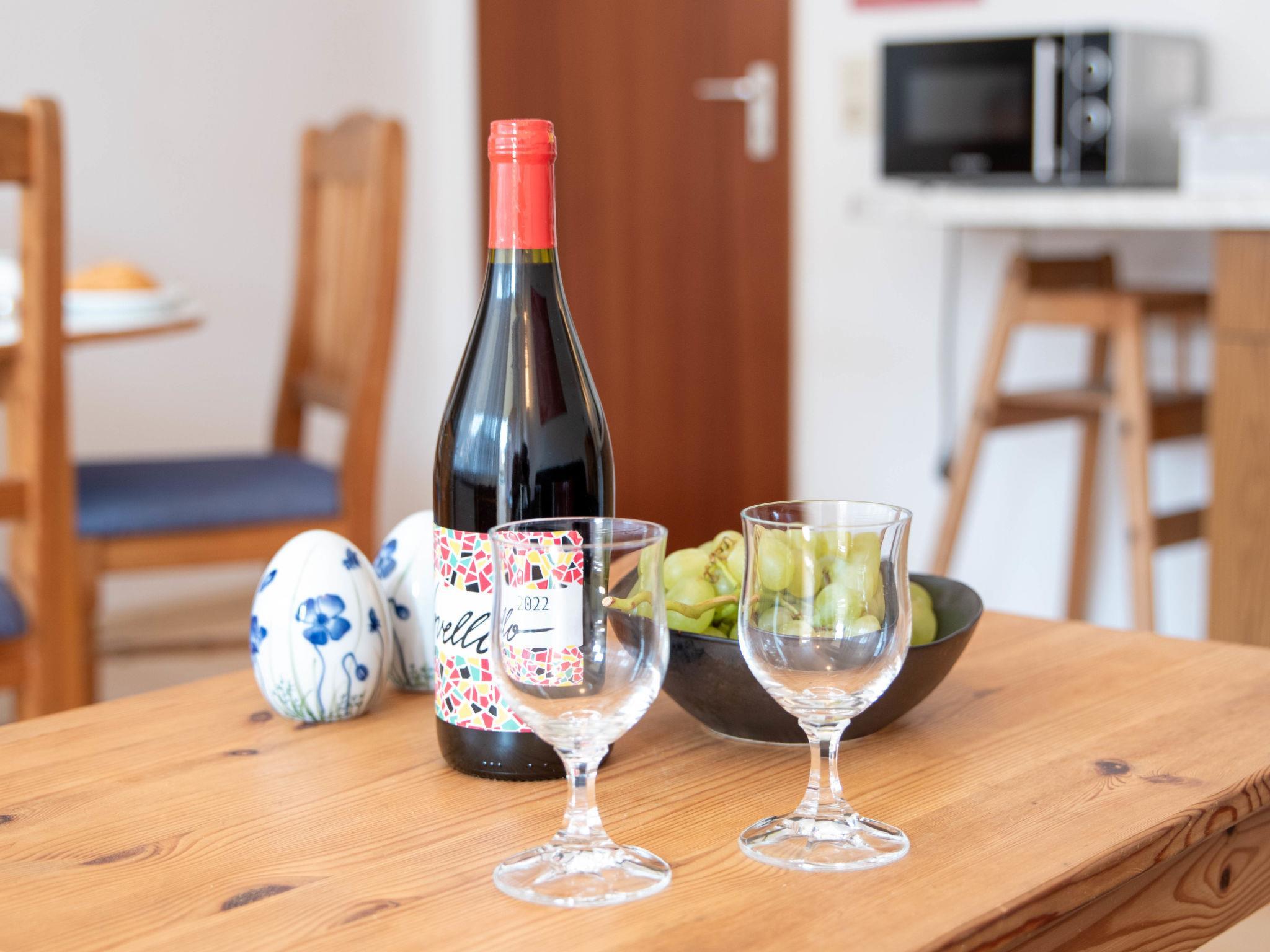 2-Zimmer-Wohnung 40 m2 im 1. Stock. Zweckmässig und gemütlich eingerichtet: Wohn-/Esszimmer 18 m2 mit 1 Doppeldiwanbett (160 cm, Länge 195 cm), Kabel-TV und CD. Ausgang zum Balkon. 1 Zimmer 10 m2 mit 2 Betten (90 cm, Länge 200 cm). Kochnische (2 Kochplatten, Toaster, Wasserkocher, Mikrowelle, elektrische Kaffeemaschine). Dusche/WC. Balkon 8 m2. Balkonmöbel. Zur Verfügung: Kinderhochstuhl. Bitte beachten: Nichtraucher-Unterkunft.