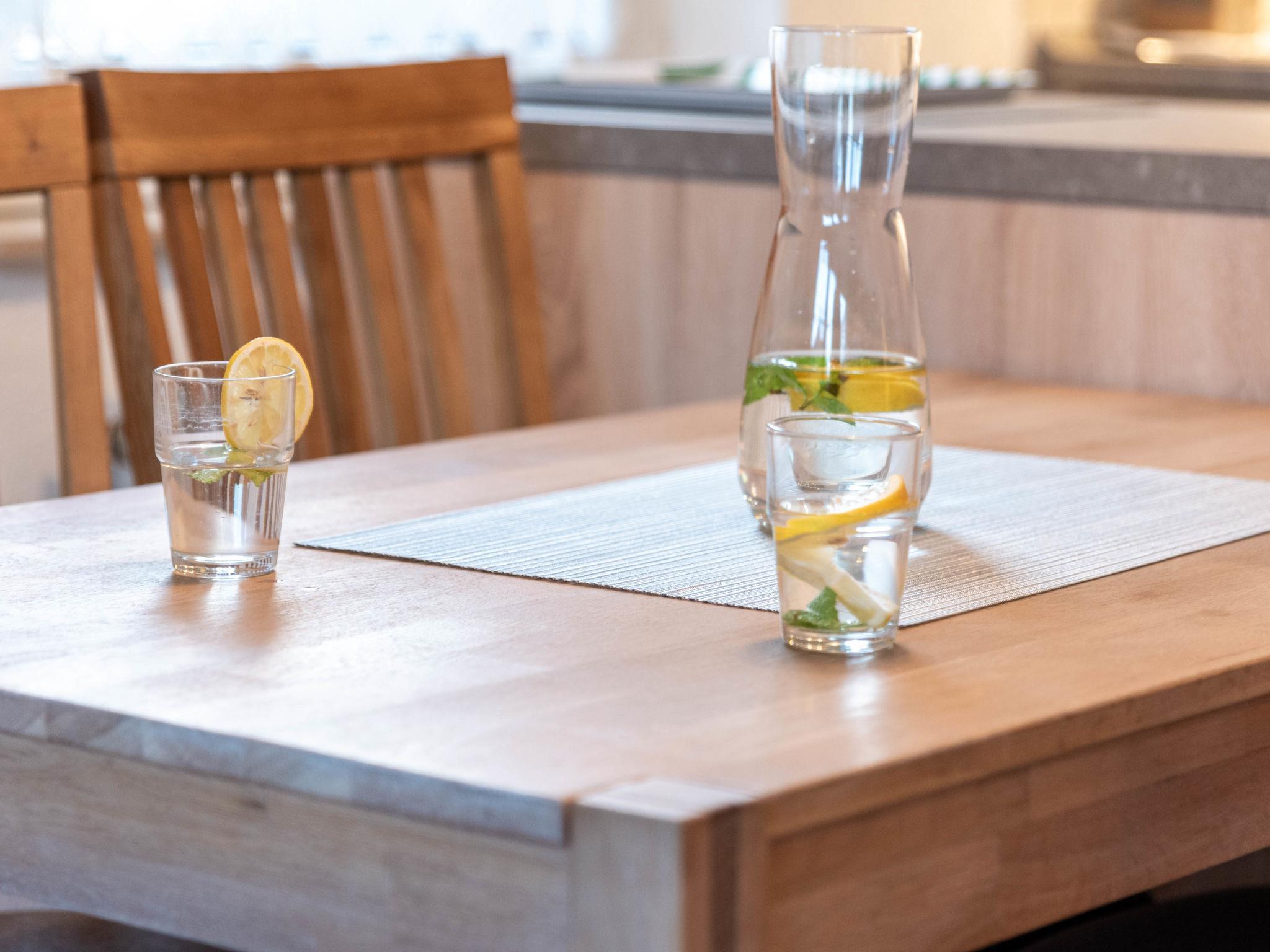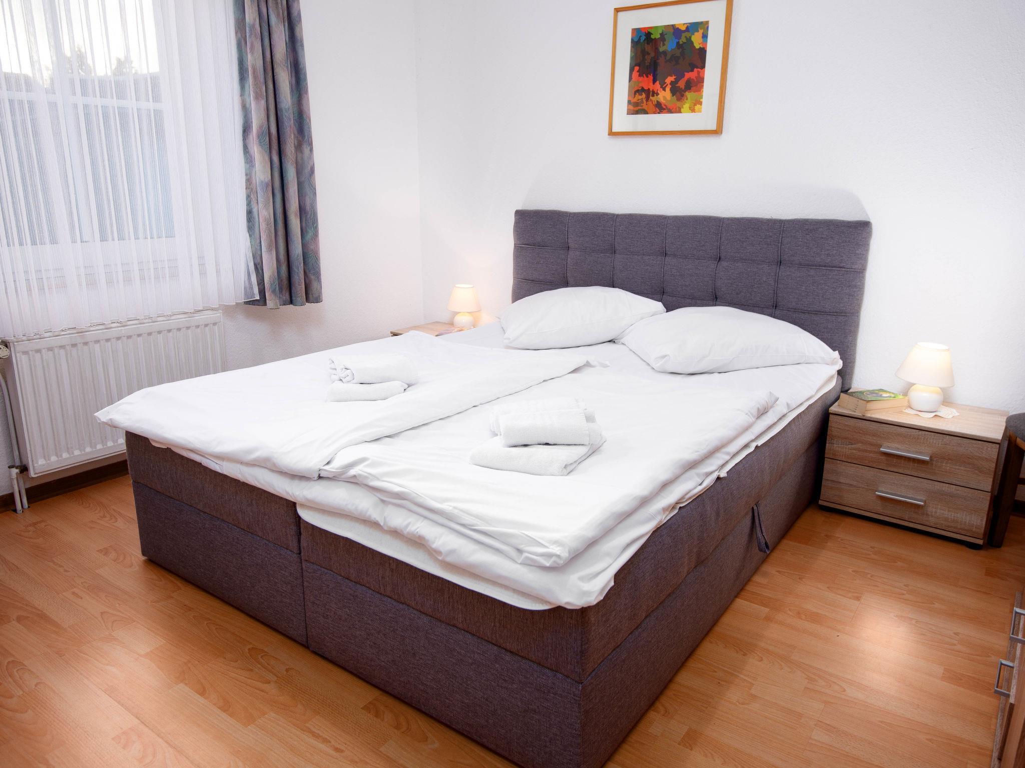 "Seehund", 2-Zimmer-Wohnung 65 m2, im Erdgeschoss. Hell, einfach eingerichtet: Wohn-/Esszimmer 21 m2 mit 1 Doppeldiwanbett (1 x 140 cm, Länge 200 cm), Sat-TV. Ausgang zur Terrasse. 1 Doppelzimmer 10 m2 mit 1 Doppelbett (2 x 80 cm, Länge 190 cm). Kochnische (4 Kochplatten, Backofen, Geschirrspüler, Toaster, Wasserkocher, Mikrowelle, elektrische Kaffeemaschine) mit Esstisch. Dusche/WC. Terrassenmöbel. Zur Verfügung: Kinderhochstuhl (extra). Bitte beachten: Nichtraucher-Unterkunft. Maximal 1 Haustier/Hund erlaubt. Rauchmelder.