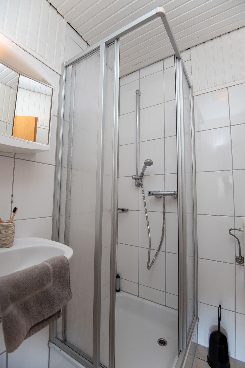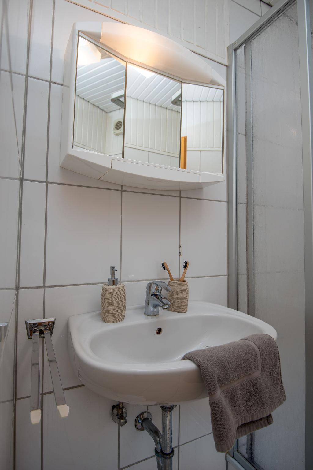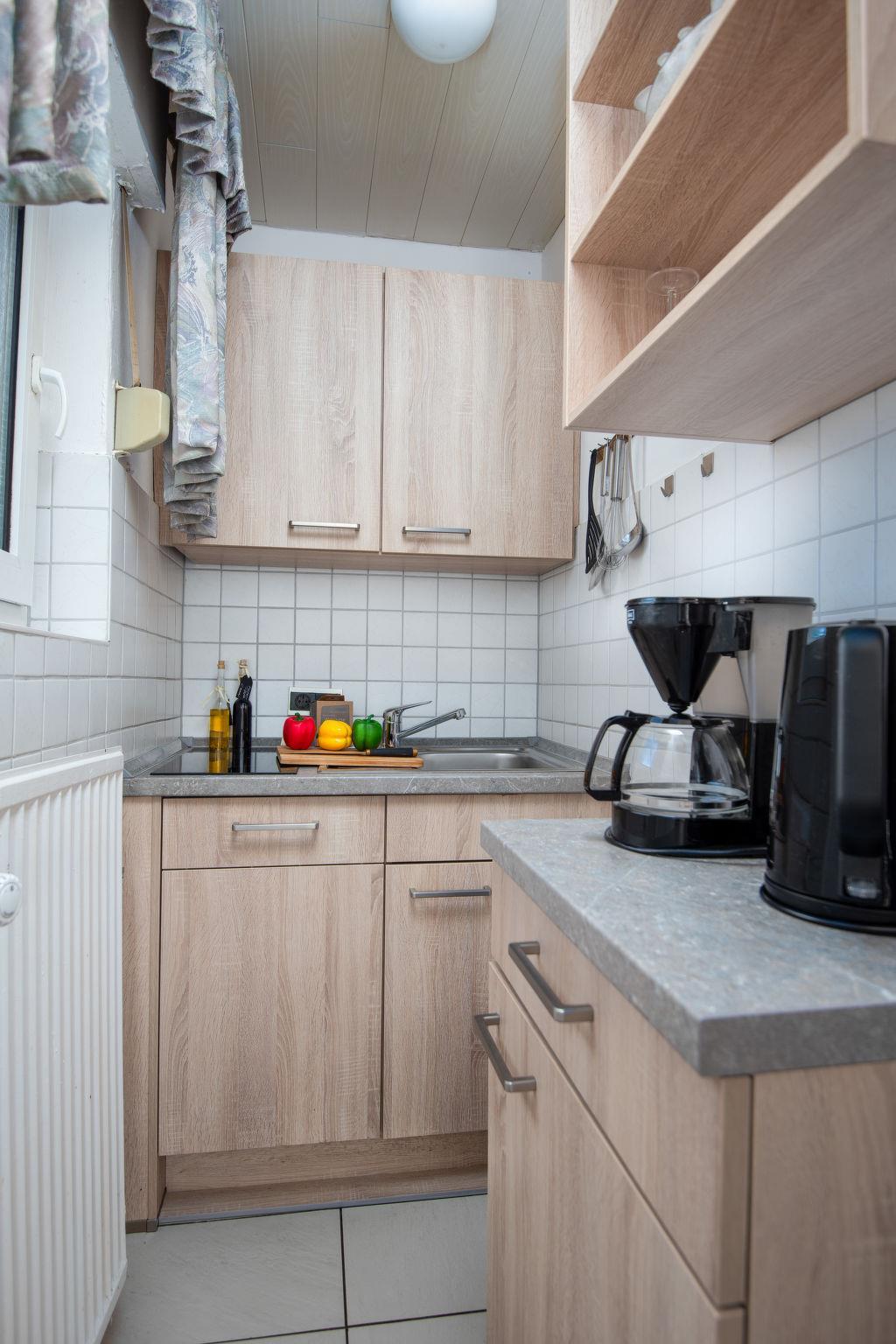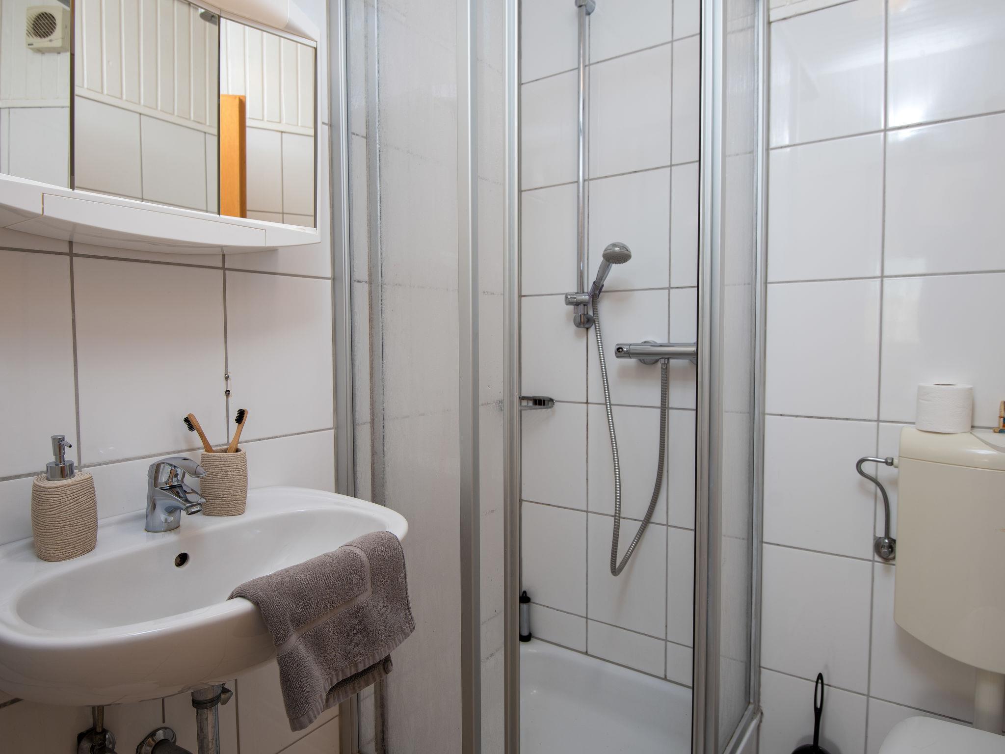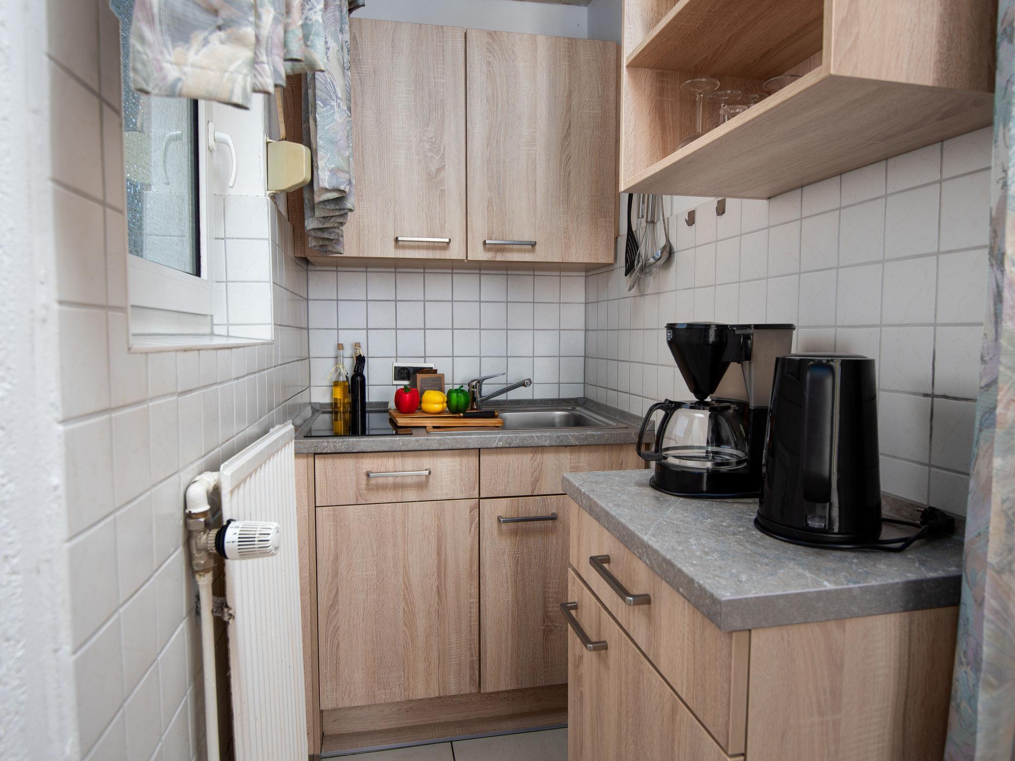 "Schwalbennest V", 1-Zimmer-Wohnung 15 m2, im Erdgeschoss. Sehr einfach eingerichtet: Wohn-/Schlafzimmer 10 m2 mit 1 Diwanbett (120 cm, Länge 190 cm), Digital-TV und Radio. Kleine Kochnische 2 m2 (2 Kochplatten, Geschirrspüler, Toaster, Wasserkocher, Mikrowelle, elektrische Kaffeemaschine). Dusche/WC. Sitzplatz. Zur Verfügung: Kinderhochstuhl (extra). Parkplatz in 20 m. Bitte beachten: Kühlschrank ohne Gefrierfach, Nichtraucher-Unterkunft. Maximal 1 kleines Haustier/Hund erlaubt. Rauchmelder. Bei dem Diwanbett handelt es sich um eine Schlafcouch im Wohnzimmer. Ein Schlafzimmer ist nicht vorhanden. Diese sehr kleine Wohnung ist für ältere und gehbehinderte Personen nicht geeignet.